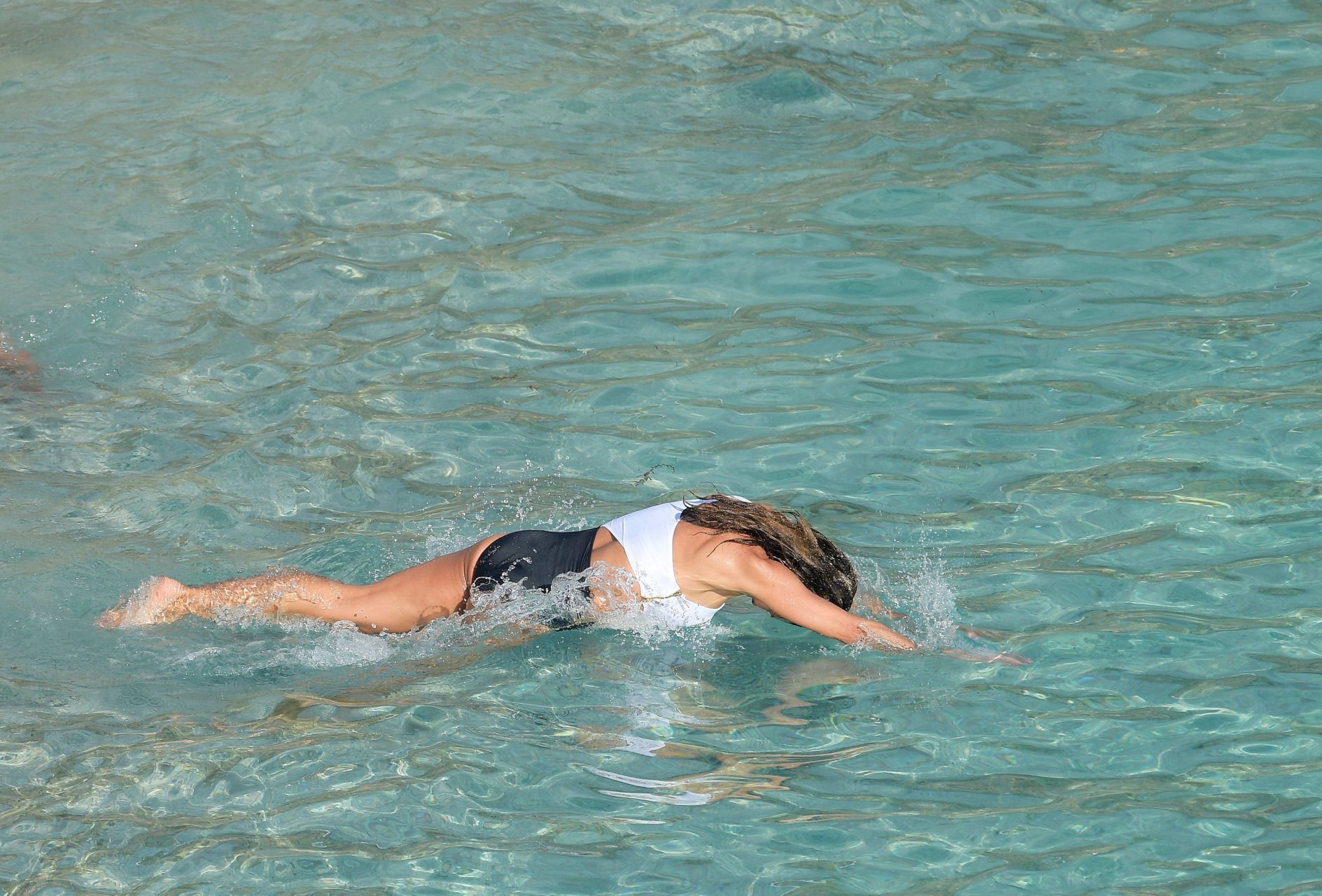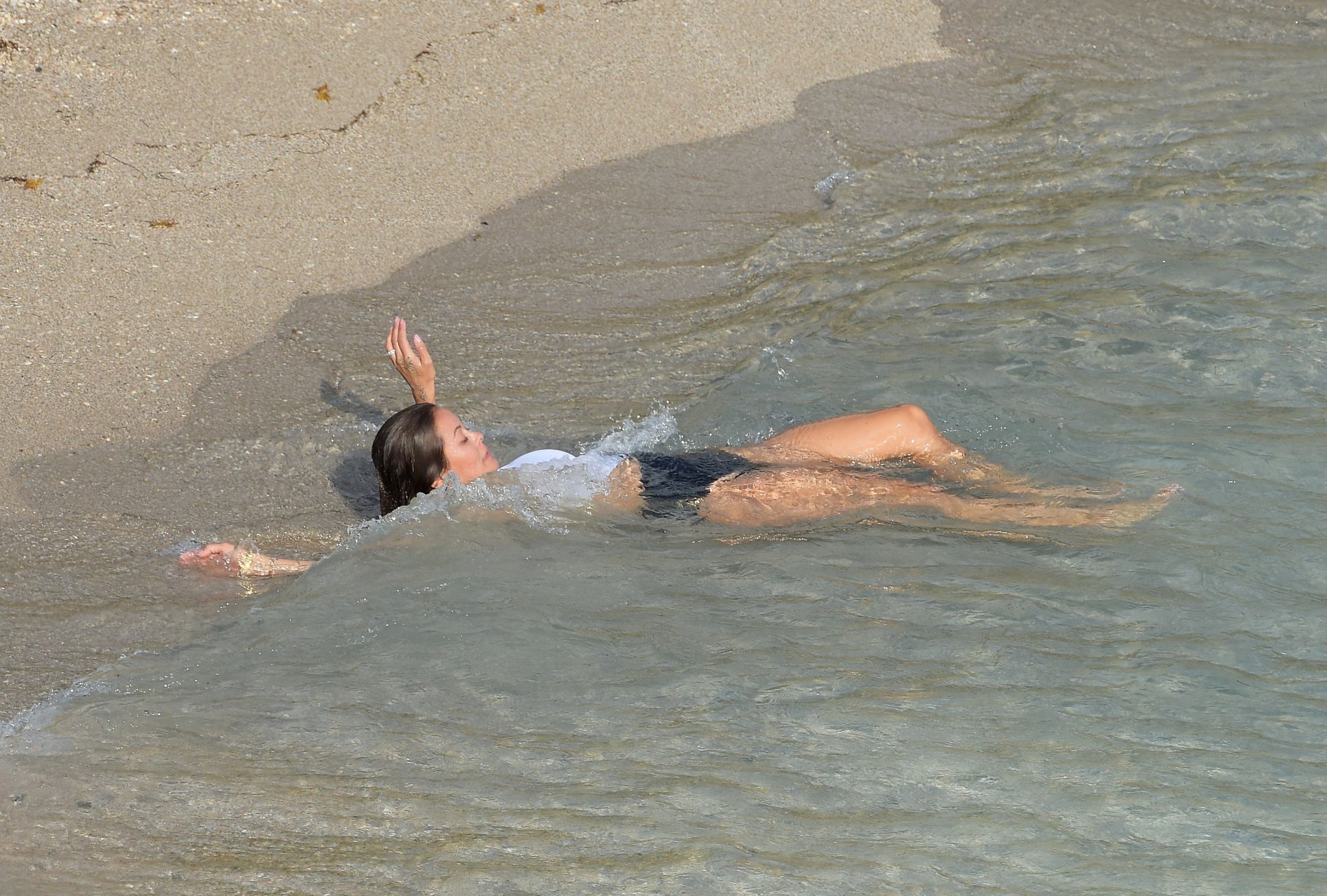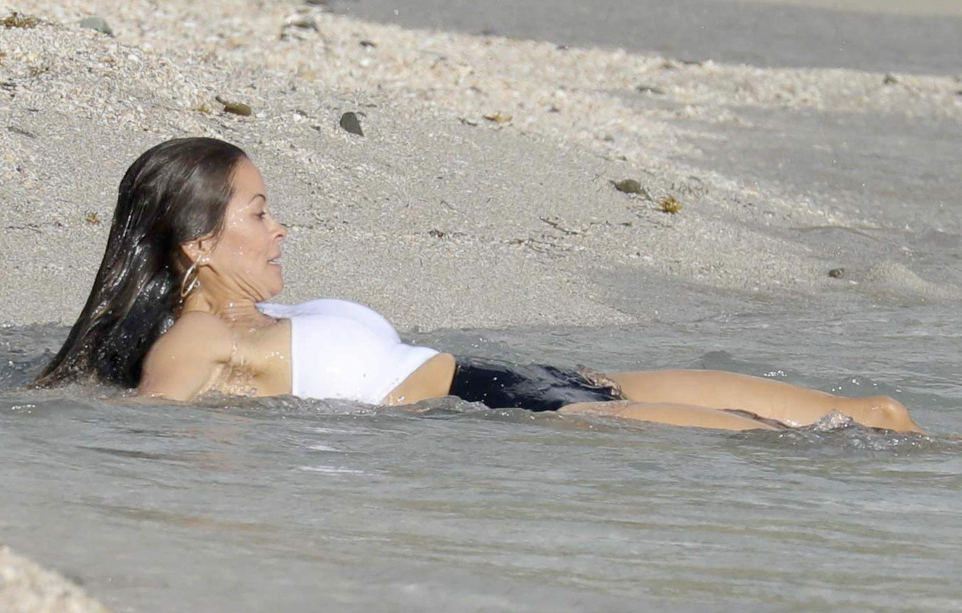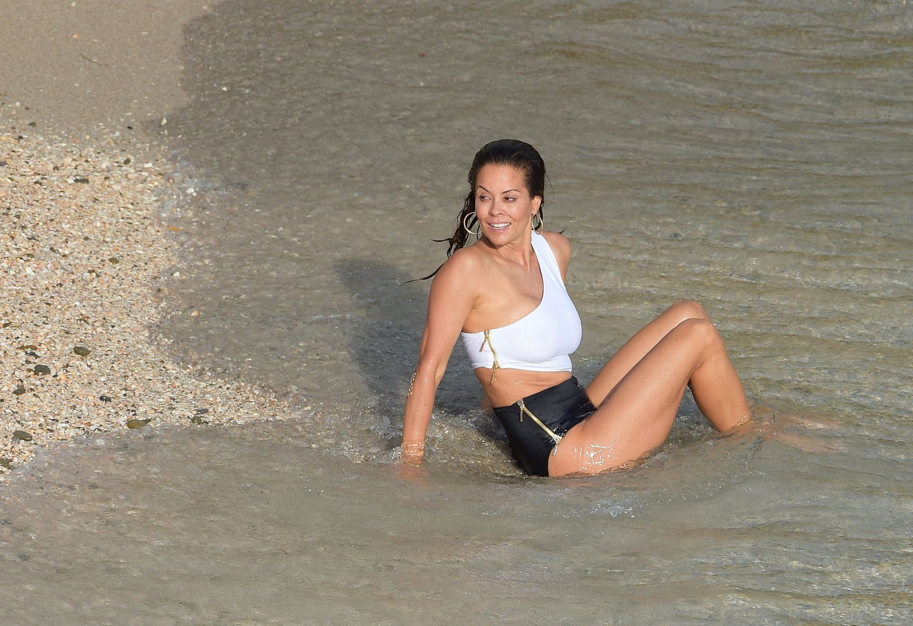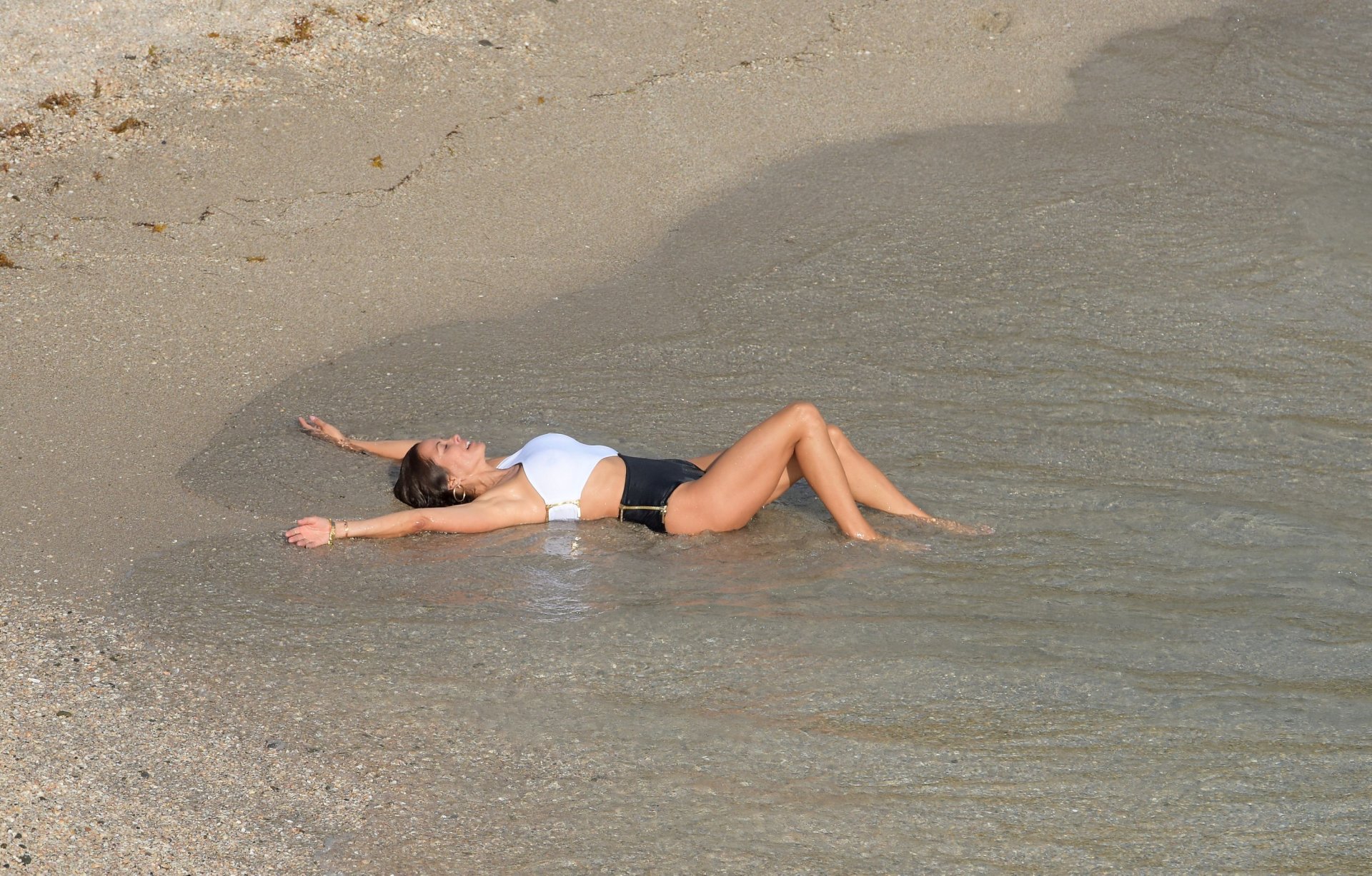 Brooke Burke exhibe son corps parfait dans un maillot de bain noir et blanc sur la plage de St. Barths, 29/03/2017. Brooke Burke est une actrice et mannequin américaine. Âge – 45 ans.