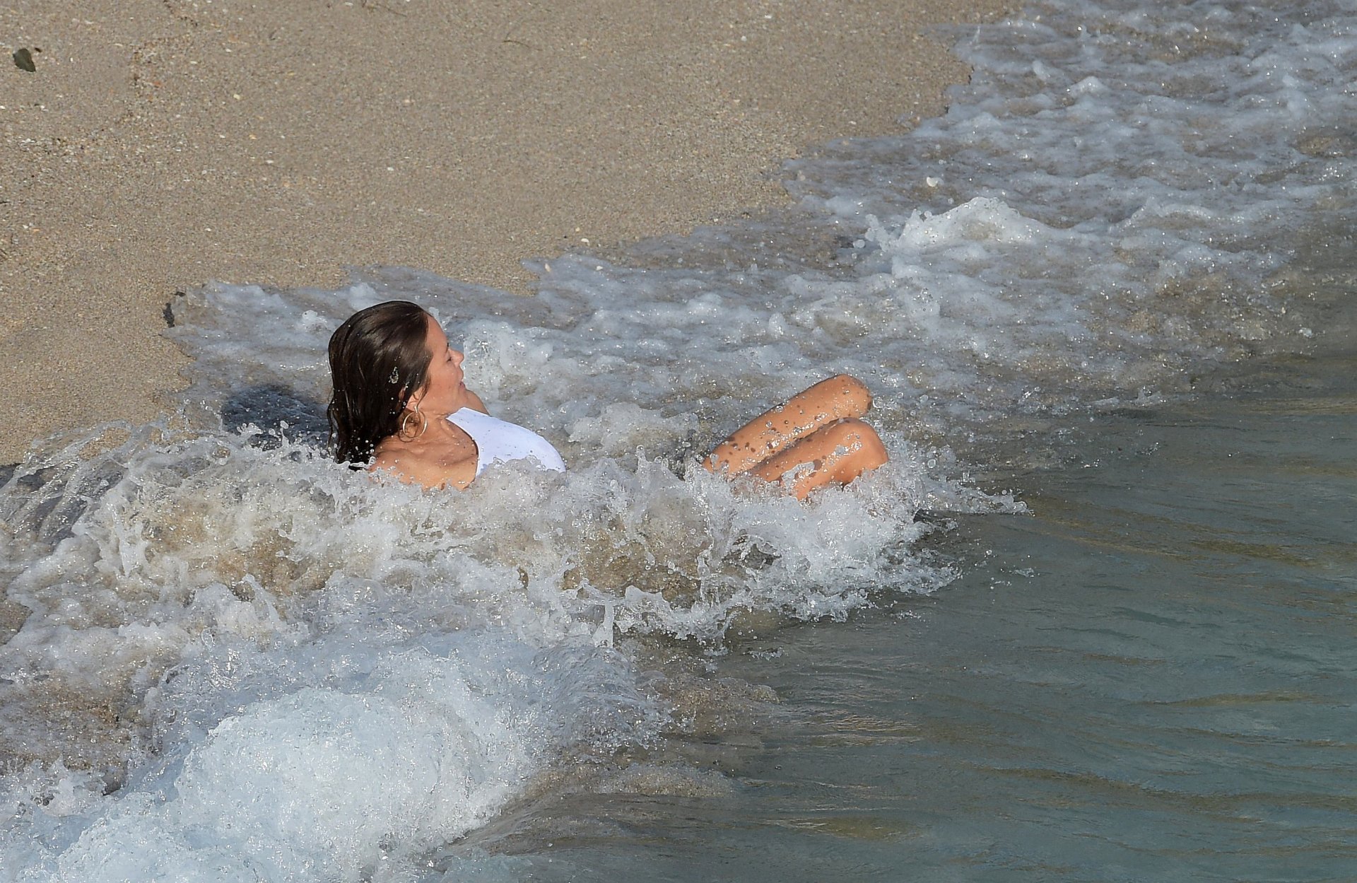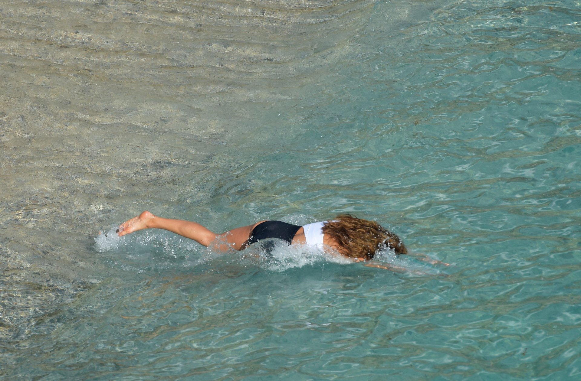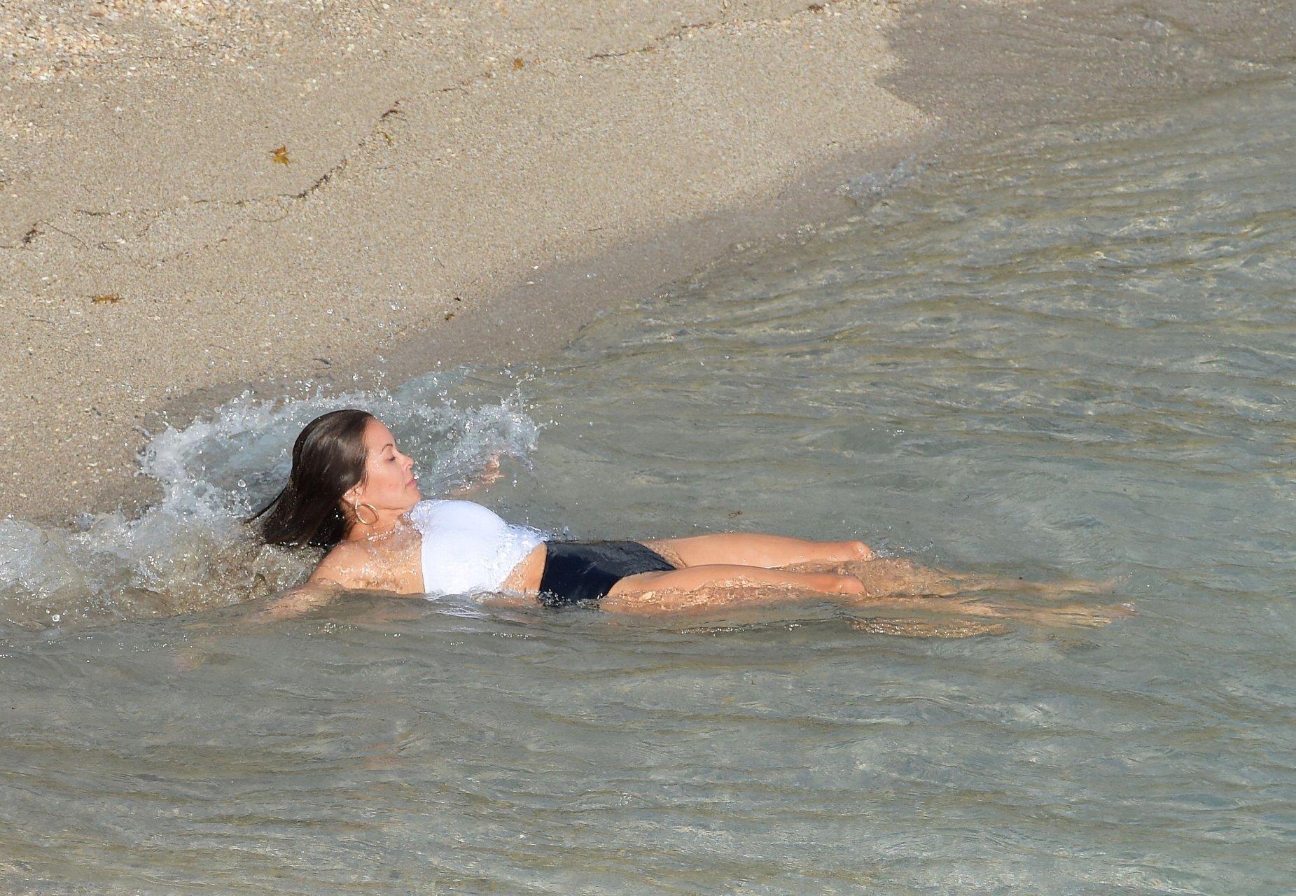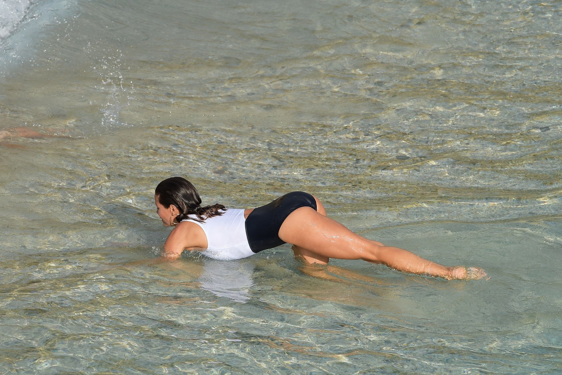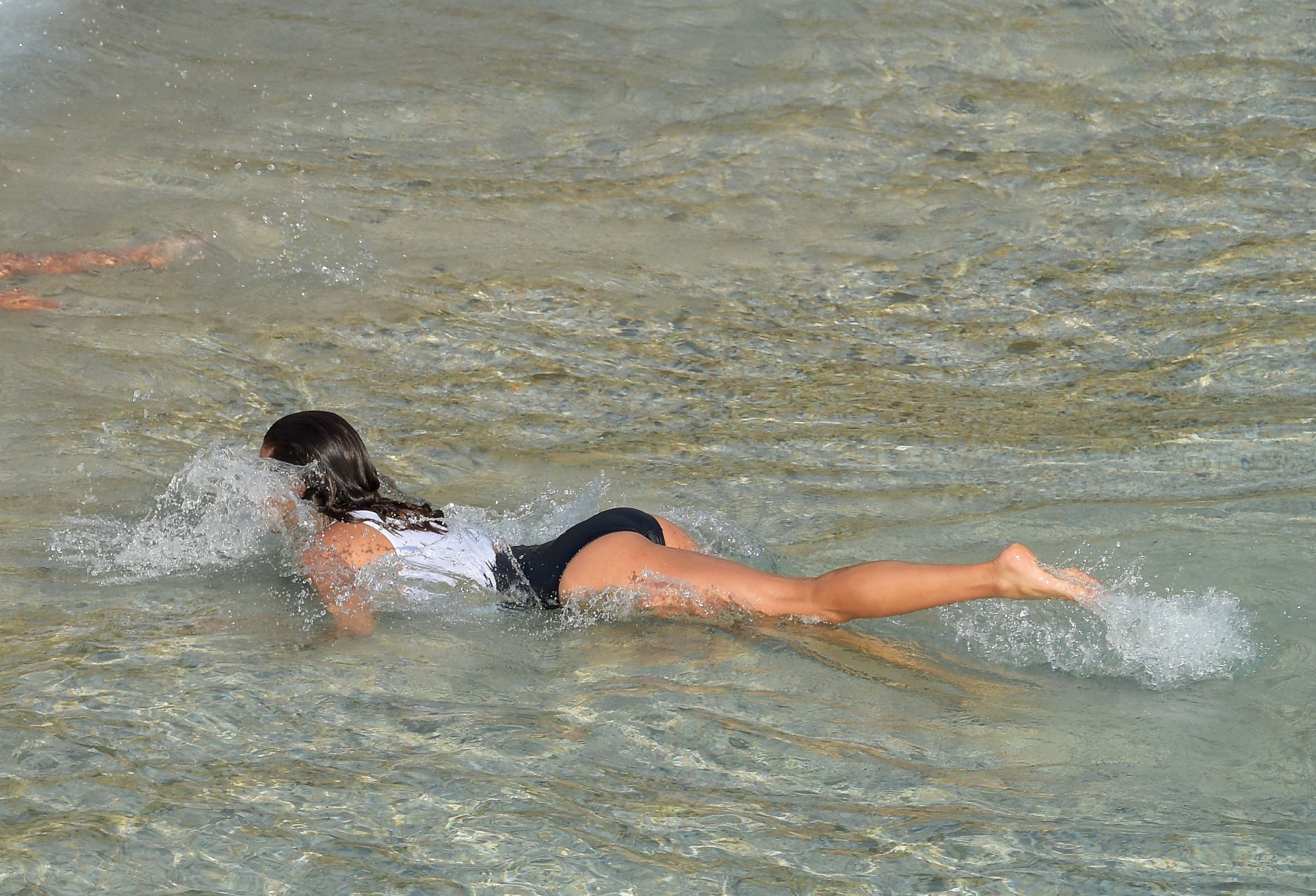 Brooke Burke exhibe son corps parfait dans un maillot de bain noir et blanc sur la plage de St. Barths, 29/03/2017. Brooke Burke est une actrice et mannequin américaine. Âge – 45 ans.