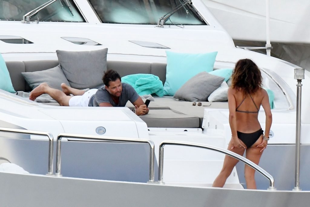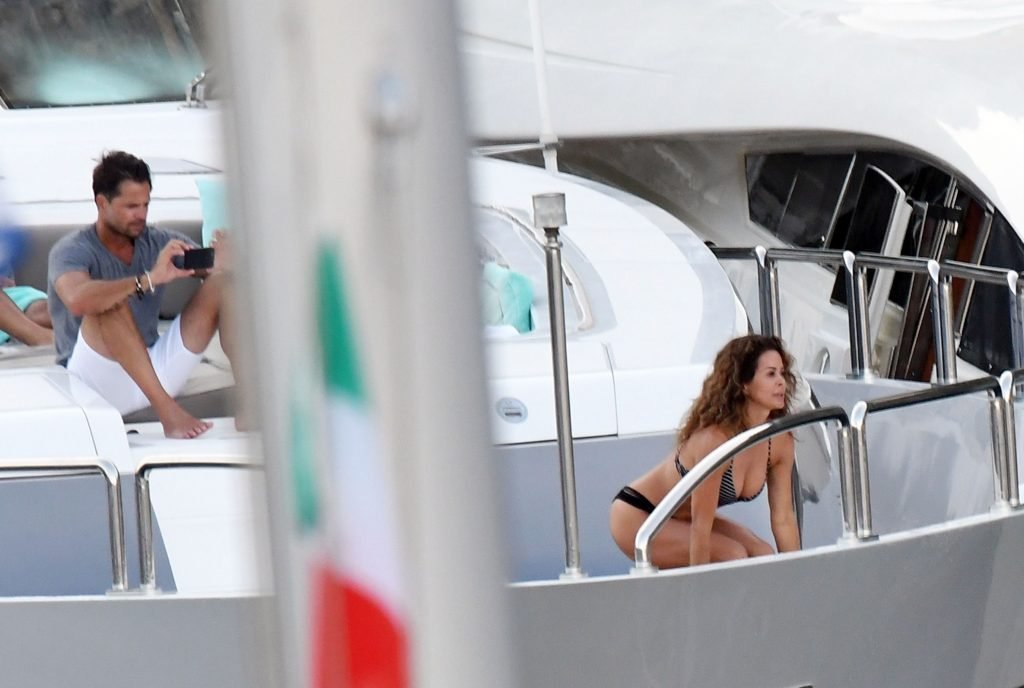 Brooke Burke montre son chat sur un yacht sur la côte amalfitaine en Italie, 24/06/2017. Brooke Charvet est une actrice américaine (Melissa and Joey), mannequin. Âge – 45 ans.