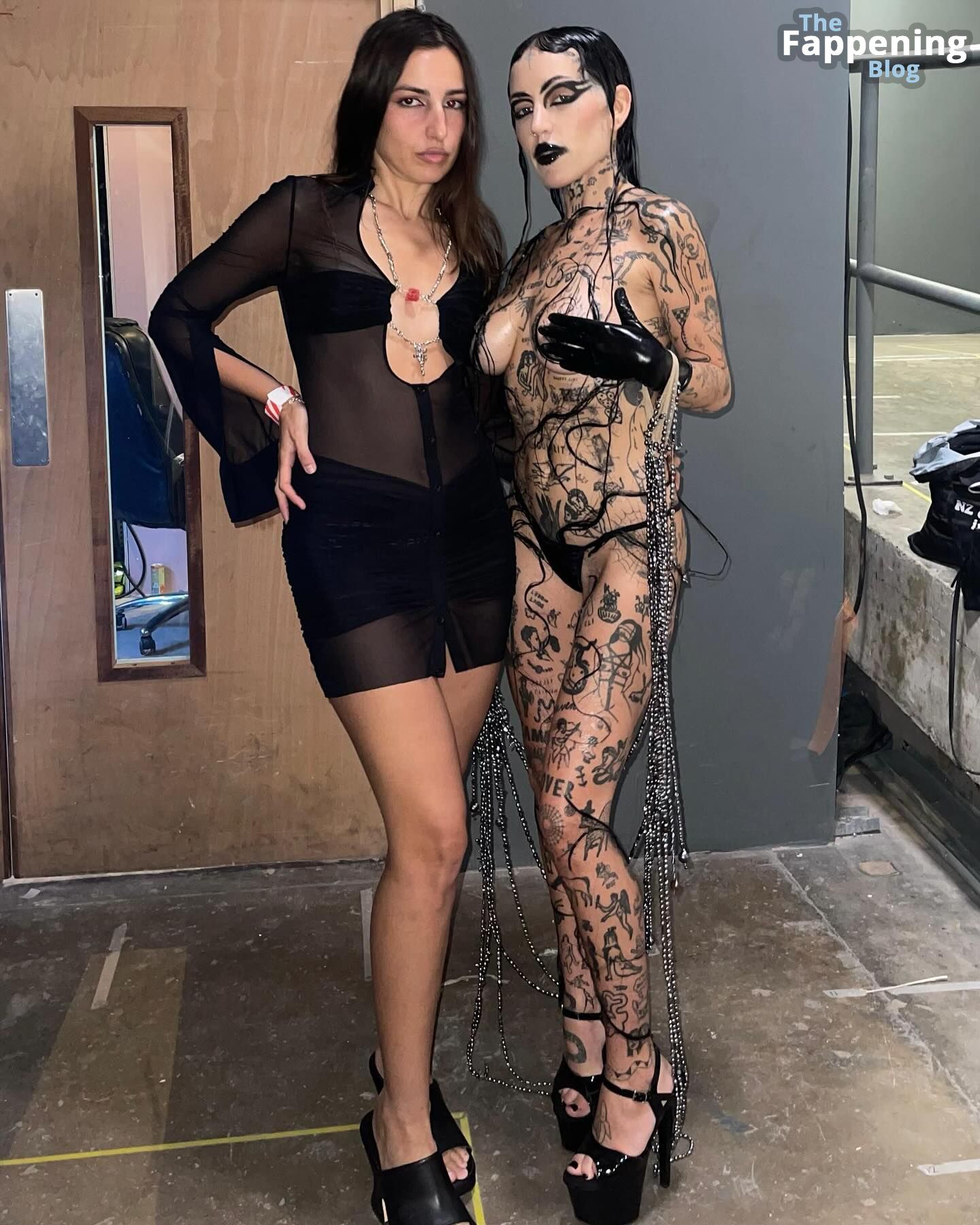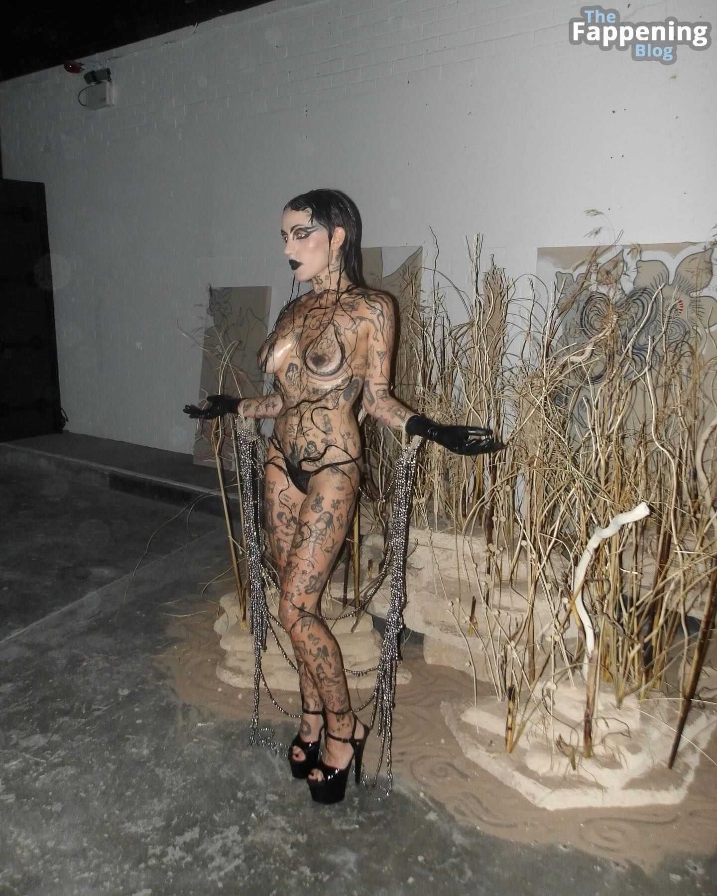La rappeuse Brooke Candy exhibe son corps nu et tatoué lors d’une fête à Londres.