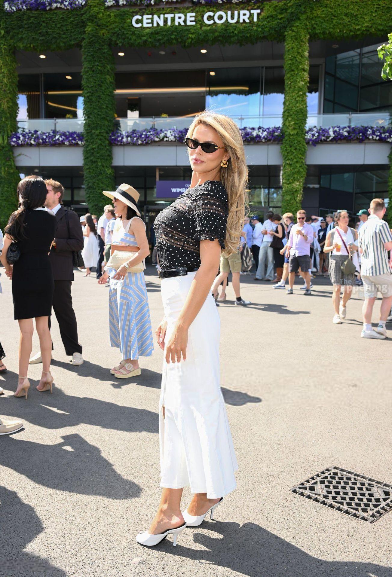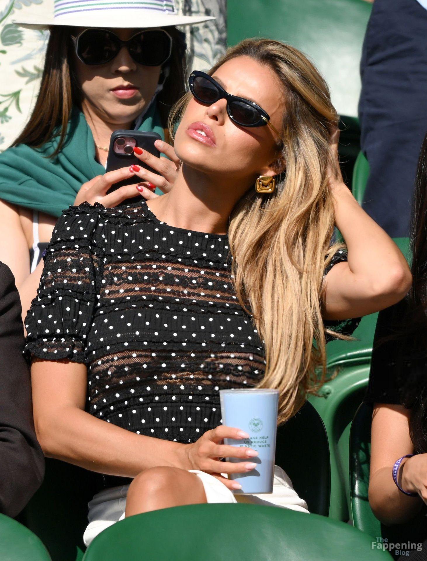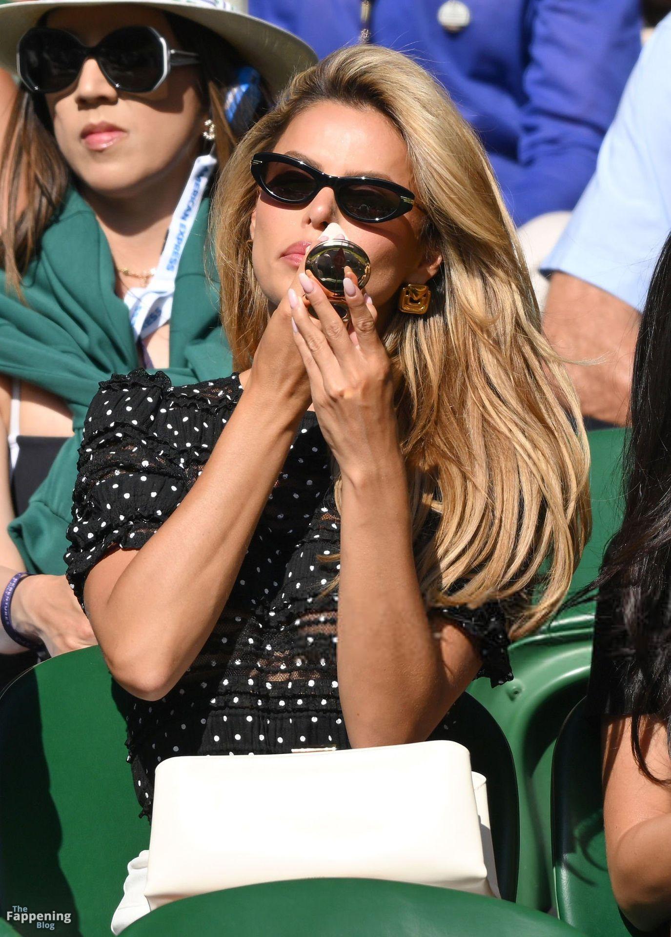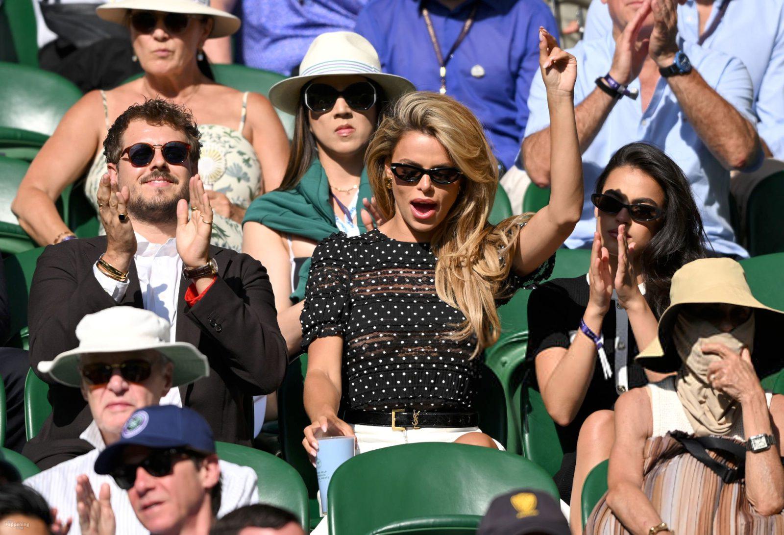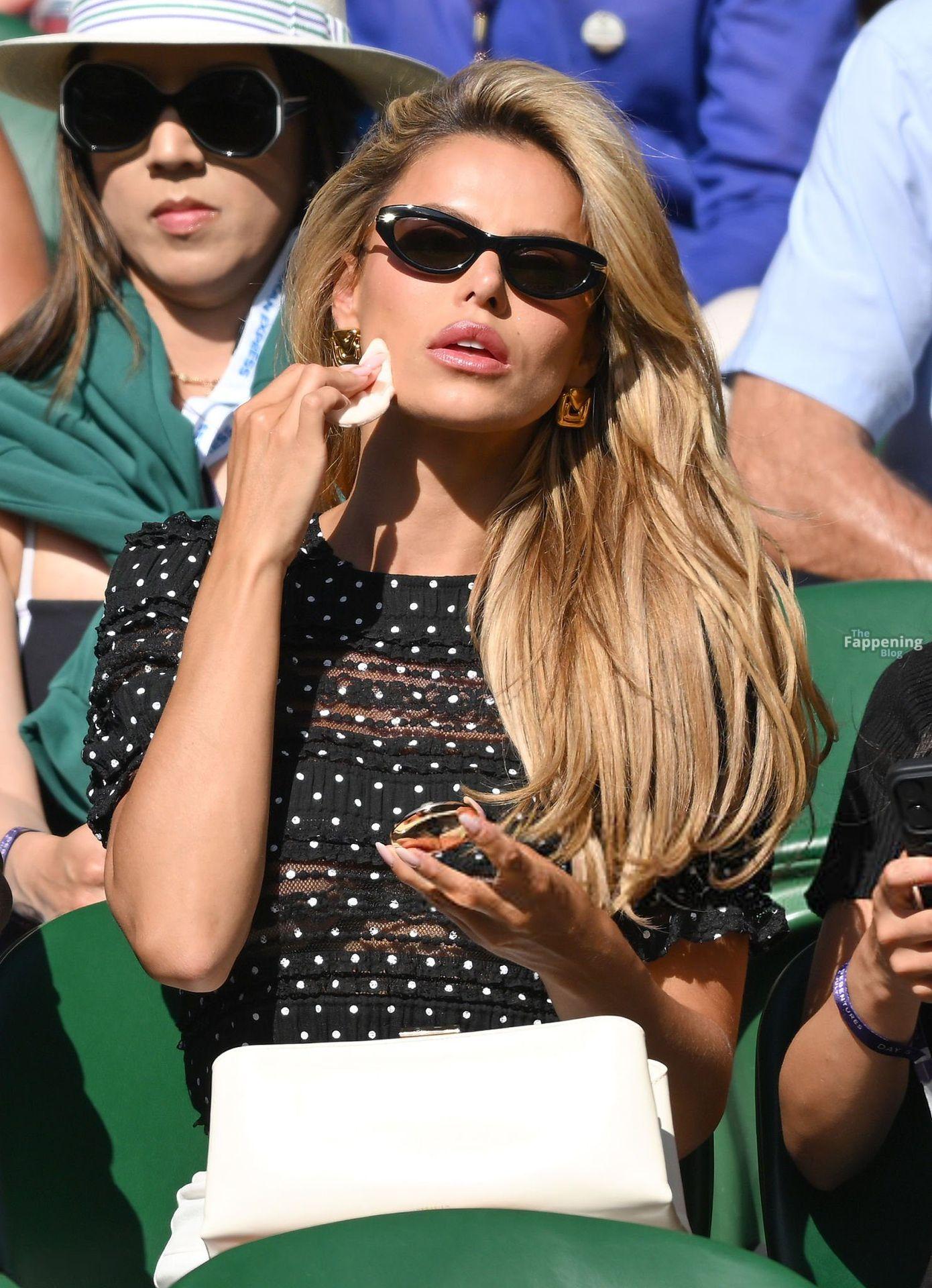 Model Brooks Nader a fait de la cinquième journée de Wimbledon toute une scène, arborant un chemisier noir transparent à pois sans rien en dessous.