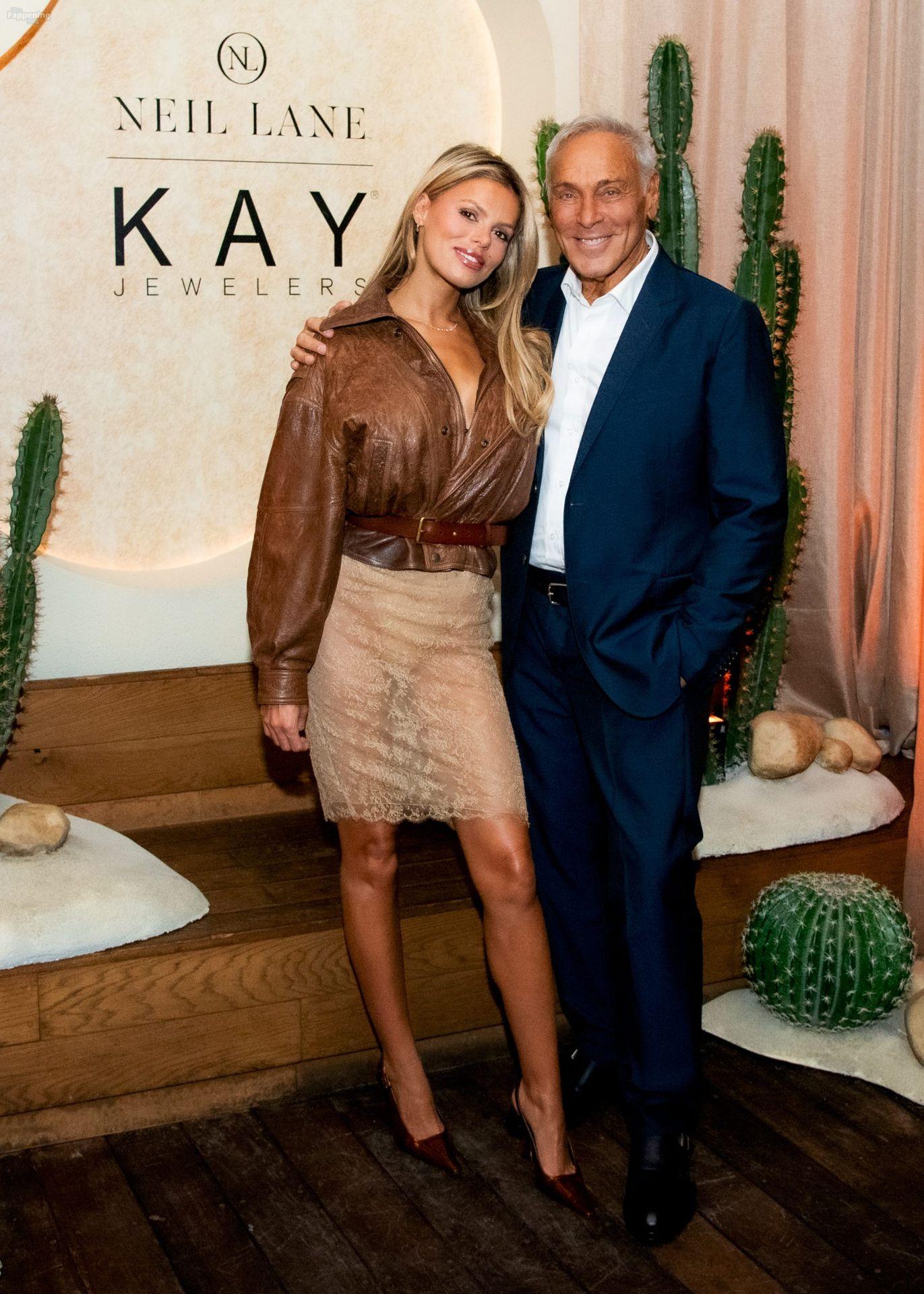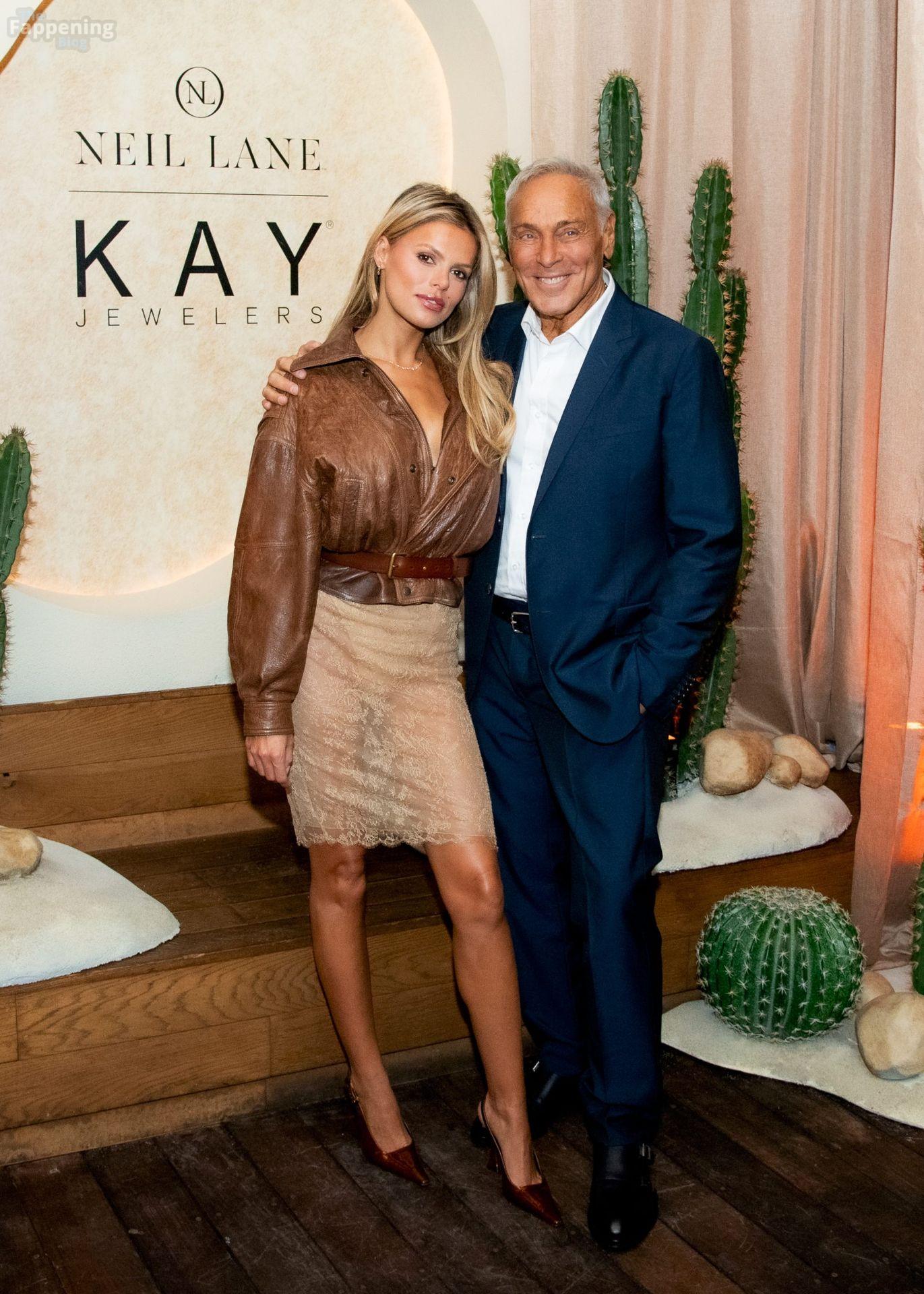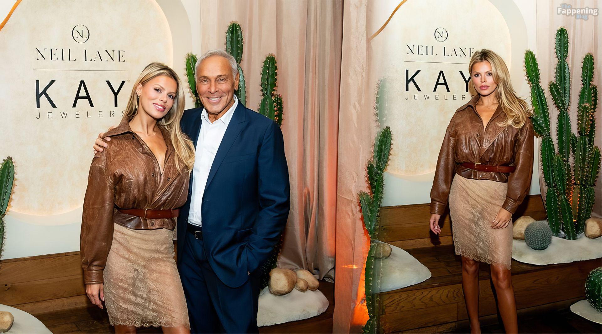 Brooks Nader portait une jupe en dentelle transparente lors du lancement de Desert Diamonds. Sa culotte était visible, avec ses jambes toniques pleinement exposées.