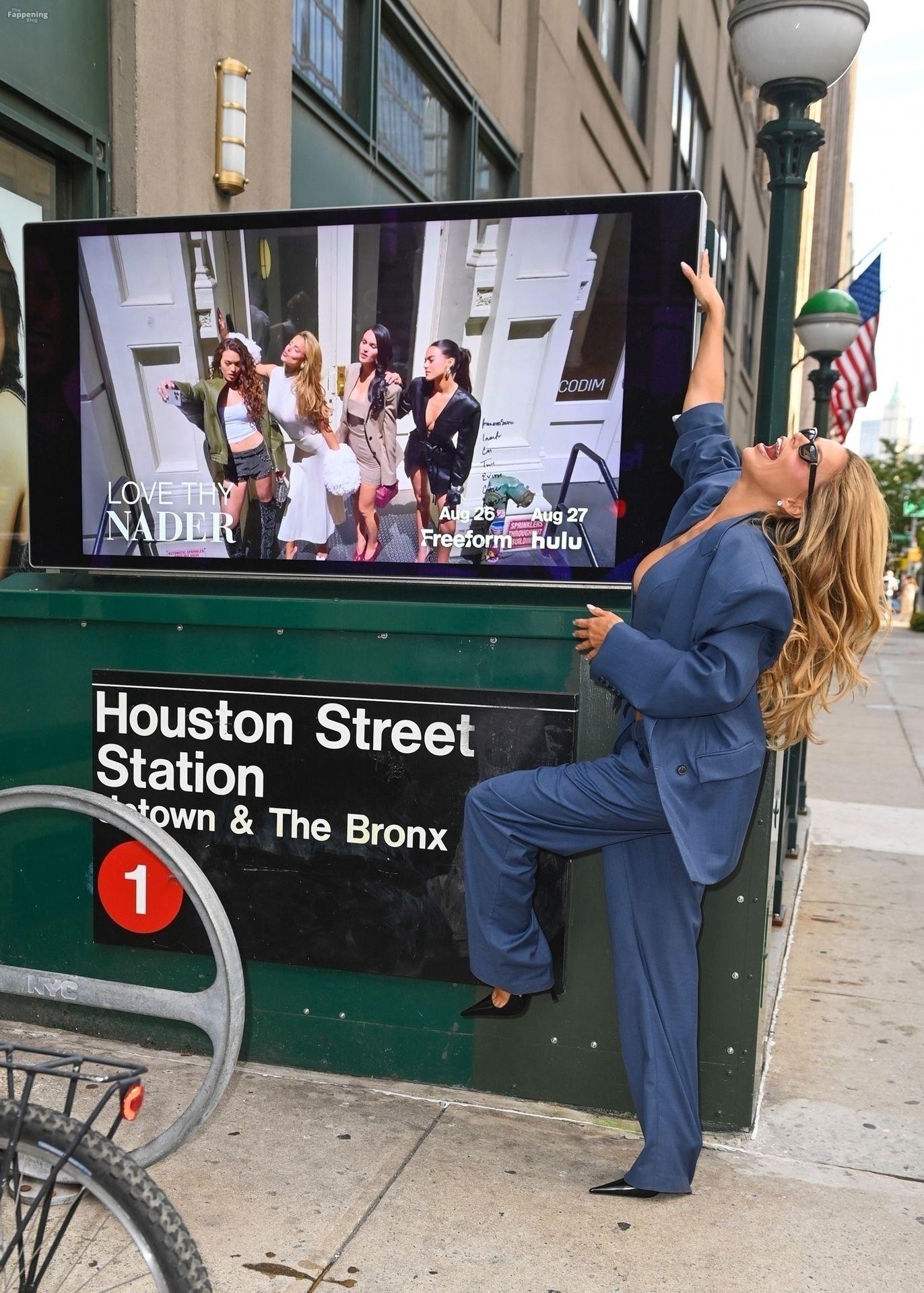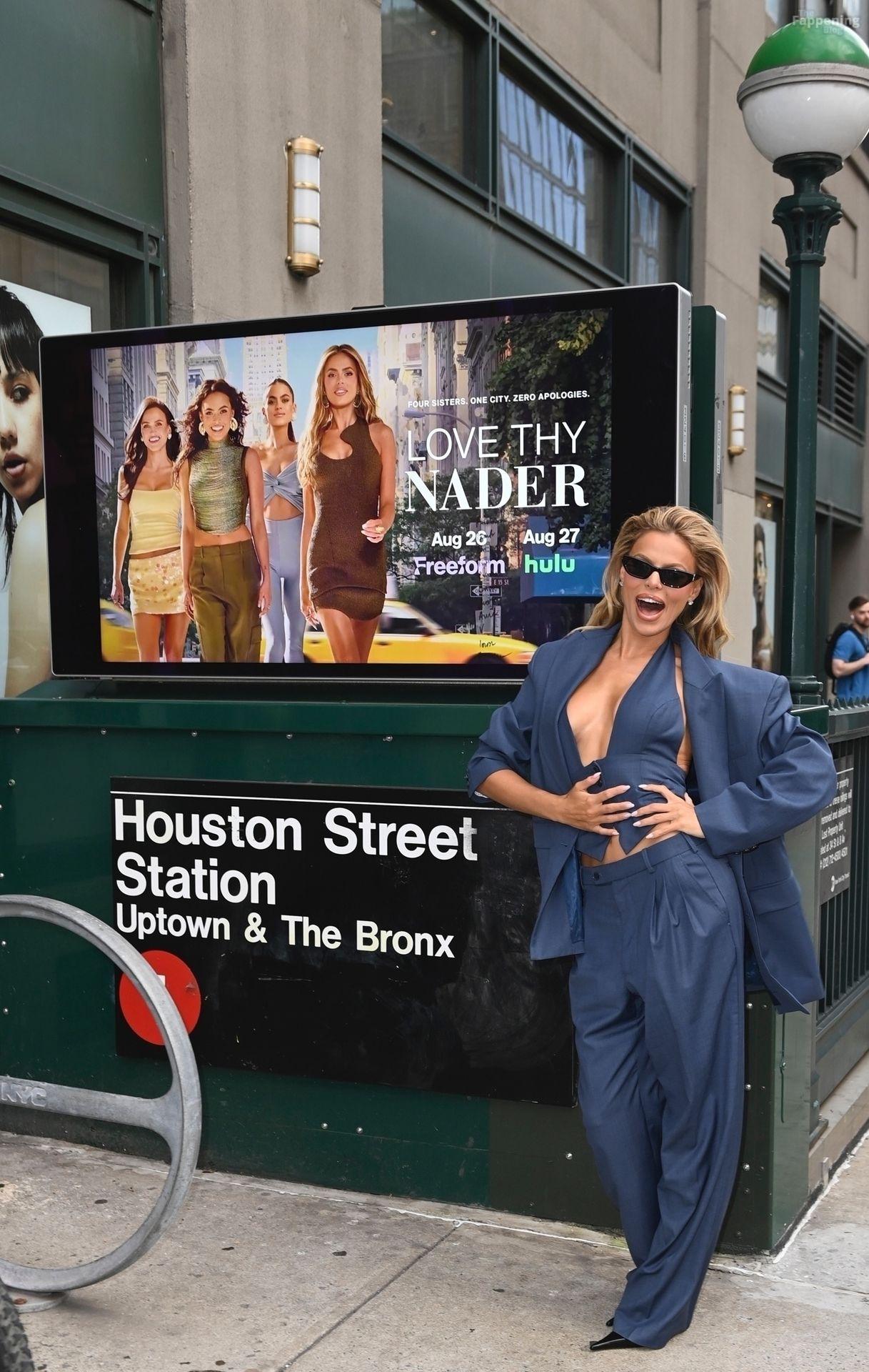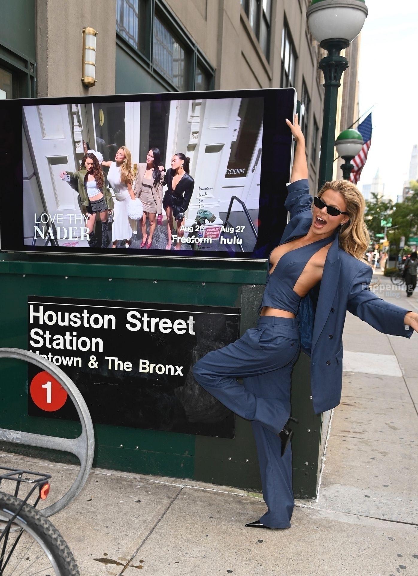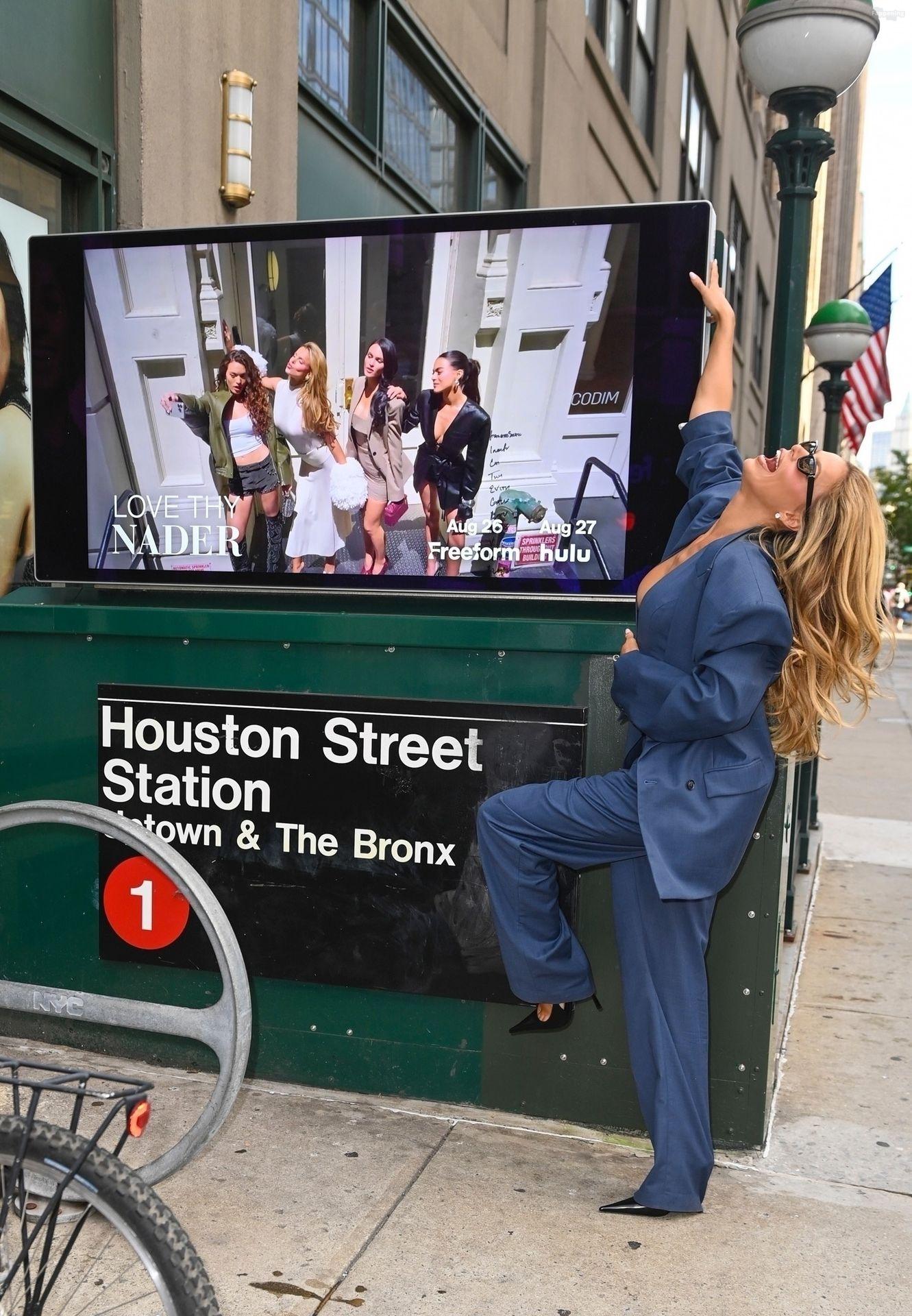 Brooks Nader a été vue à New York en train de se détendre près d’une publicité dans le métro pour sa nouvelle émission de télé-réalité Love Thy Nader, mettant en vedette elle et ses trois sœurs – Mary Holland, Grace Ann et Sarah Jane. Elle portait un élégant costume bleu, ses sœurs affichant également leurs styles affûtés, faisant monter l’enthousiasme pour le grand lancement de l’émission.