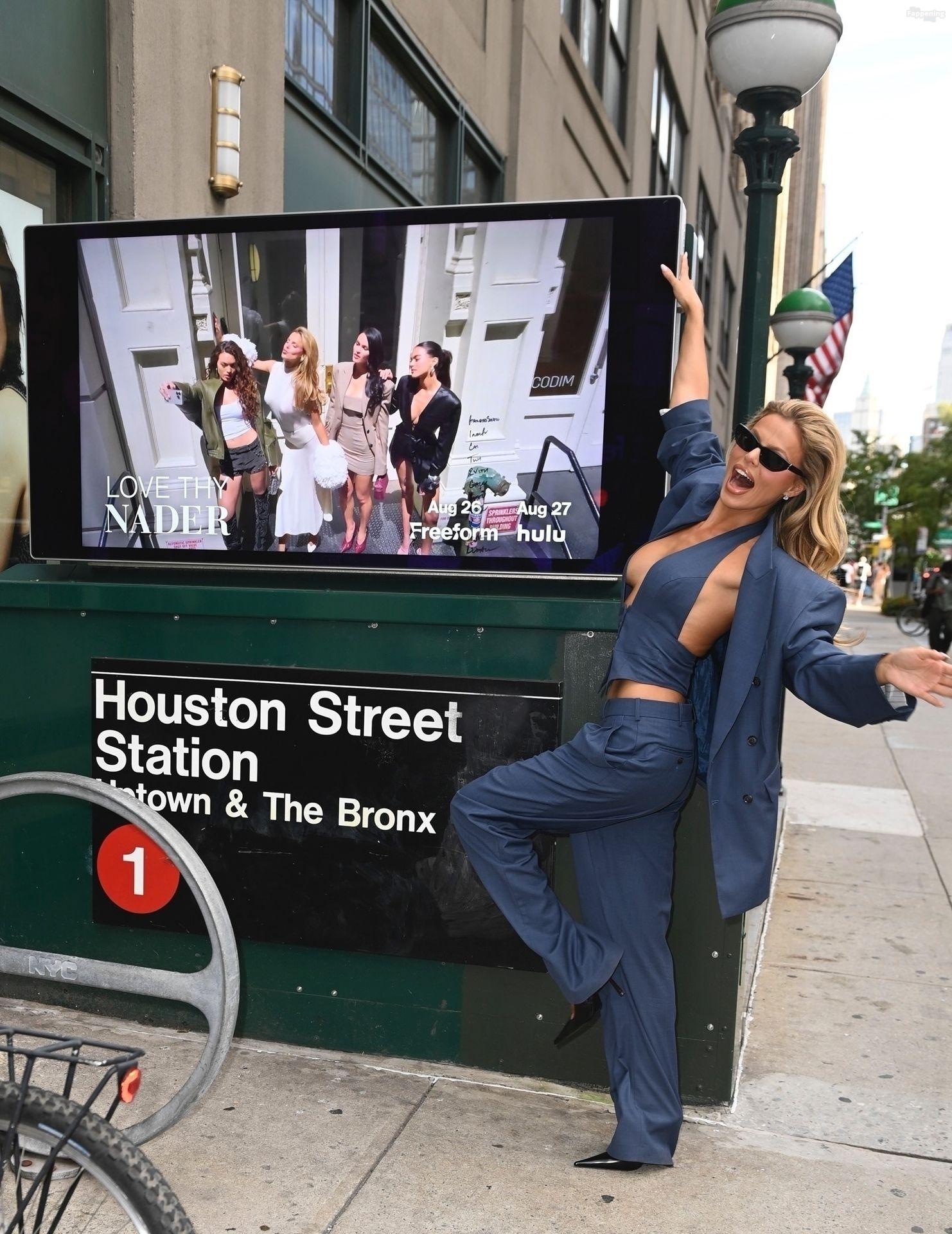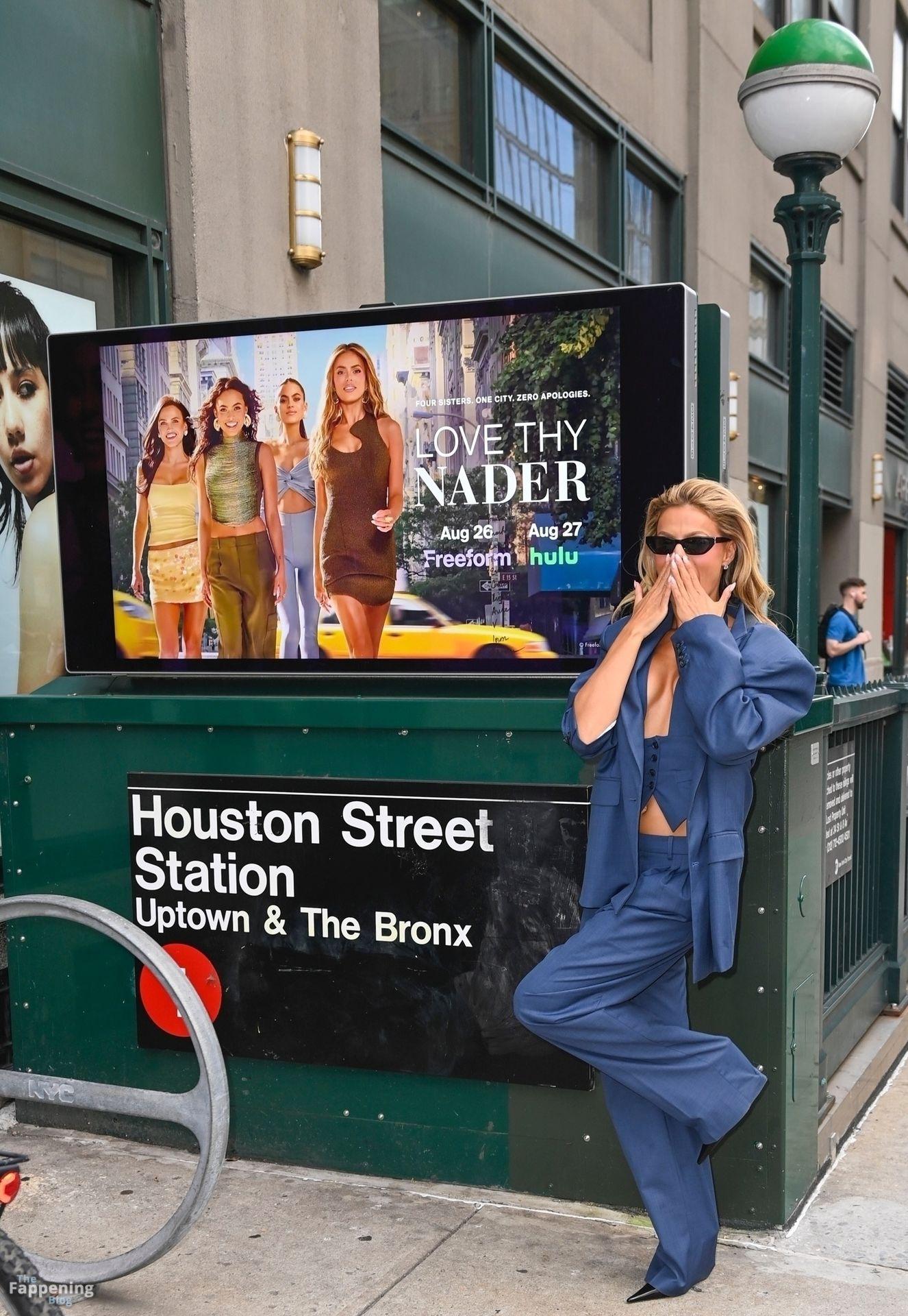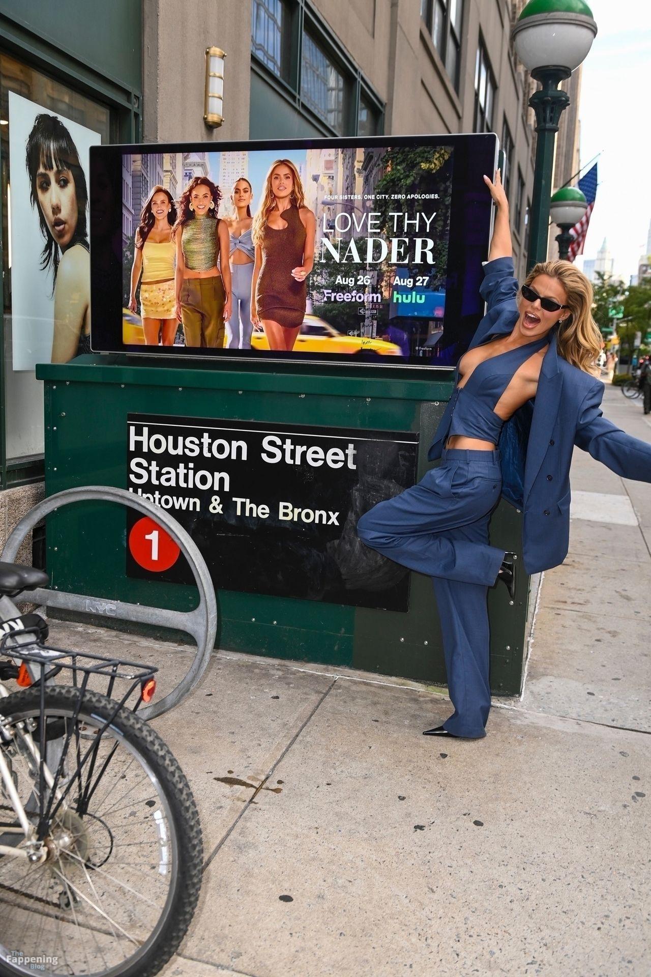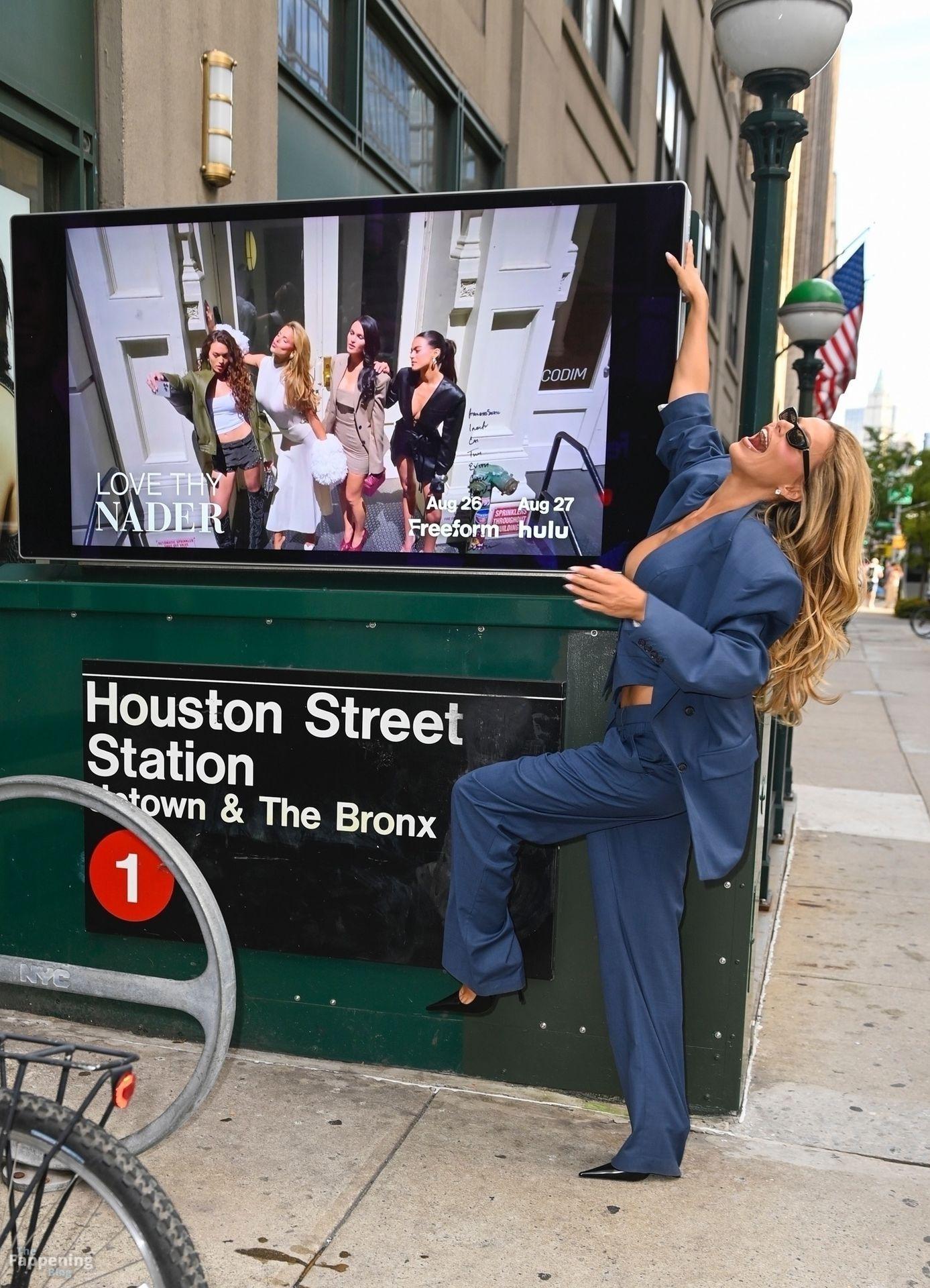Brooks Nader a été vue à New York en train de se détendre près d’une publicité dans le métro pour sa nouvelle émission de télé-réalité Love Thy Nader, mettant en vedette elle et ses trois sœurs – Mary Holland, Grace Ann et Sarah Jane. Elle portait un élégant costume bleu, ses sœurs affichant également leurs styles affûtés, faisant monter l’enthousiasme pour le grand lancement de l’émission.