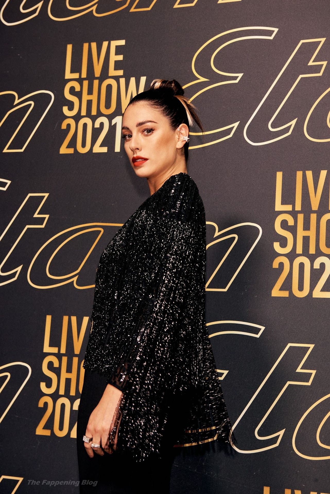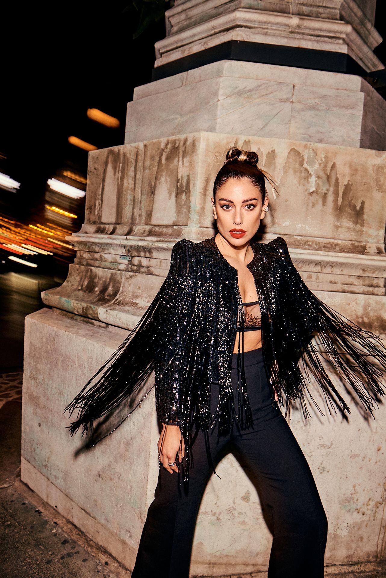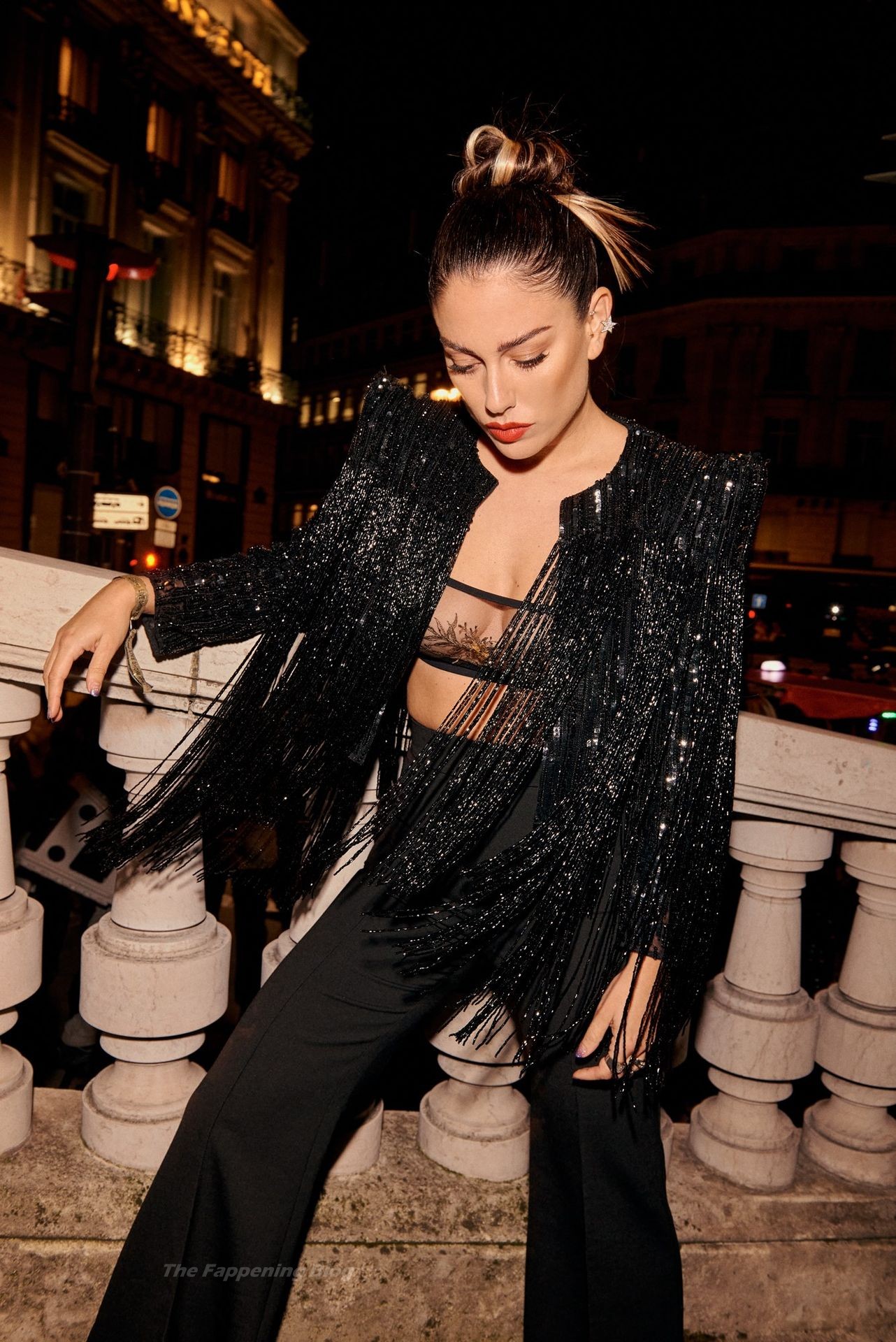 L’actrice espagnole Blanca Suarez pose lors du défilé de la marque de lingerie Etam à Paris, exhibant ses seins nus, 10/06/2021.