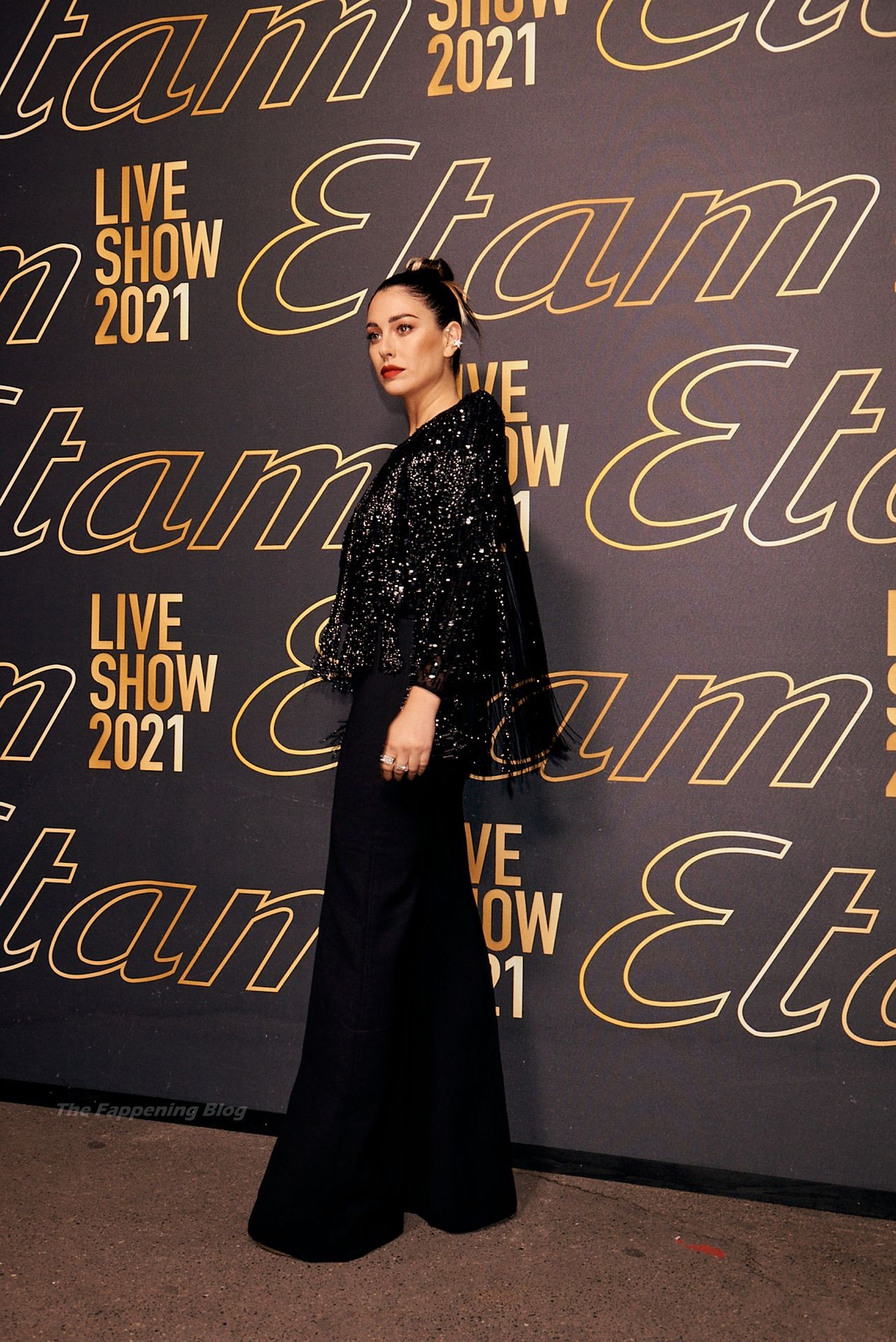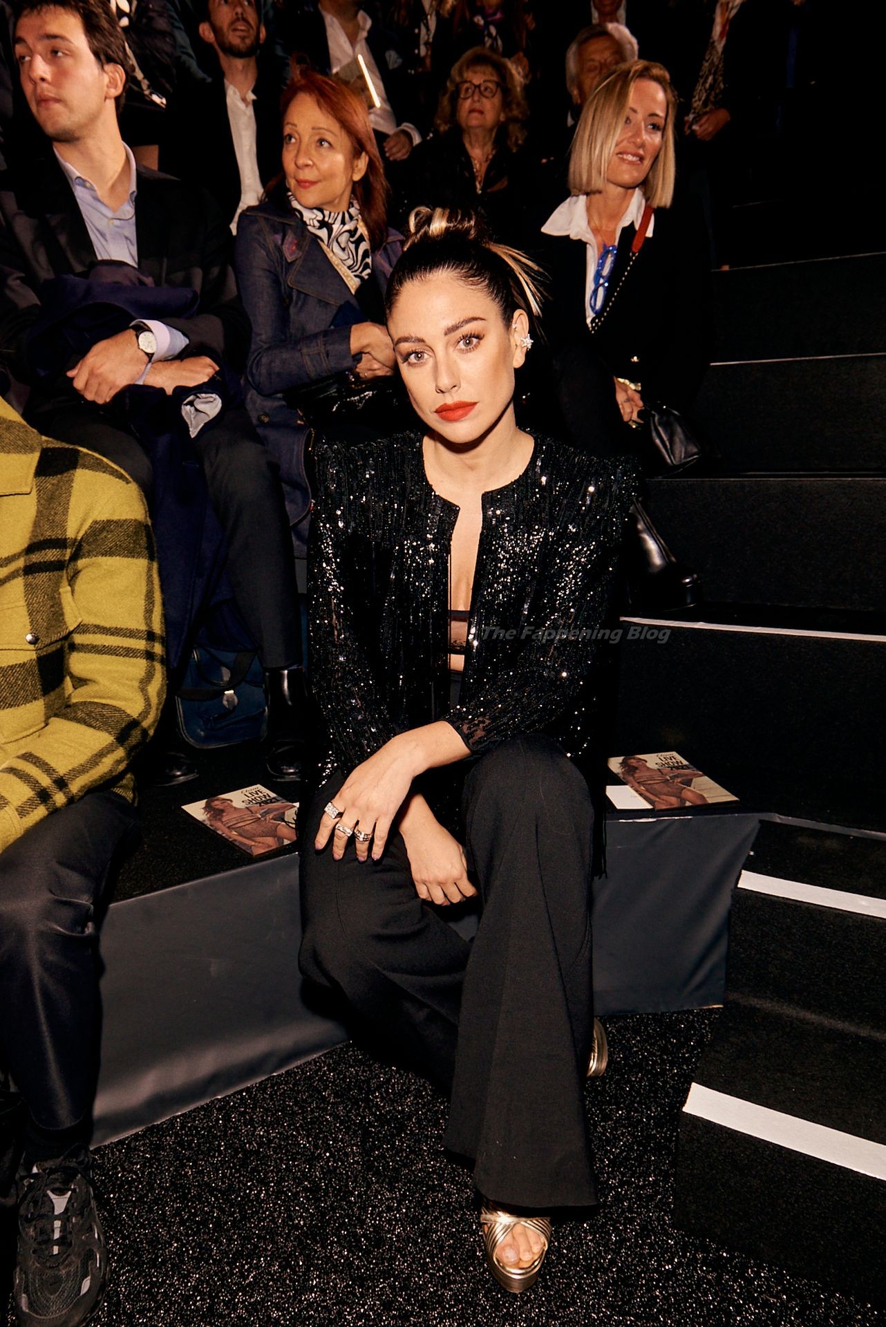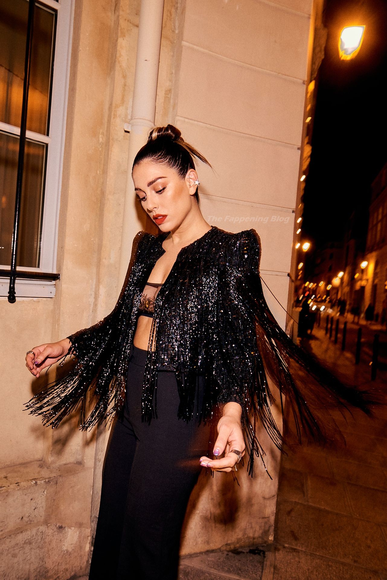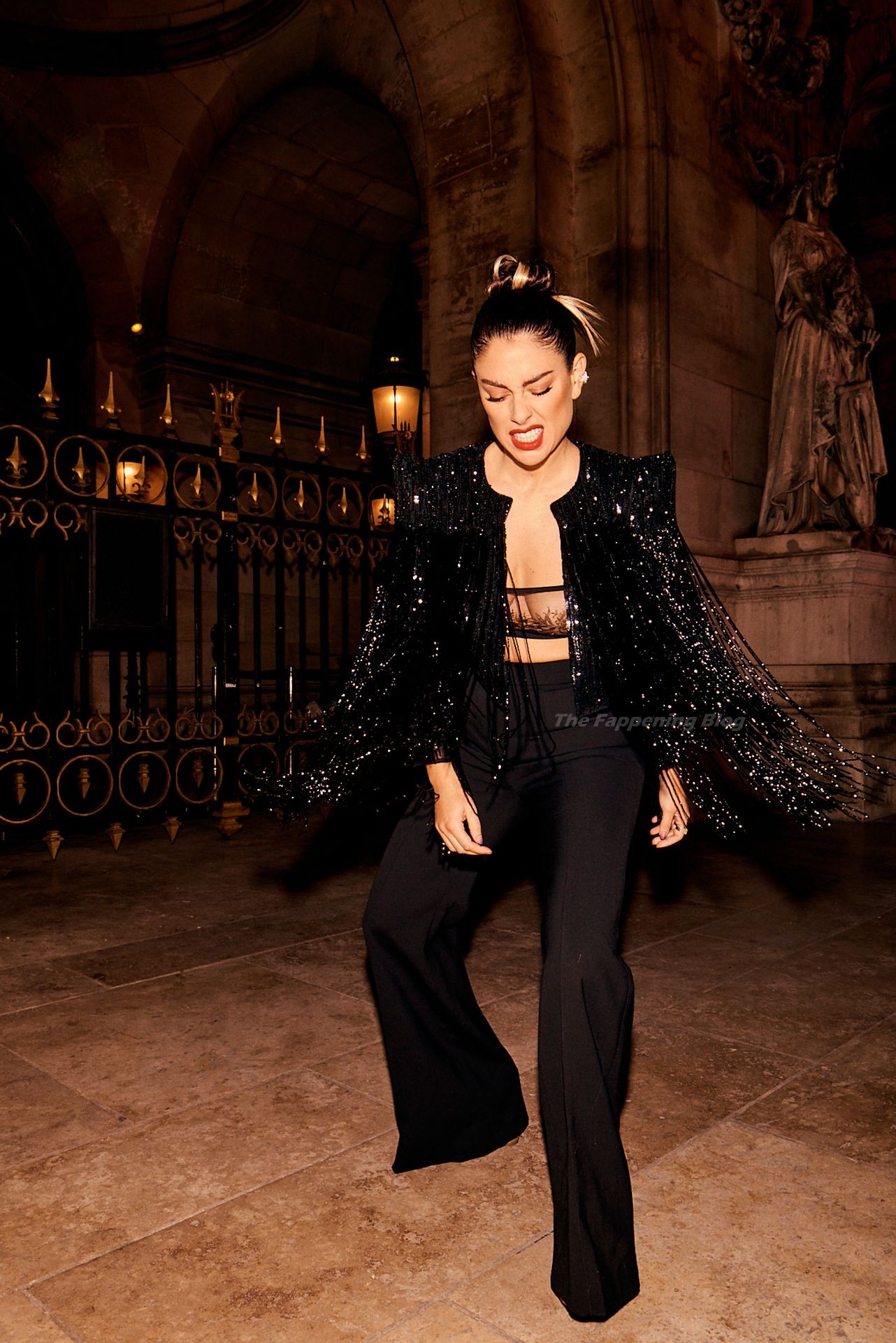 L’actrice espagnole Blanca Suarez pose lors du défilé de la marque de lingerie Etam à Paris, exhibant ses seins nus, 10/06/2021.