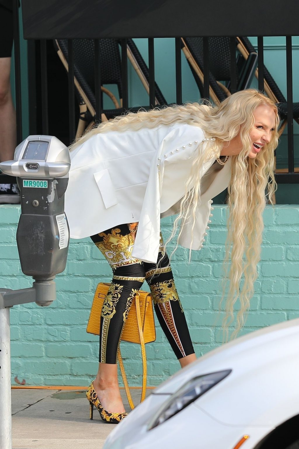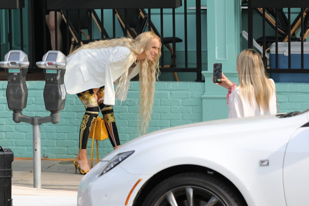 Christine Quinn est photographiée au « Olivetta » en train de filmer quelques scènes pour son émission « Selling Sunset » à West Hollywood, le 23/06/2021. Christine Quinn a accueilli son premier enfant, un fils nommé Christian, il y a seulement un mois.