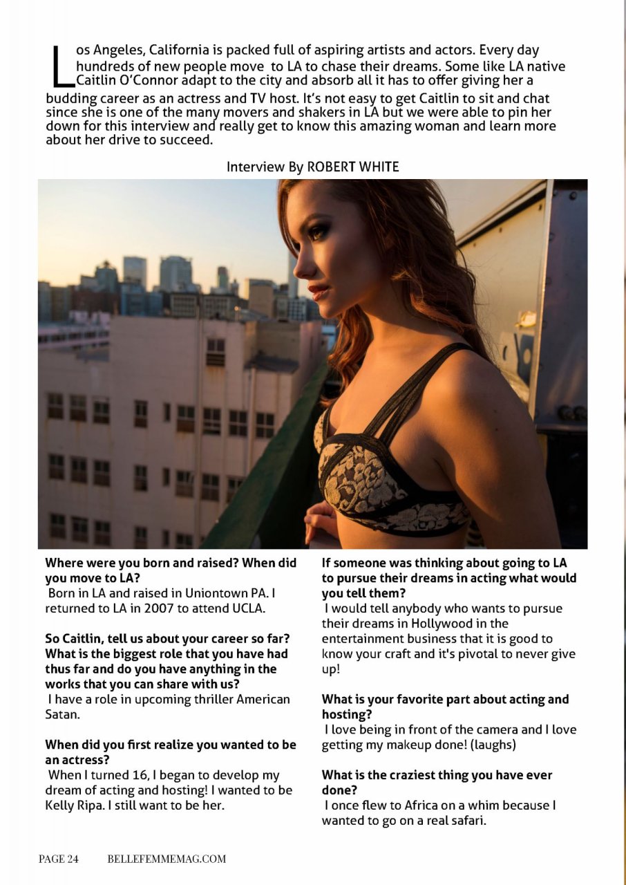 Découvrez des photos sexy de Caitlin O’Connor du magazine Belle Femme #01 USA (été 2016). Caitlin O’Connor (née Caitlin O’Connor Purdy) est une actrice américaine (Comedy Sketch TV Time, Okay ?), mannequin et animatrice. Âge : 26 ans (3 août 1990).