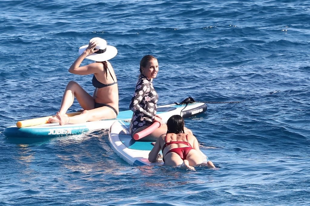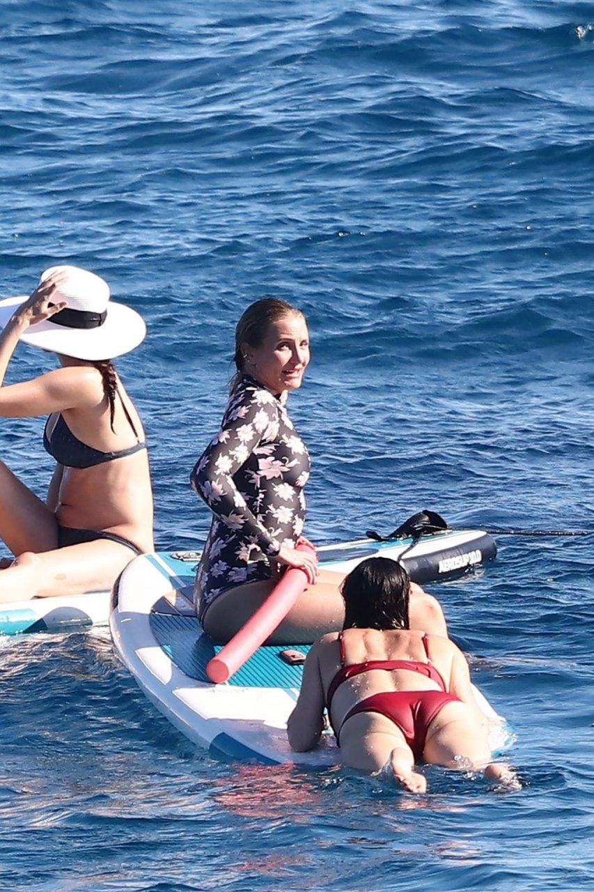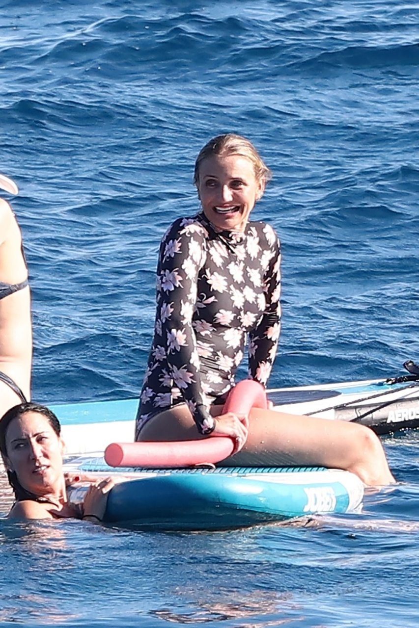 Cameron, qui fête ses 47 ans ce mois-ci, ne pouvait contenir sa joie alors qu’elle était vue en train de chevaucher un bodyboard motorisé avec Benji à travers la mer et de rire avec des amis sur des planches de surf pendant leur journée.