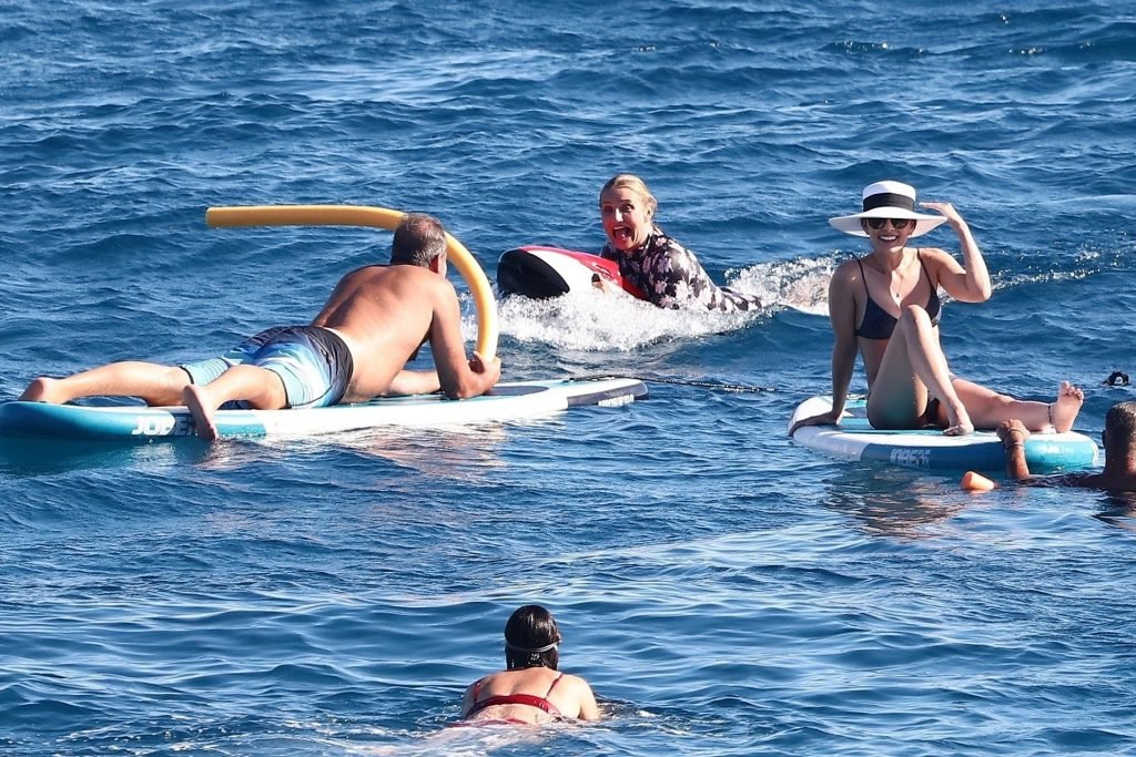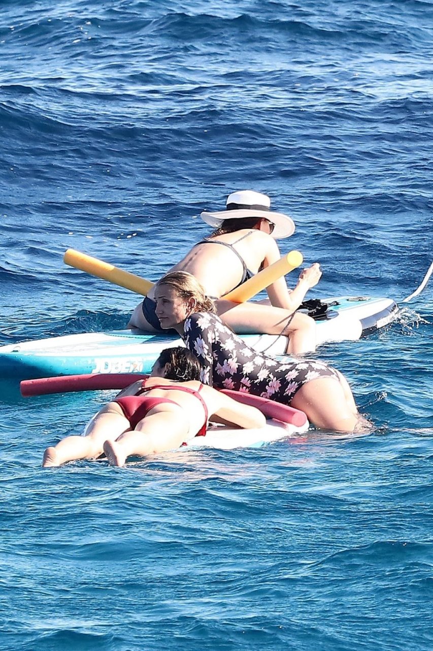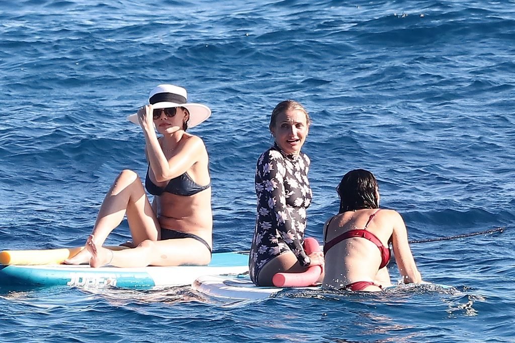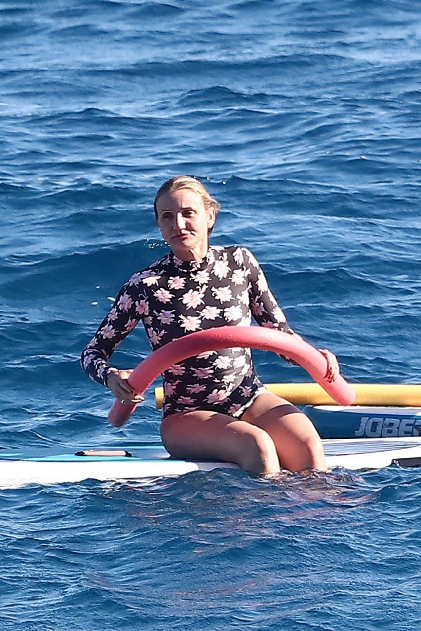 Cameron, qui fête ses 47 ans ce mois-ci, ne pouvait contenir sa joie alors qu’elle était vue en train de chevaucher un bodyboard motorisé avec Benji à travers la mer et de rire avec des amis sur des planches de surf pendant leur journée.