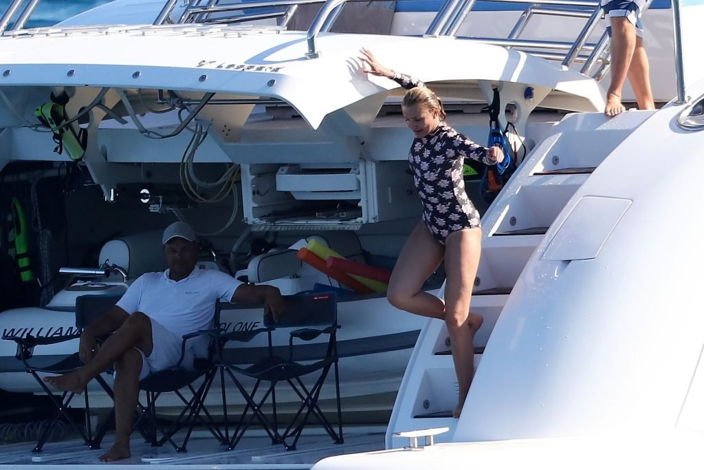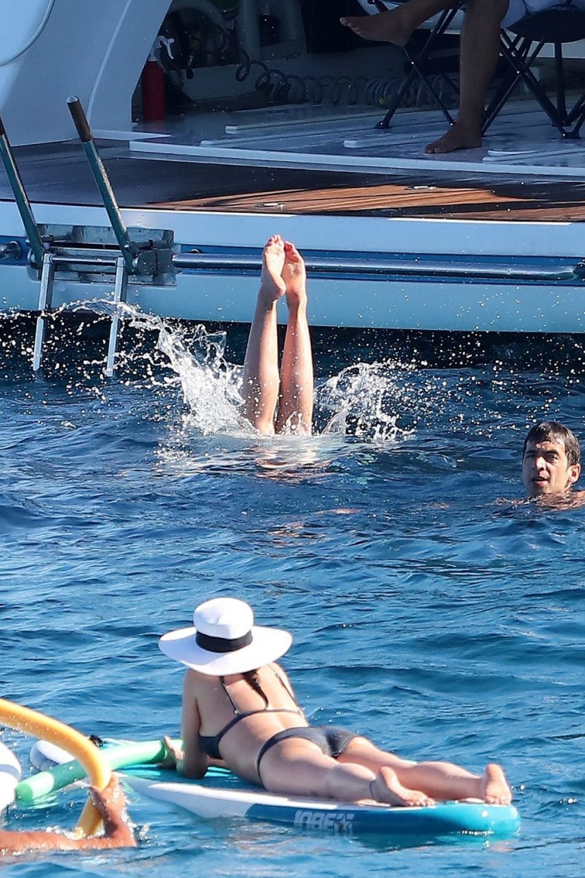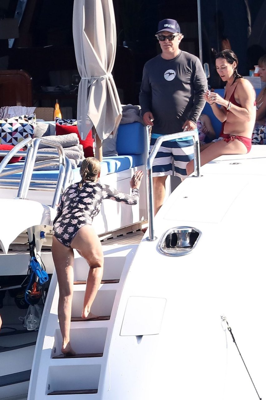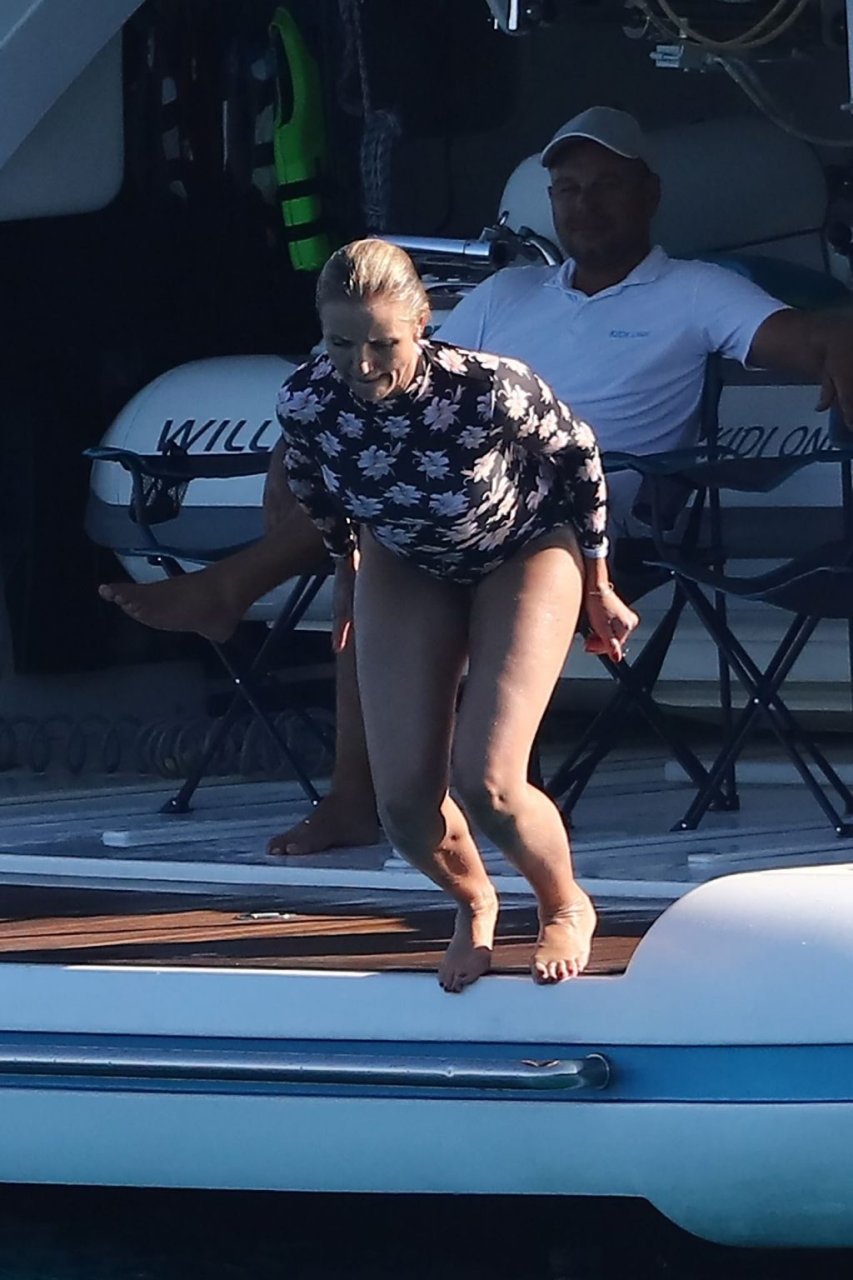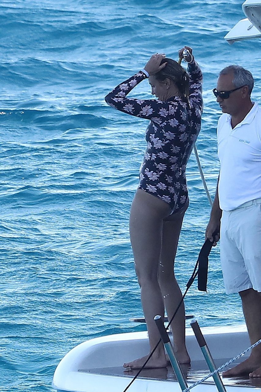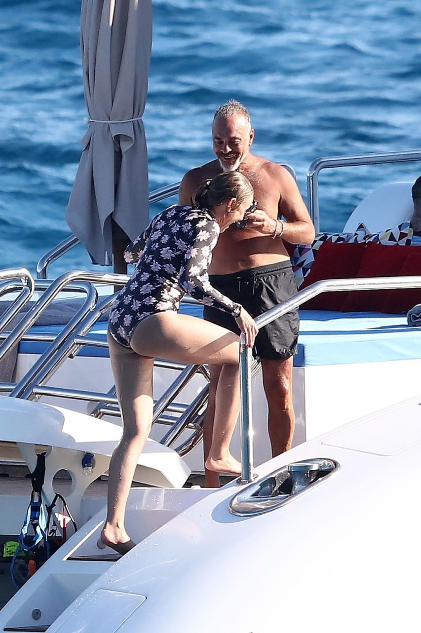 Cameron Diaz et son mari Benji Madden profitent au maximum de leurs vacances à Saint-Tropez, 08/08/2019. La star de Charlie’s Angels a été vue en train de plonger dans la Méditerranée dans un maillot une pièce fleuri qui mettait en valeur son corps fantastique.