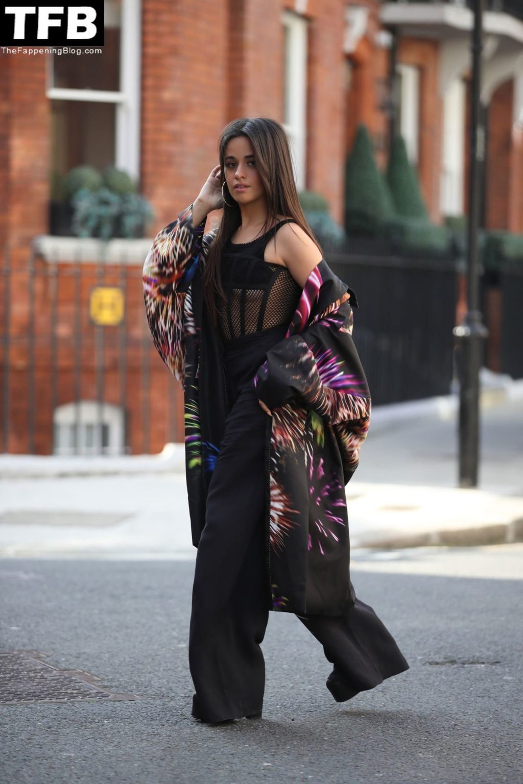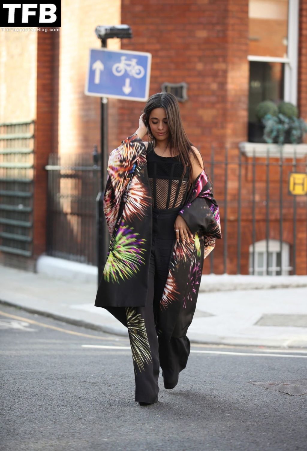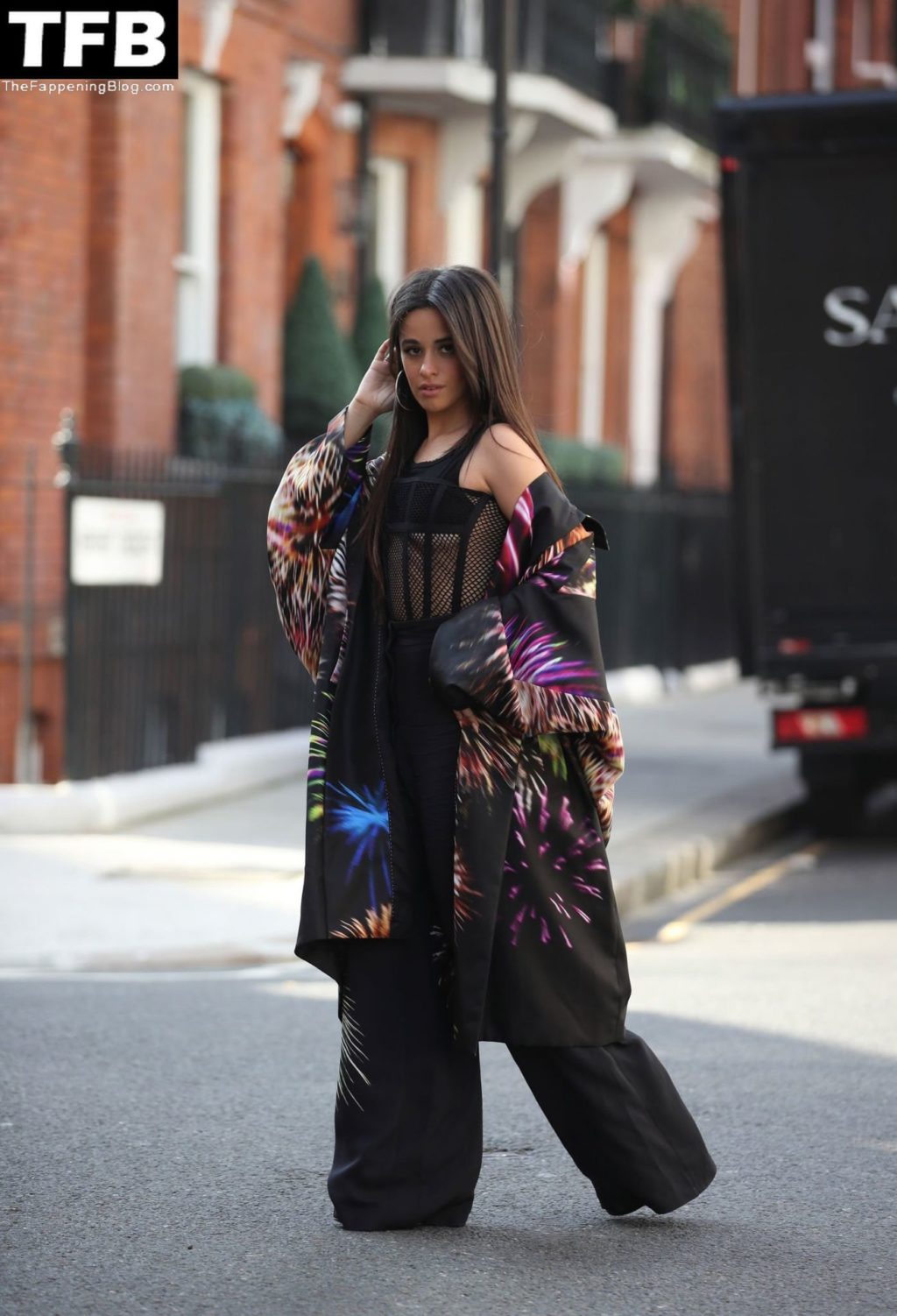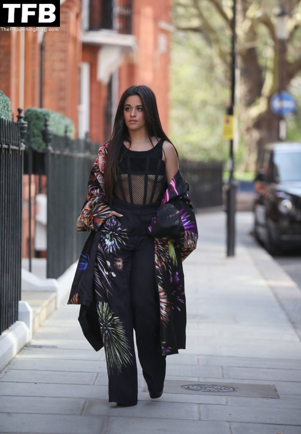 La chanteuse Camila Cabello affiche un look tendance avec un haut noir transparent et une veste multicolore à son arrivée au Radio à Londres 1 jeudi.