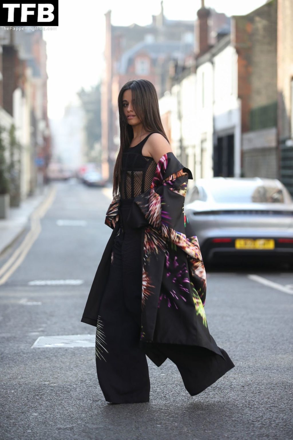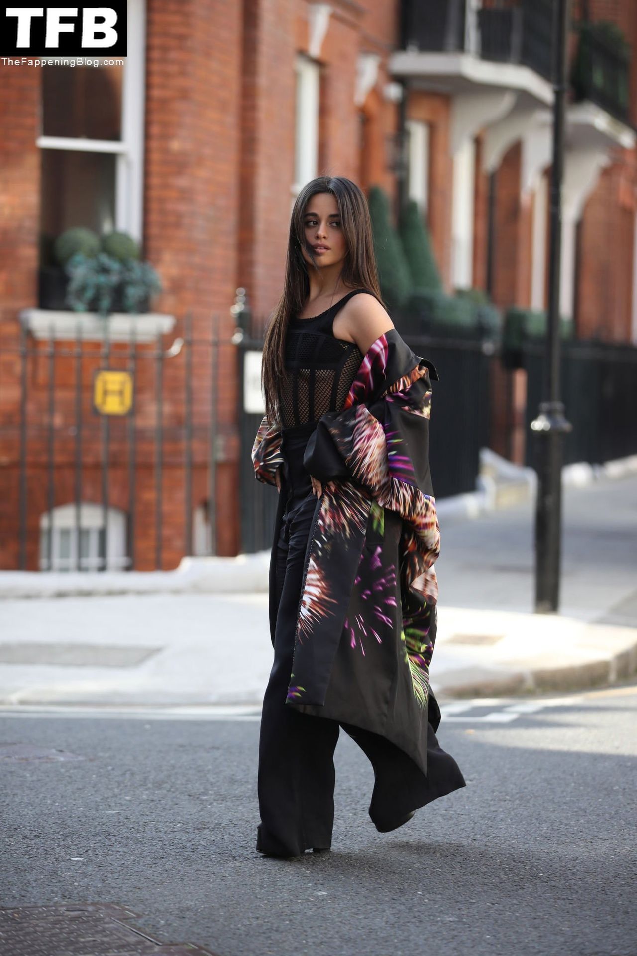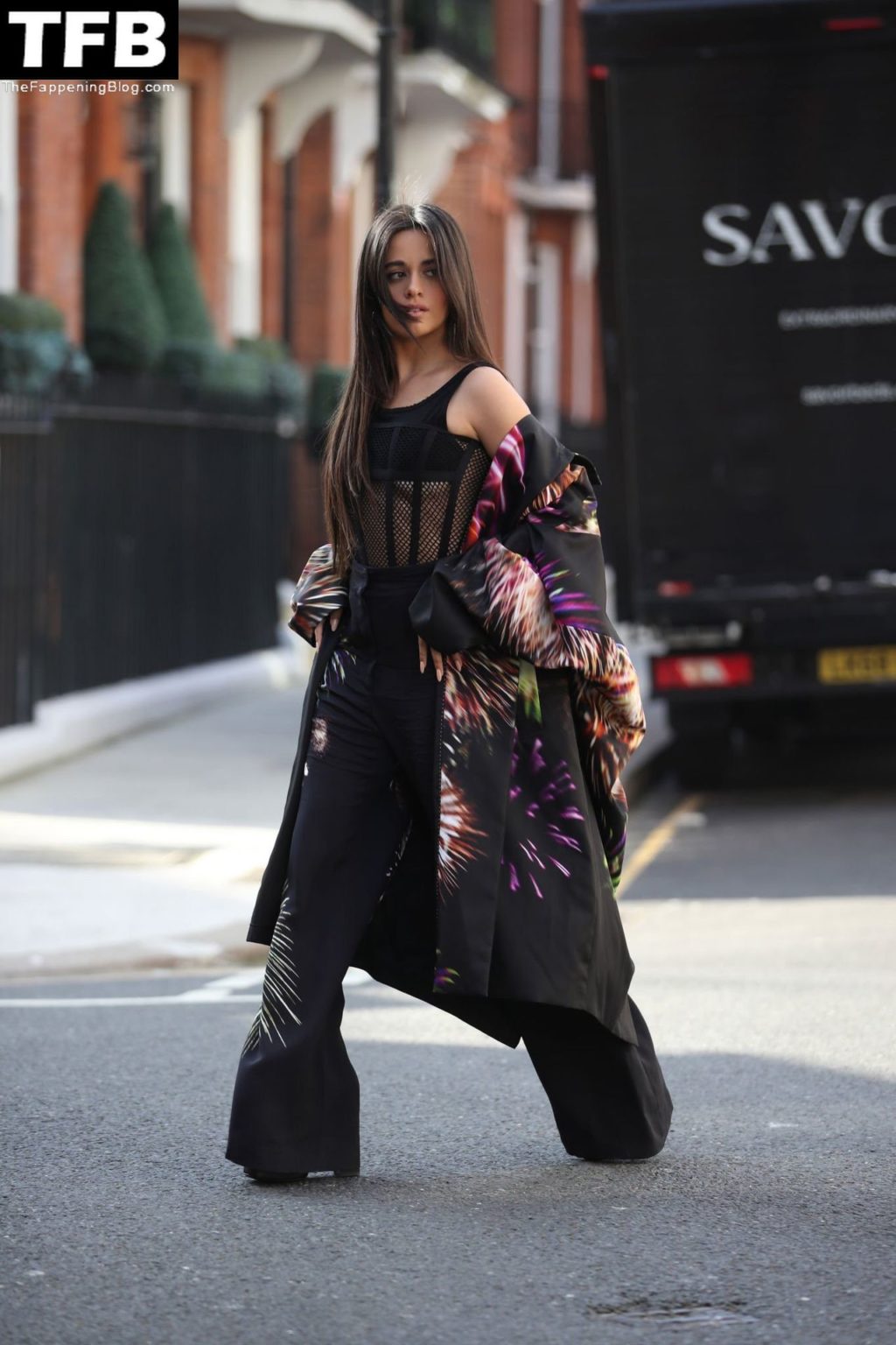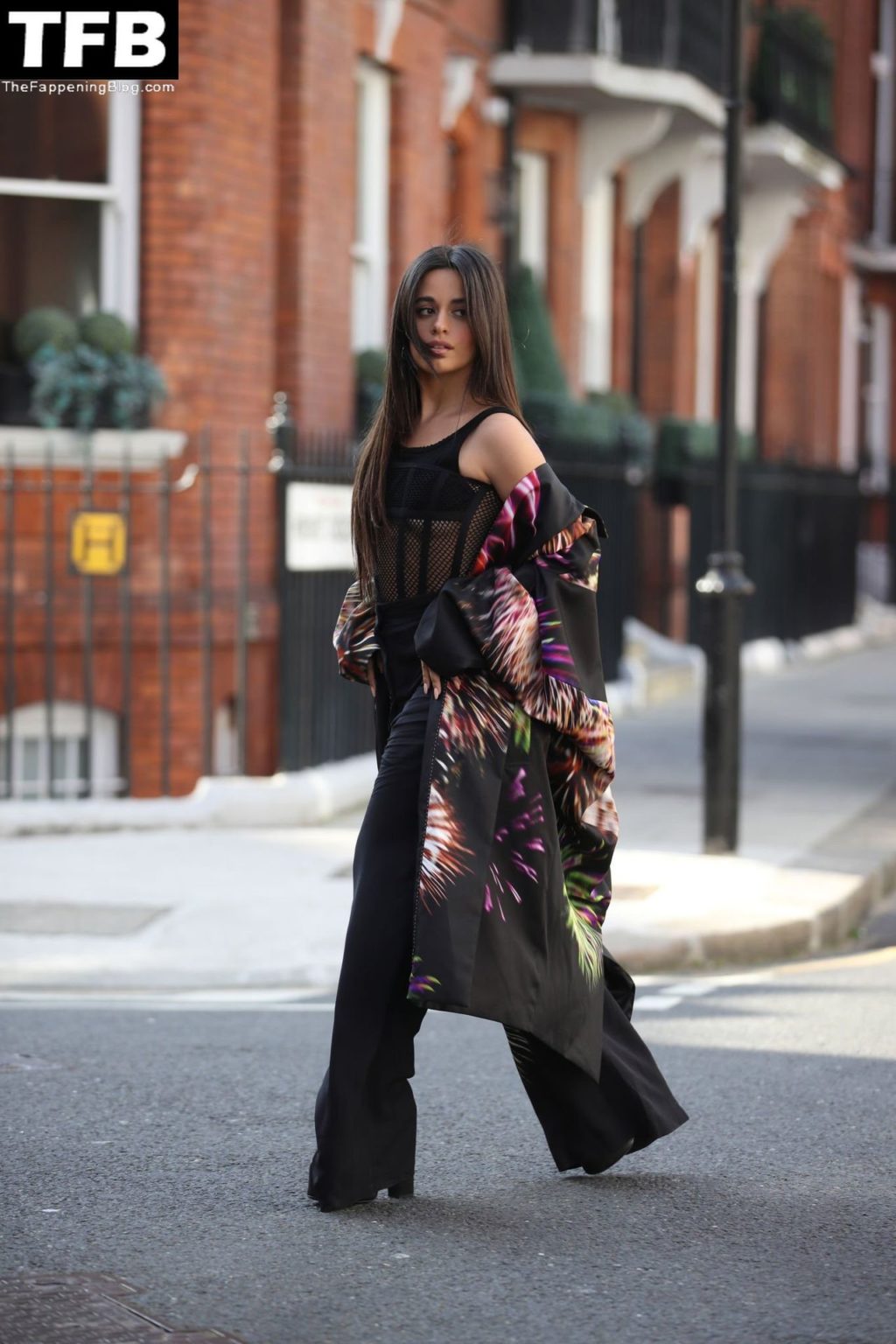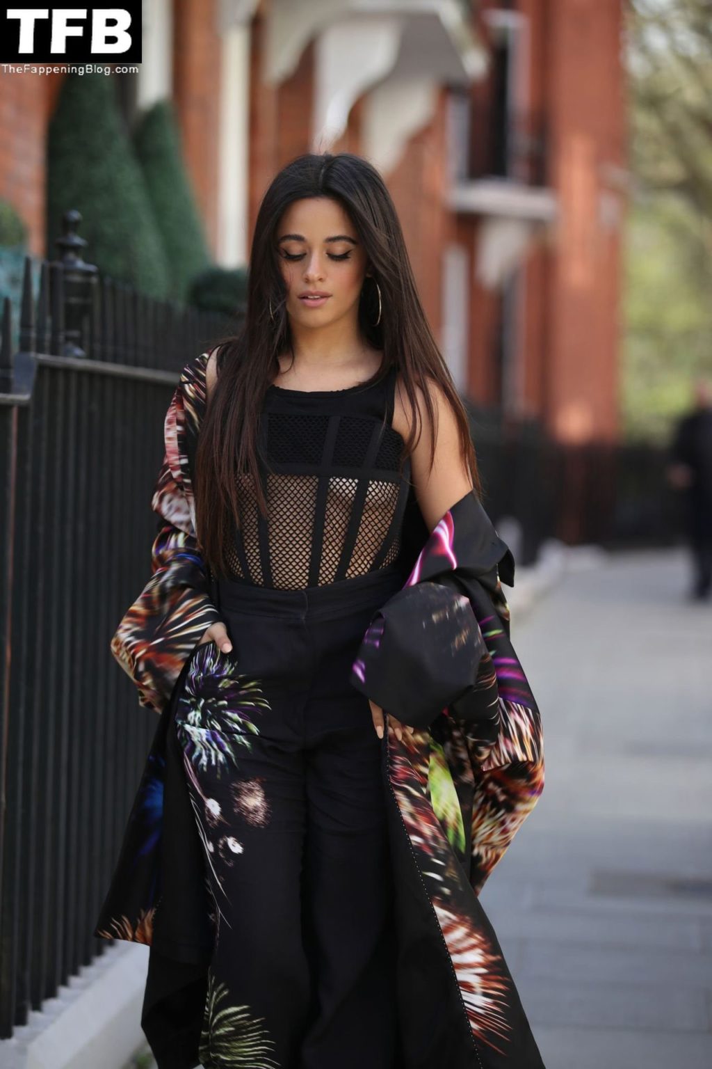 La chanteuse Camila Cabello affiche un look tendance avec un haut noir transparent et une veste multicolore à son arrivée au Radio à Londres 1 jeudi.