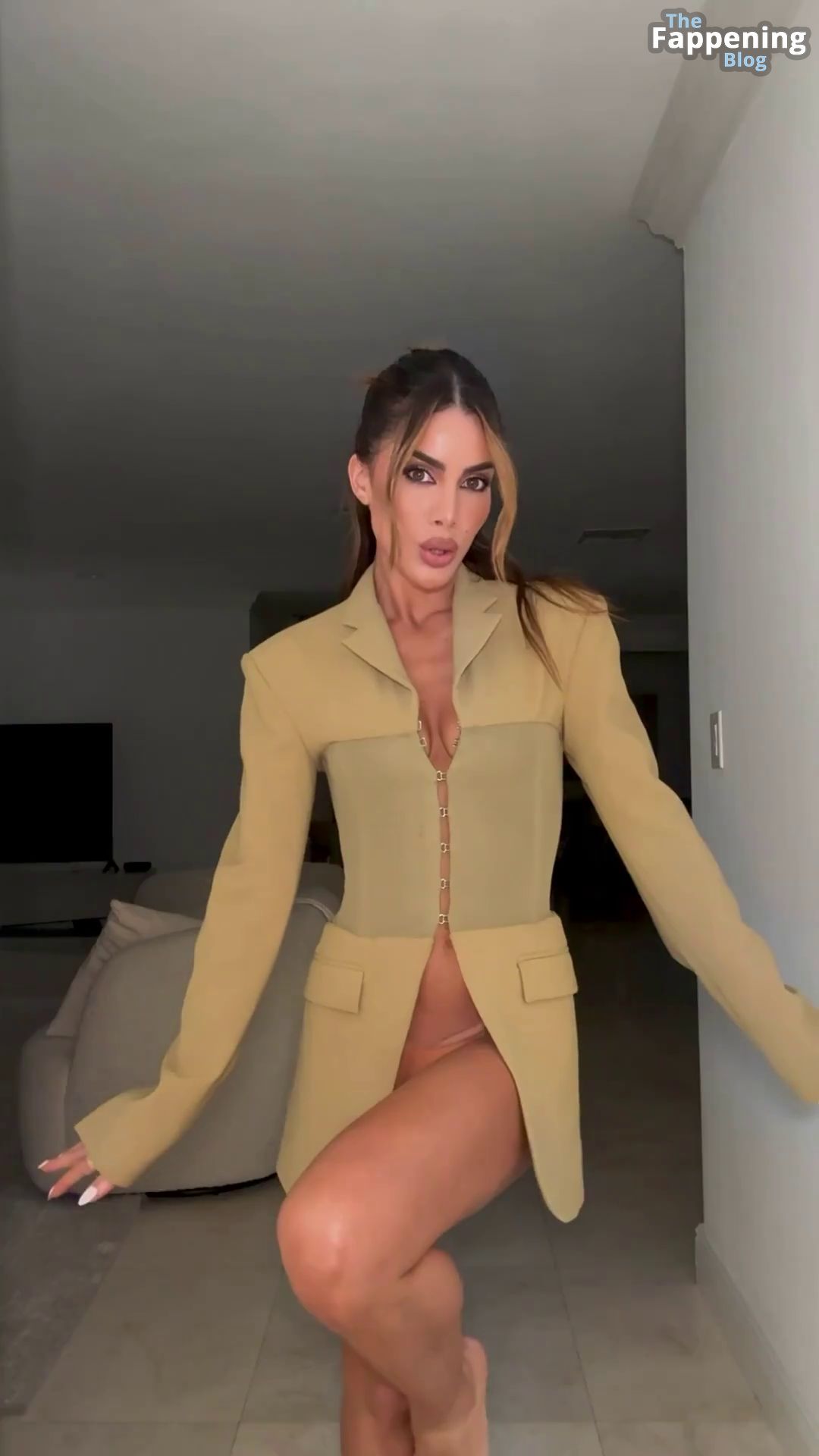 La supermodèle brésilienne Camila Coelho, 36 ans, a fait sensation lors d’un concert de la chanteuse Anitta avec une tenue vraiment audacieuse et a même posté une vidéo de sa préparation ! Elle portait une longue veste sans soutien-gorge et a opté pour une sorte de chaîne à la place d’une jupe, laissant presque apparaître sa lingerie couleur chair.