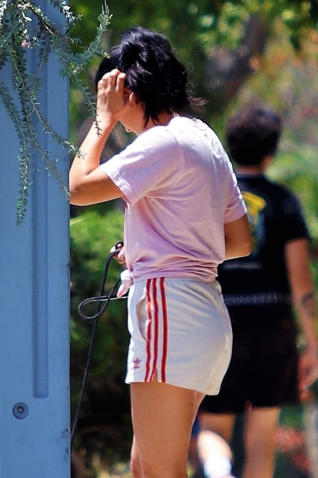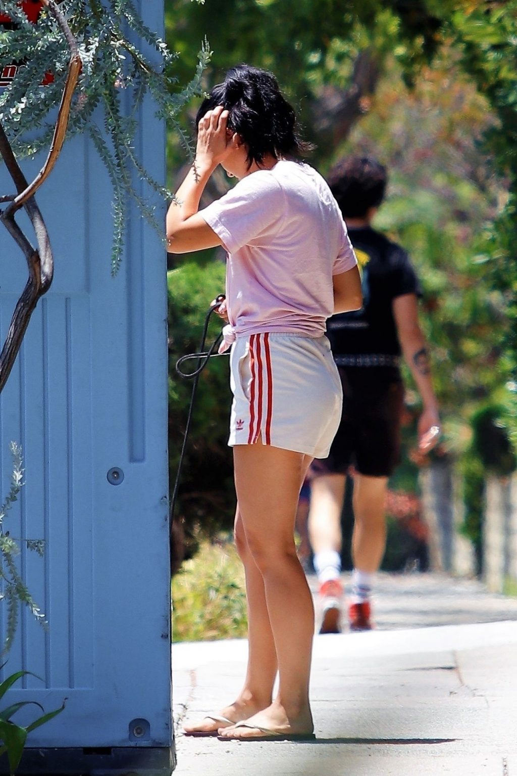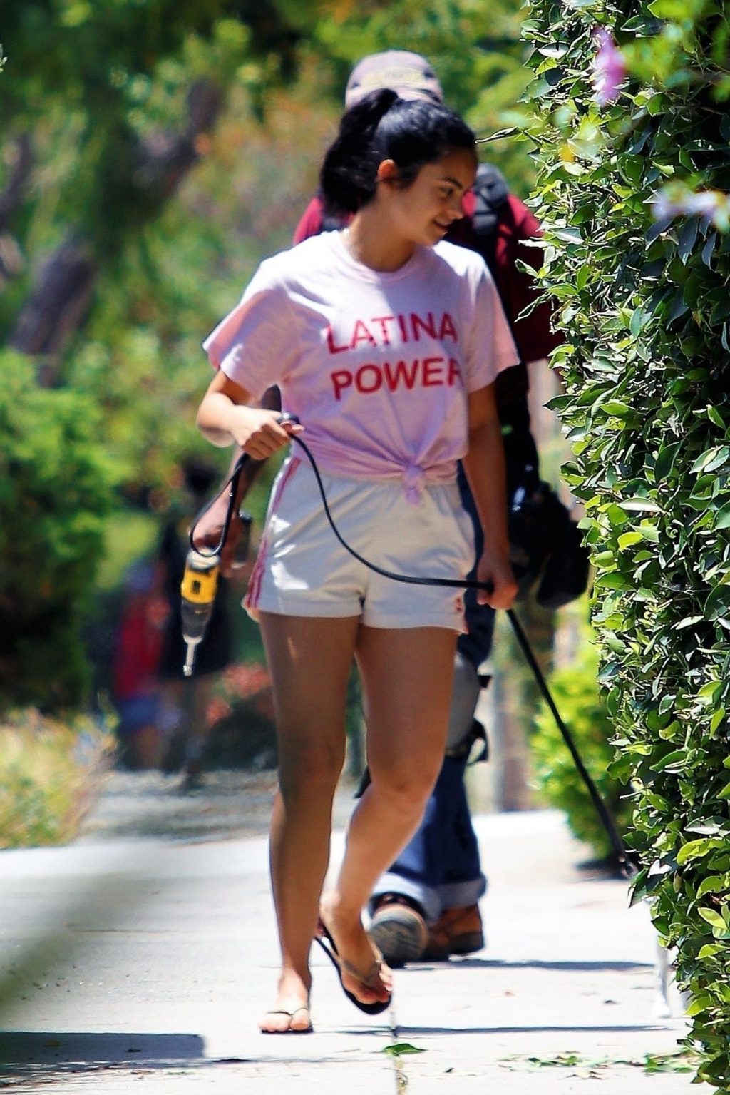 L’actrice américaine Camila Mendes affiche ses jambes et son « Pouvoir Latino » en promenant son chien à Los Angeles, le 07/02/2020.