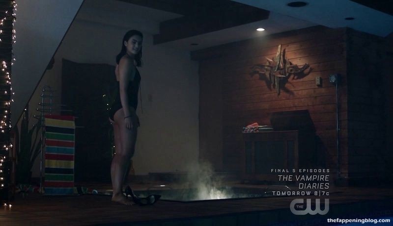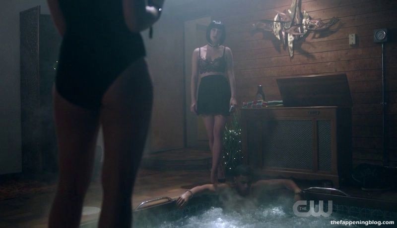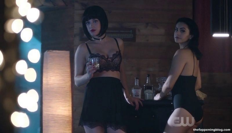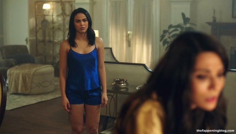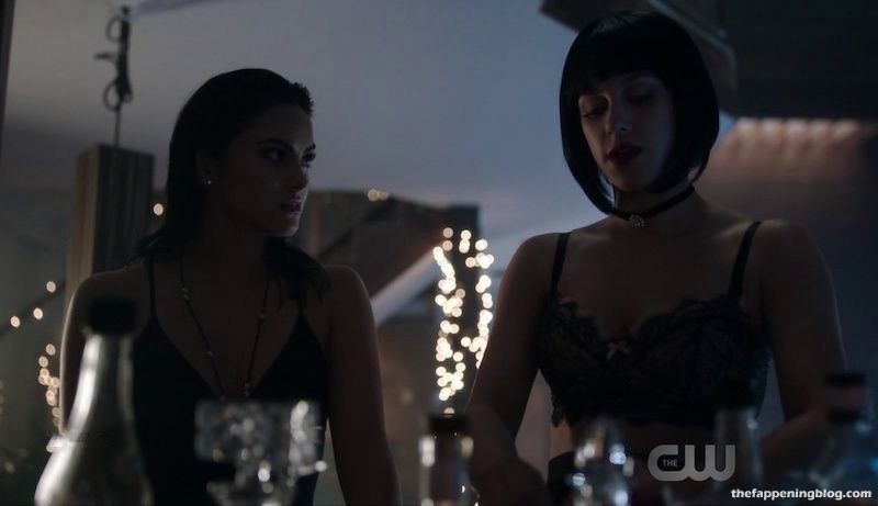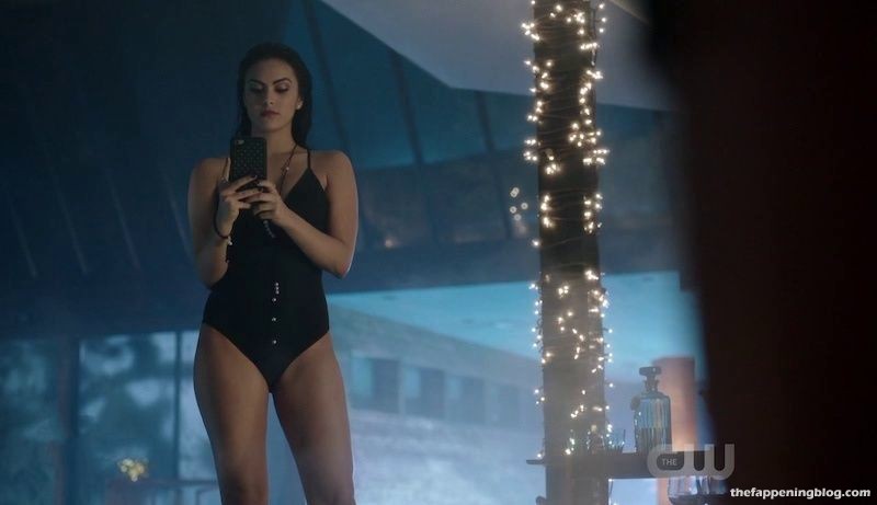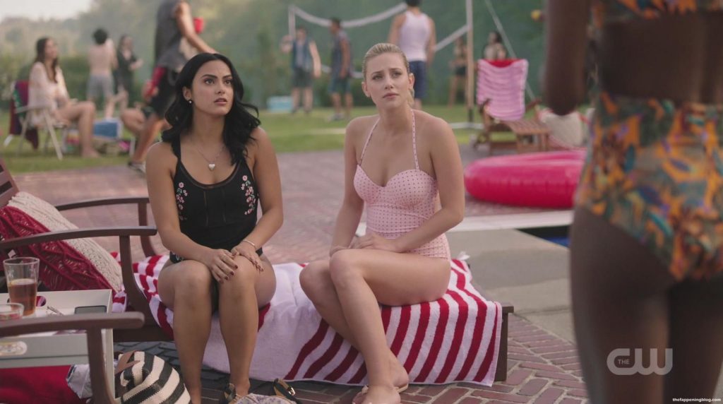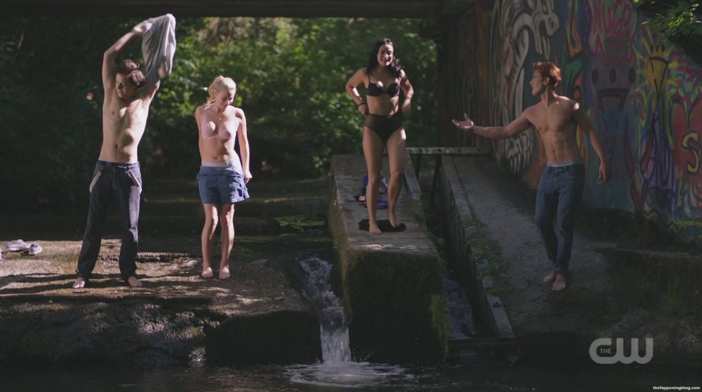Camila Mendes enlève son soutien-gorge et ouvre un rideau de douche pour rejoindre un homme sous l’eau courante. Elle entre et, alors que l’homme bouge son bras, on aperçoit brièvement par accident son téton droit. Nous la voyons ensuite en silhouette à travers le rideau alors qu’elle s’embrasse avec l’homme.