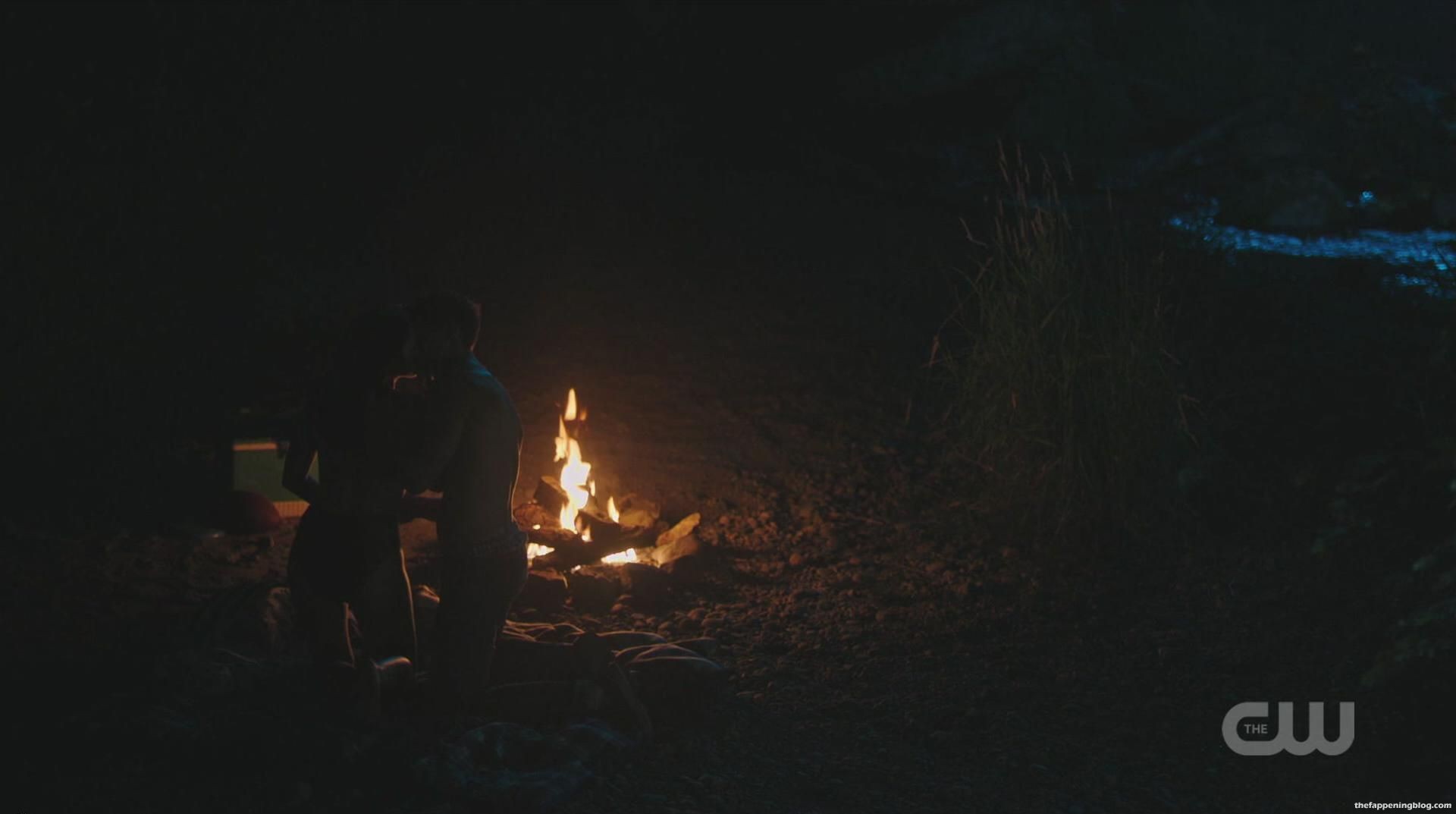 Camila Mendes fait ouvrir sa chemise par un homme pour révéler un bandage autour de sa poitrine, que l’homme coupe ensuite au couteau, dévoilant un peu de décolleté. Elle et l’homme s’embrassent ensuite alors qu’elle enlève sa chemise, seins nus et montrant un sideboob pressé contre l’homme alors qu’ils s’embrassent encore.