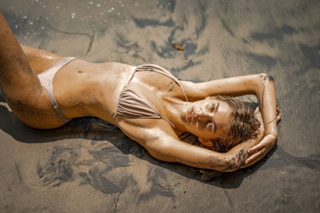 Le mannequin/actrice Camila (Cami) Morrone exhibe son corps sensuel et ses magnifiques seins en posant en bikini minimaliste sur la plage de Malibu pour une ancienne séance photo de Kesler Tran (2016).