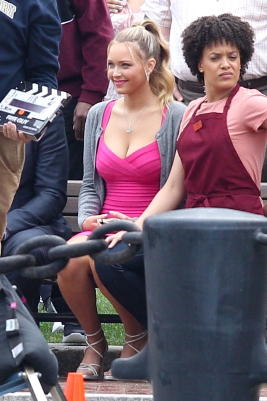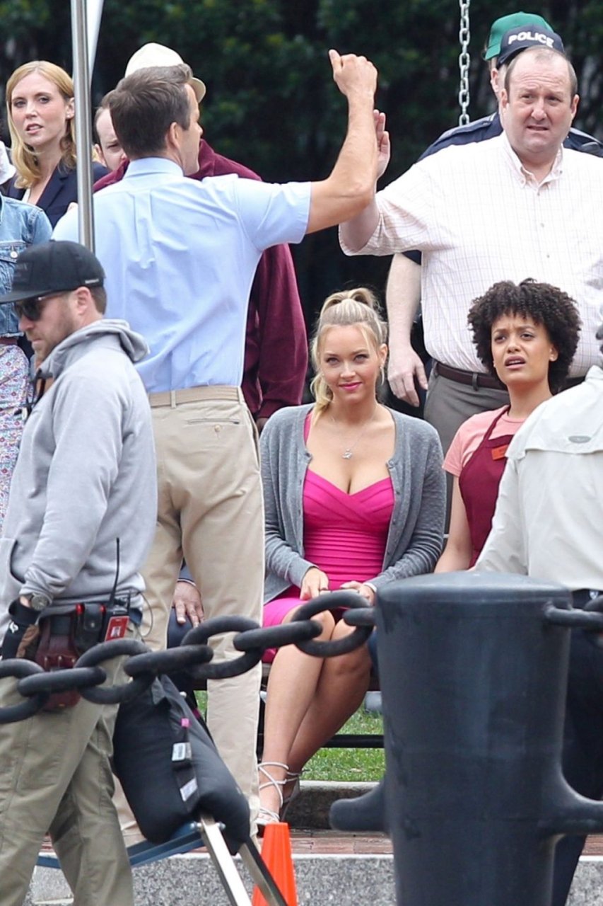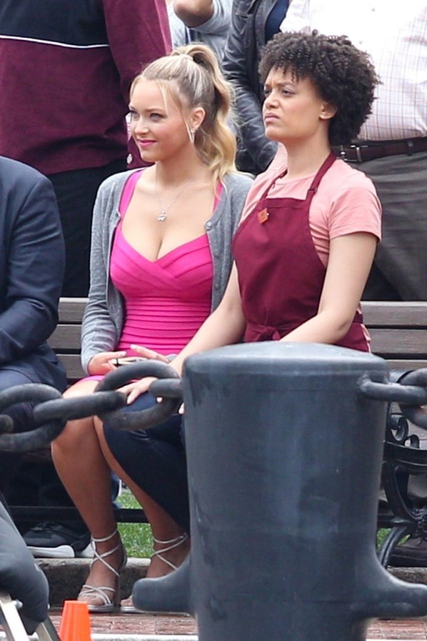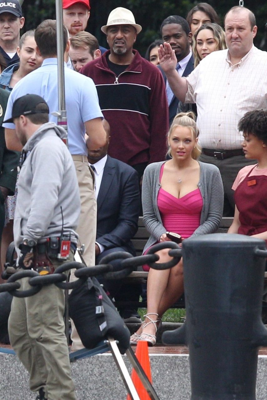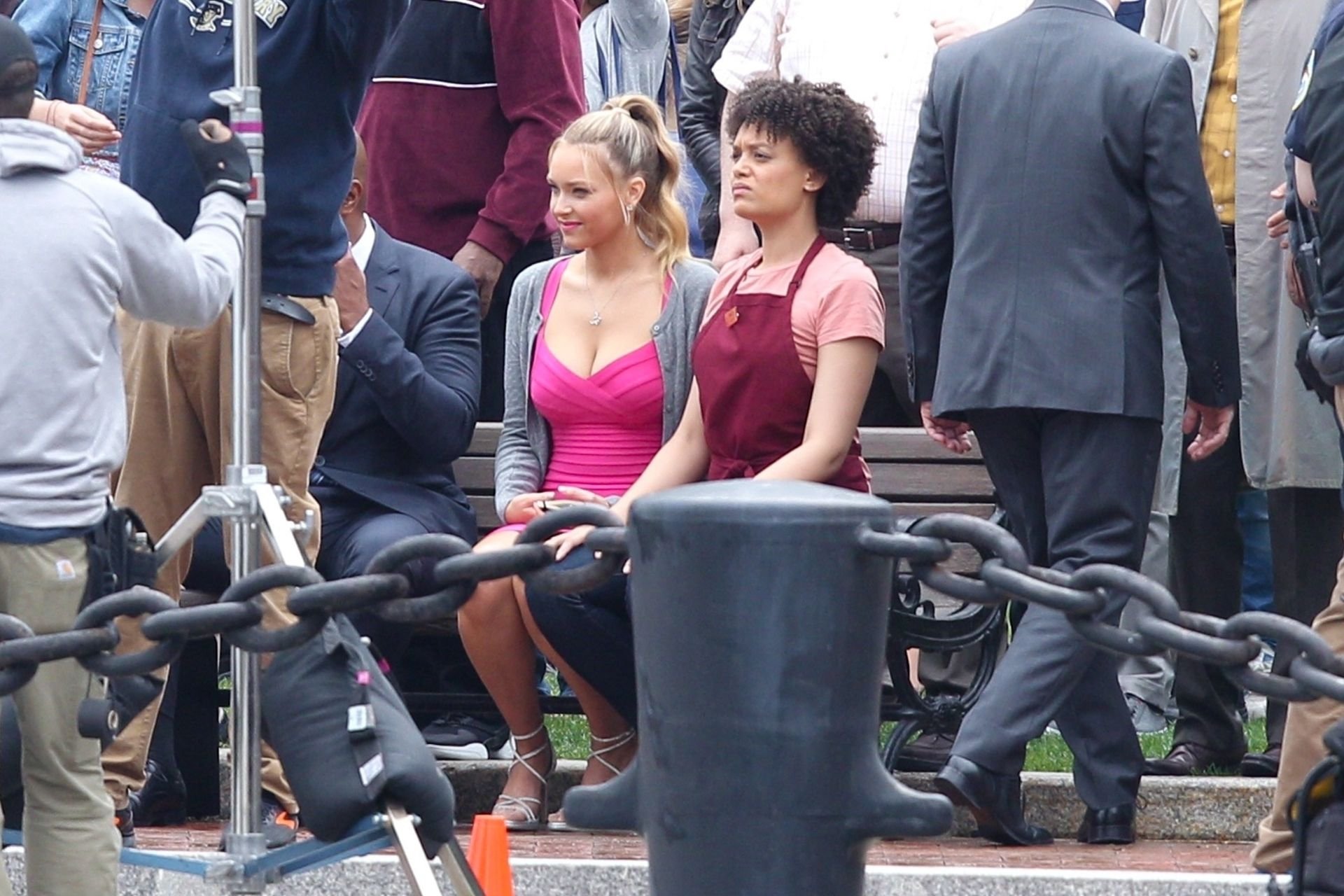 La couverture Sports Illustrated Swimsuit et petite amie de Rob Gronkowski, Camille Kostek, a fait une démonstration voluptueuse sur le plateau de “Free Guy” avec Ryan Reynolds à Boston, le 31/05/2019.
