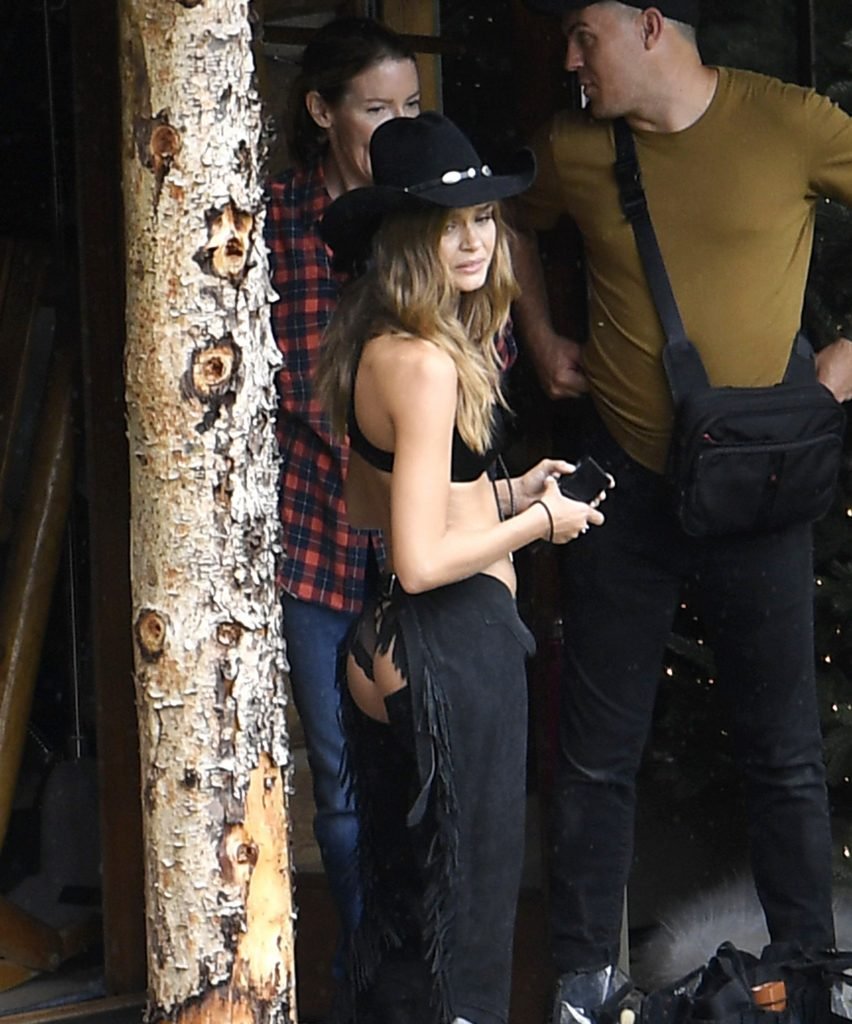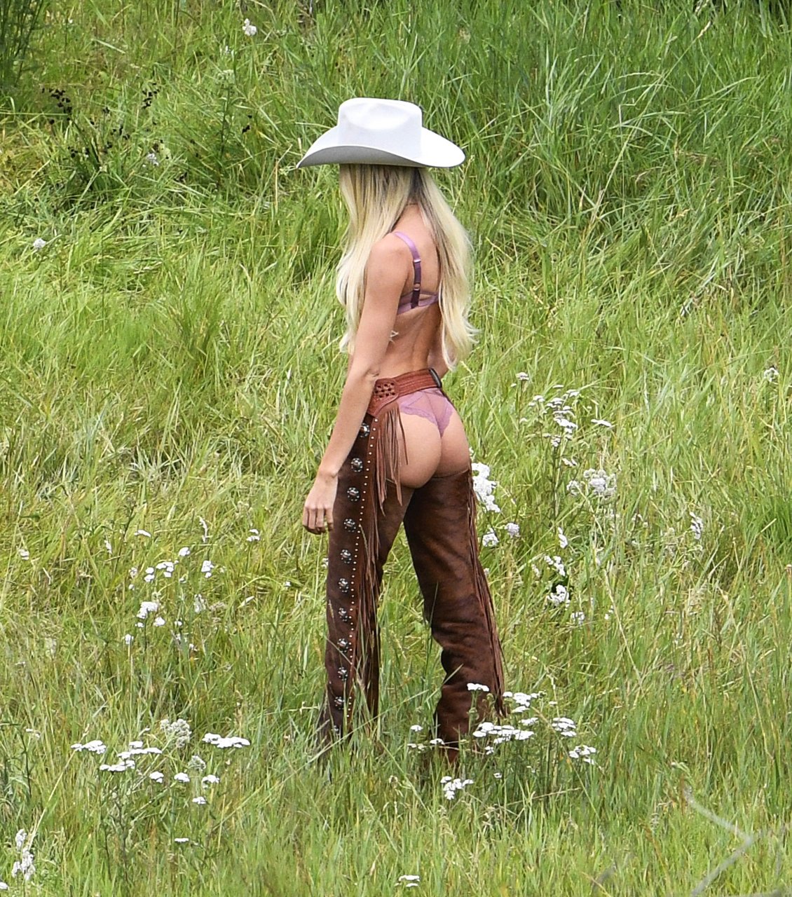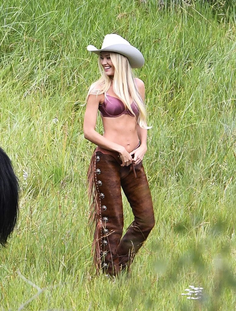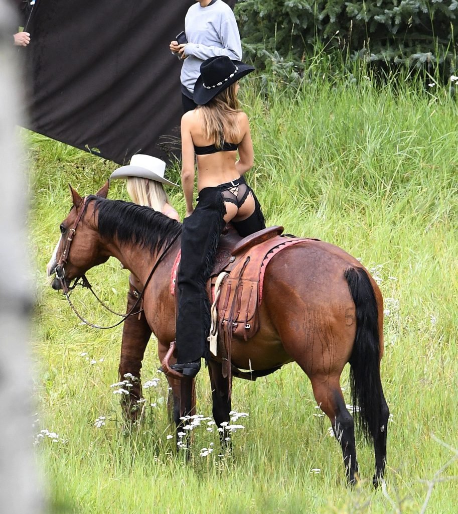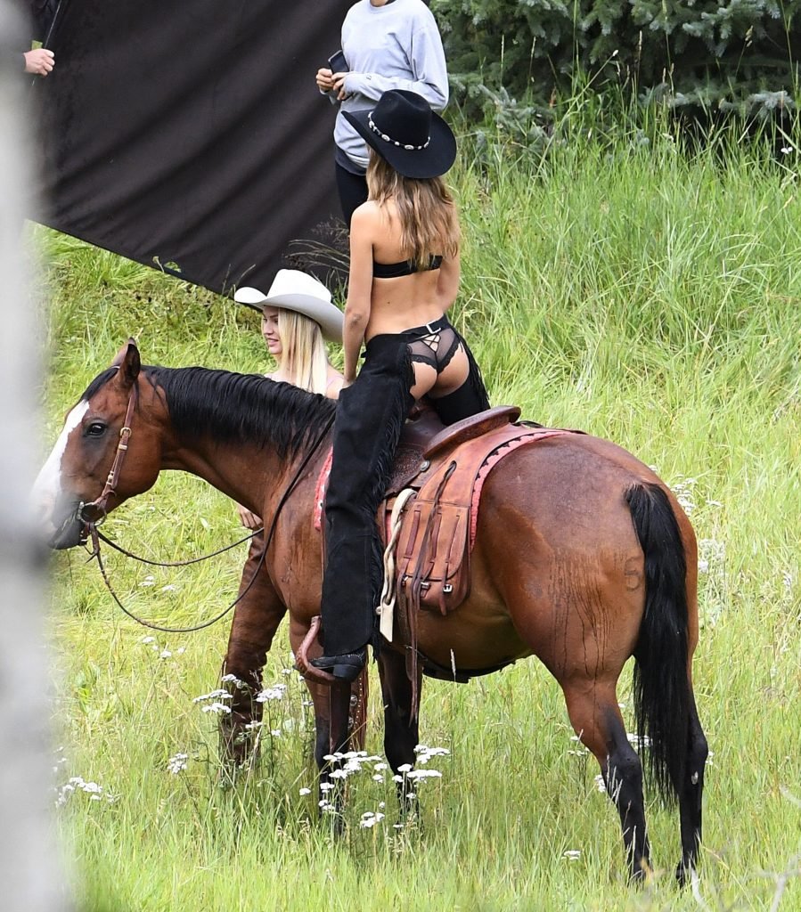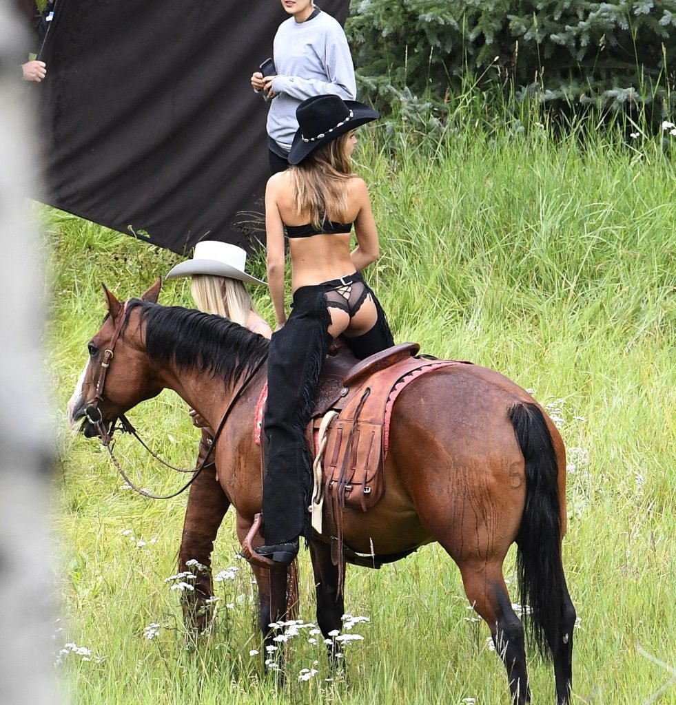 Supermodels Candice Swanepoel et Josephine Skriver ont été aperçues portant des tenues sexy de cow-boy lors du shooting pour le prochain catalogue de vacances de Victoria’s Secret à Aspen, le 15/08/2017.