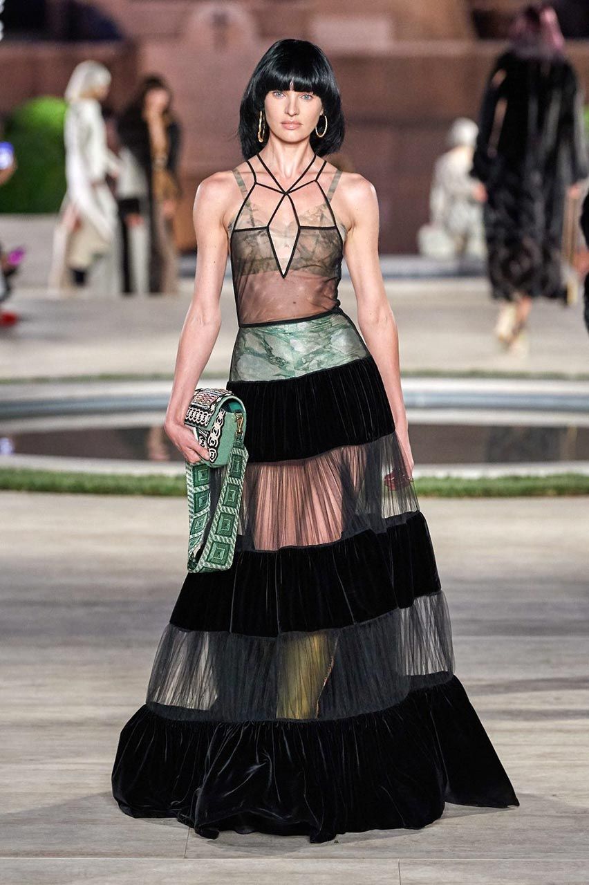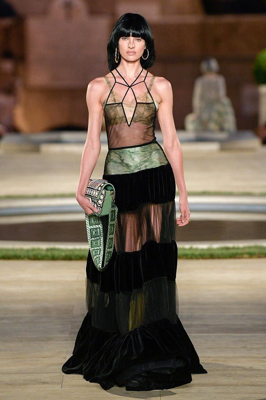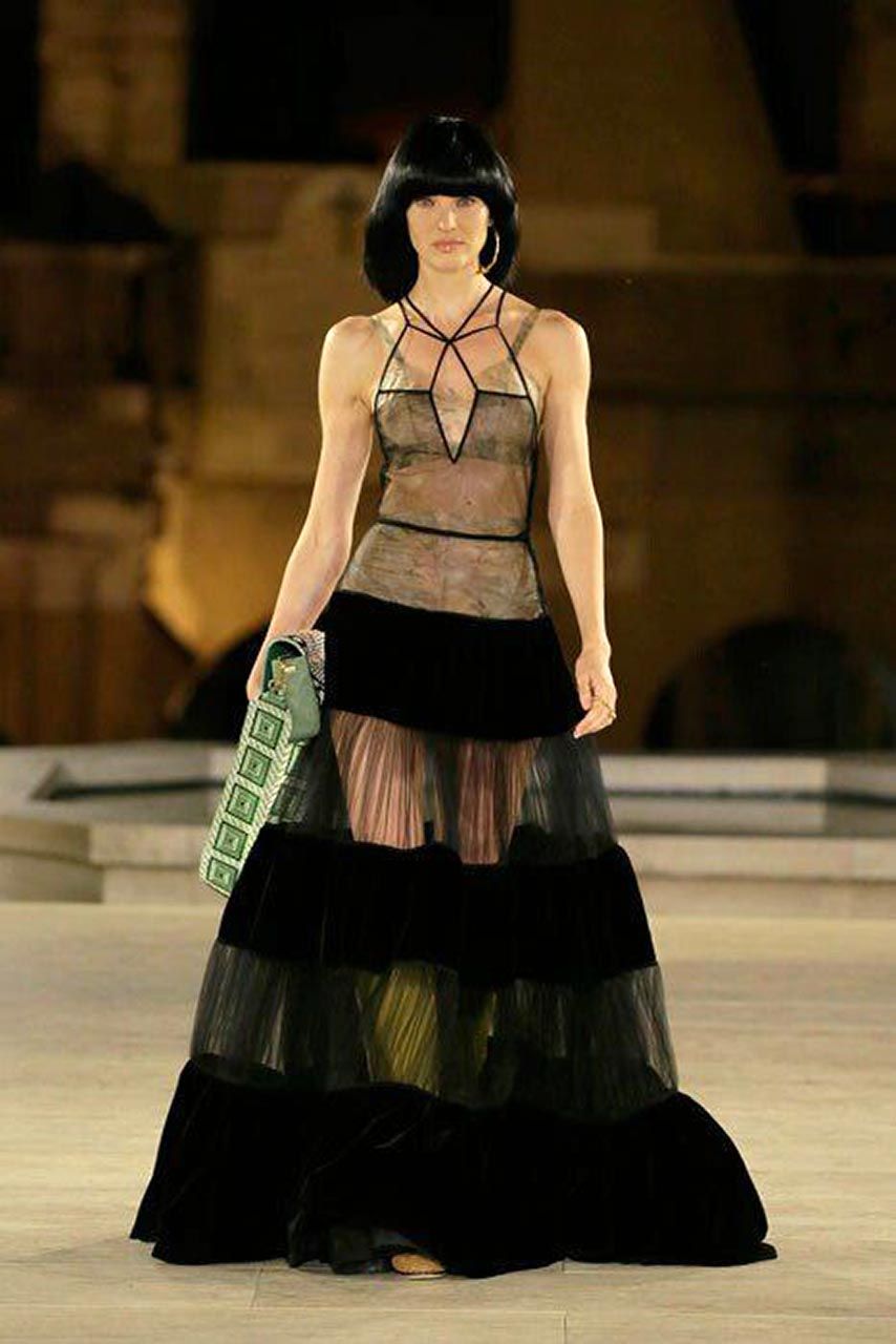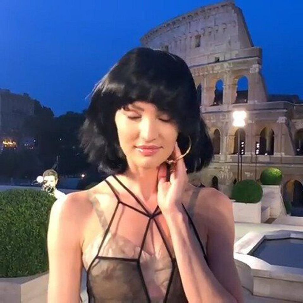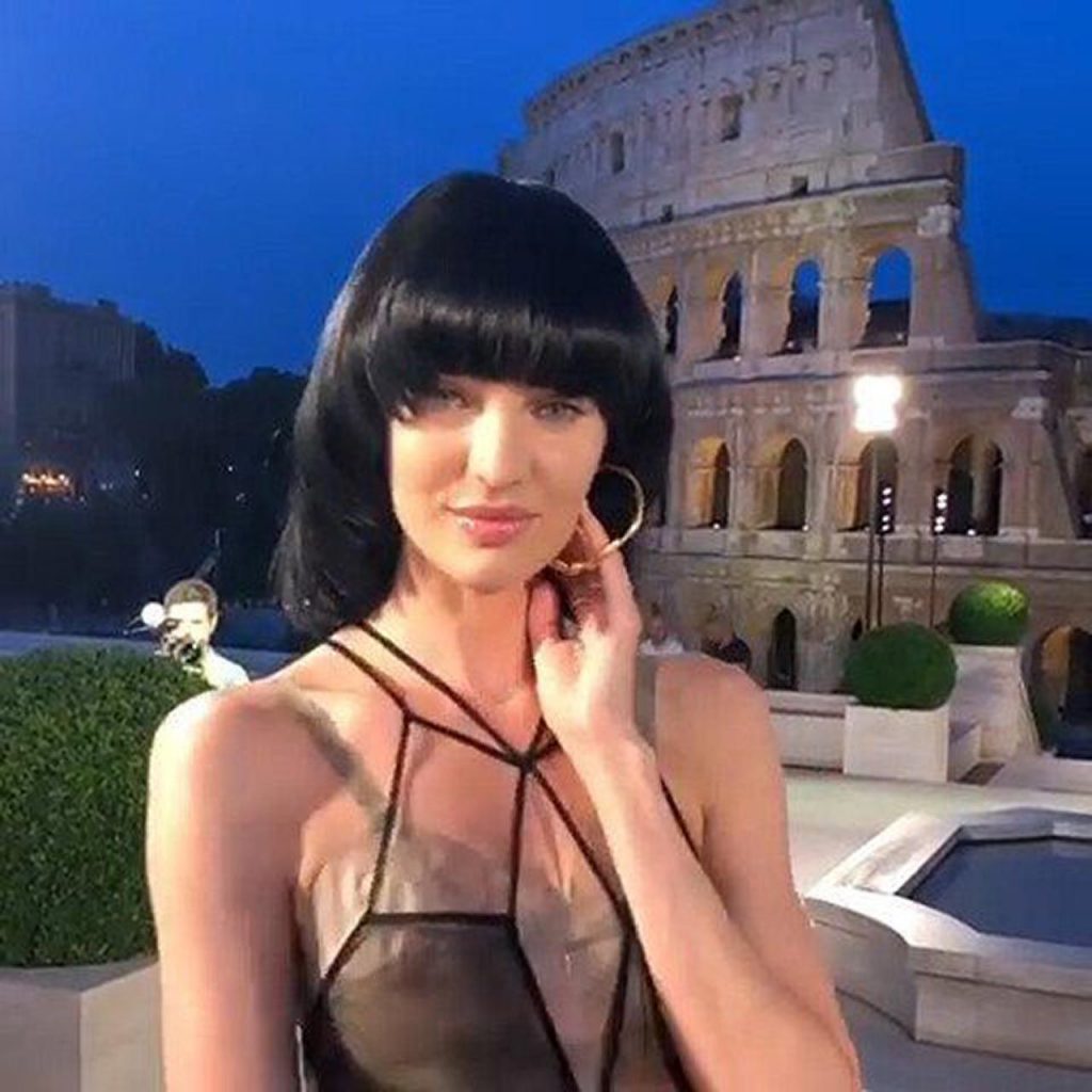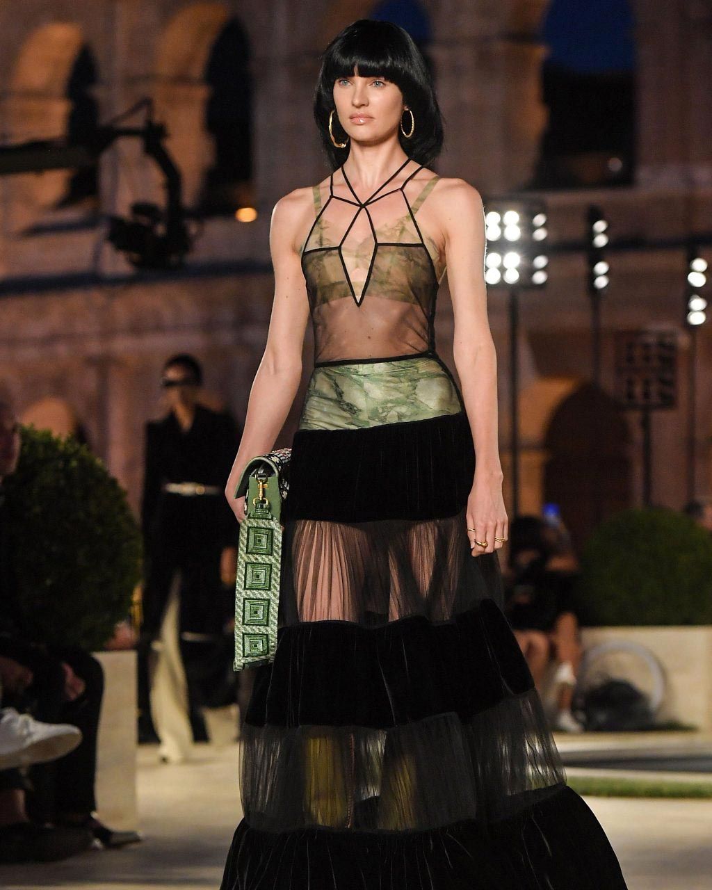 Check out the rare Candice Swanepoel see-through appearance from the runway! Candice was one of the models at the Fendi fashion show in Italy, and she looked like an alien! We like to see Swanepoel with her perfect blonde hair and hot blue eyes; this black wig doesn’t fit her! She wore a transparent dress, and we can see her small nipples here!
