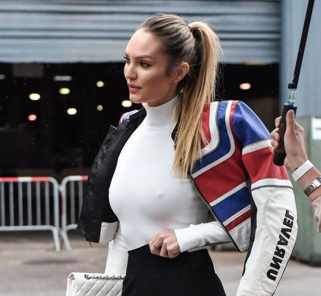 Check out how Candice Swanepoel’s braless appearance at the New York Fashion Week went on Brandon Maxwell Fashion Show! Candice had labor recently, and her tits are still full of milk; I know you’re a fan of big boobs spraying milk while you fuck them! Well, blonde Victoria’s Secret Angel knows that fact; she’s tickling our imagination with these nipple pokies!