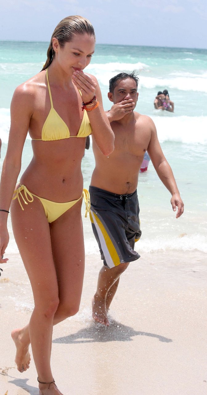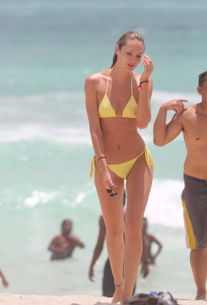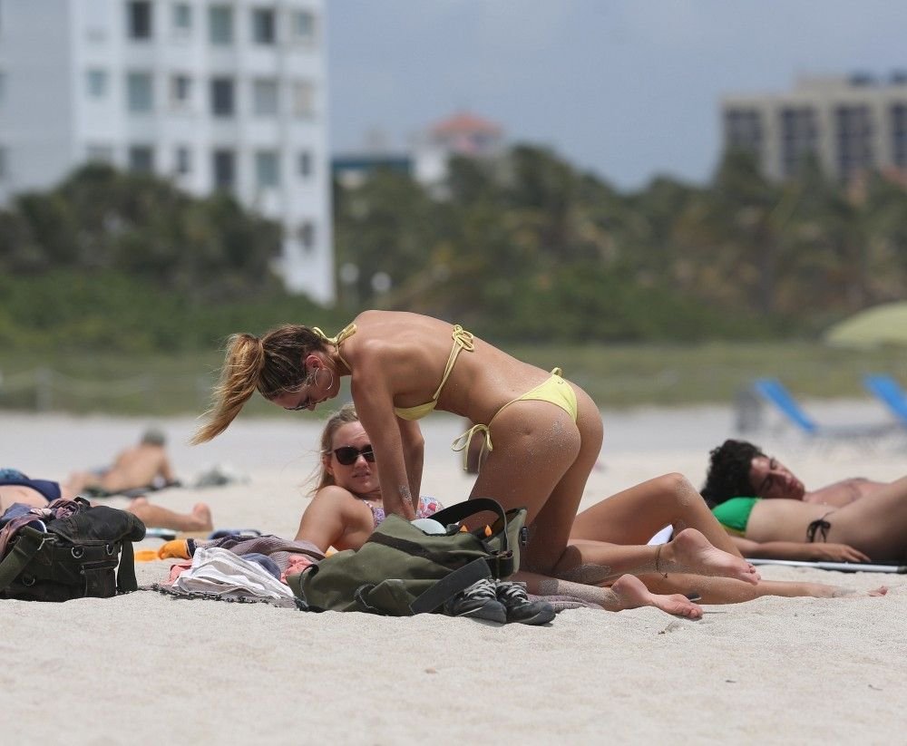 Candice Swanepoel porte un bikini sur la plage à Miami, 27/05/13. Super fessier ! Candice Swanepoel est un mannequin sud-africain. Âge – 27 ans (née le 20 octobre 1988). Taille – 177 cm.