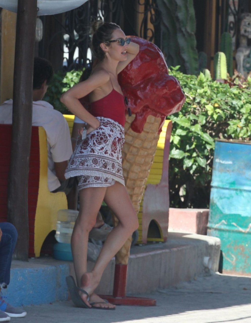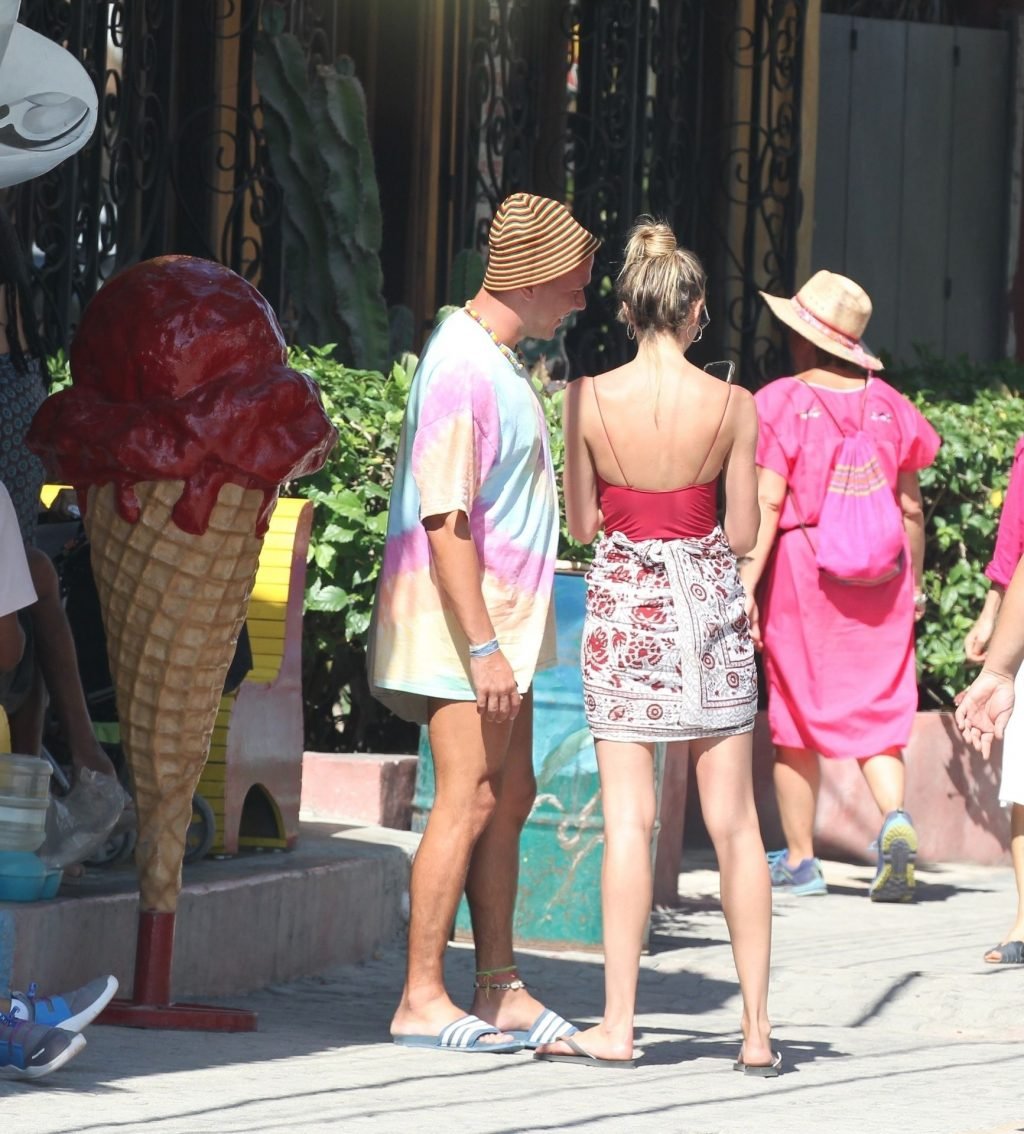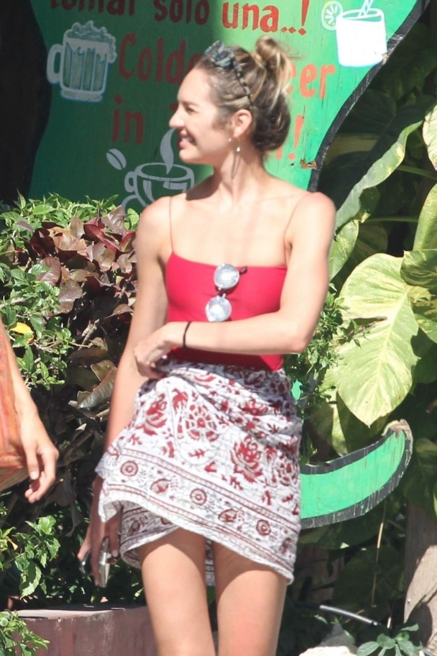 Mannequin sud-africaine de Victoria’s Secret, Candice Swanepoel est accompagnée d’amis pour une promenade à Tulum, le 27/03/2019. Candice, qui porte une jupe de plage jacquard rouge et blanche, marche aux côtés de ses amis tandis que le groupe explore le continent.
