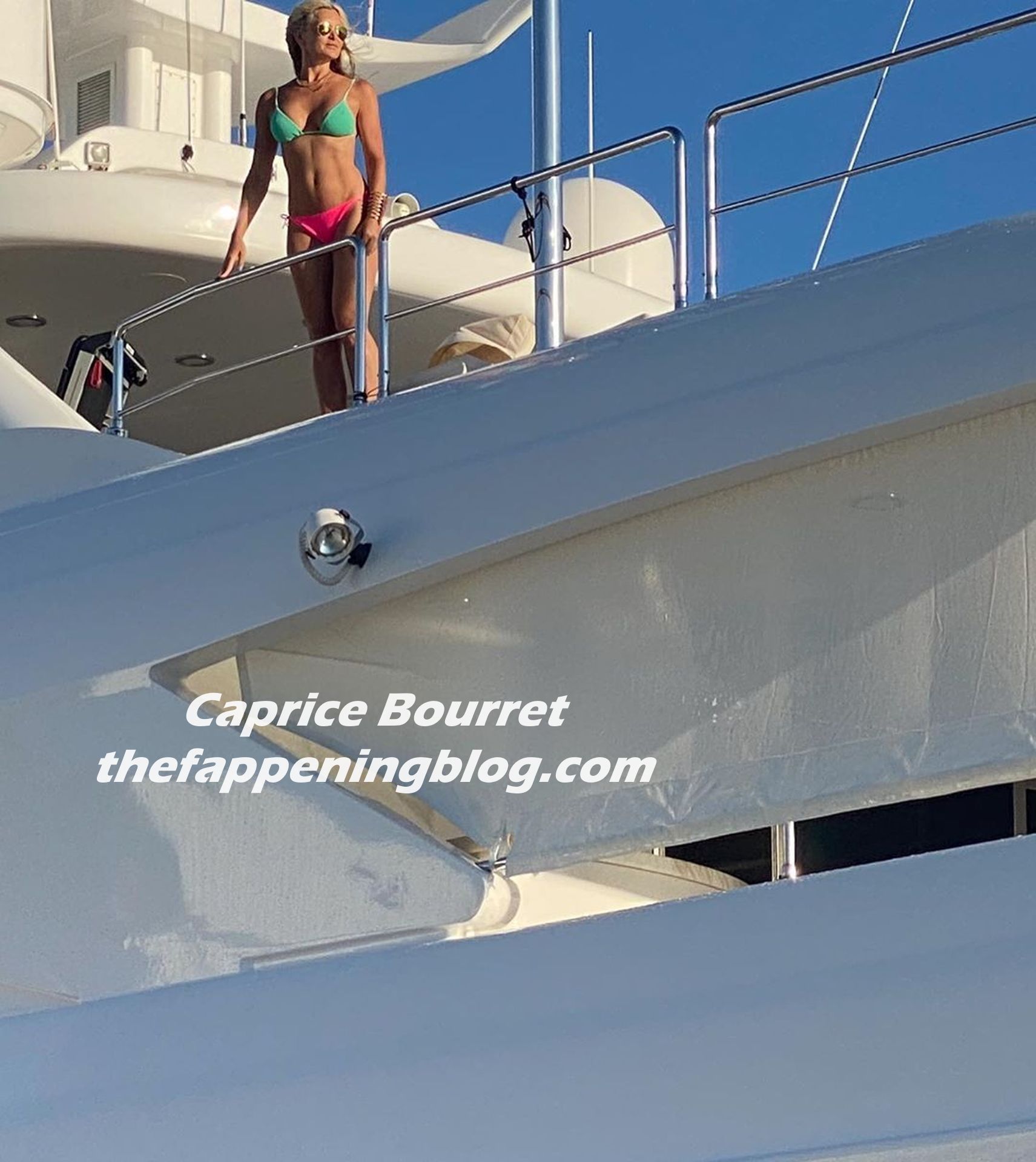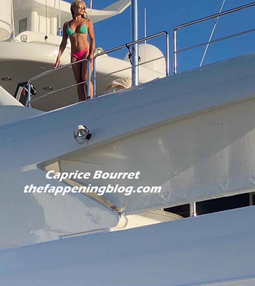 Le mannequin Caprice Bourret est éblouissante, exhibant sa silhouette de plage sous une chaleur accablante en naviguant sur son yacht et portant divers bikinis sexy et très légers dans les îles grecques, 14/08/2020.