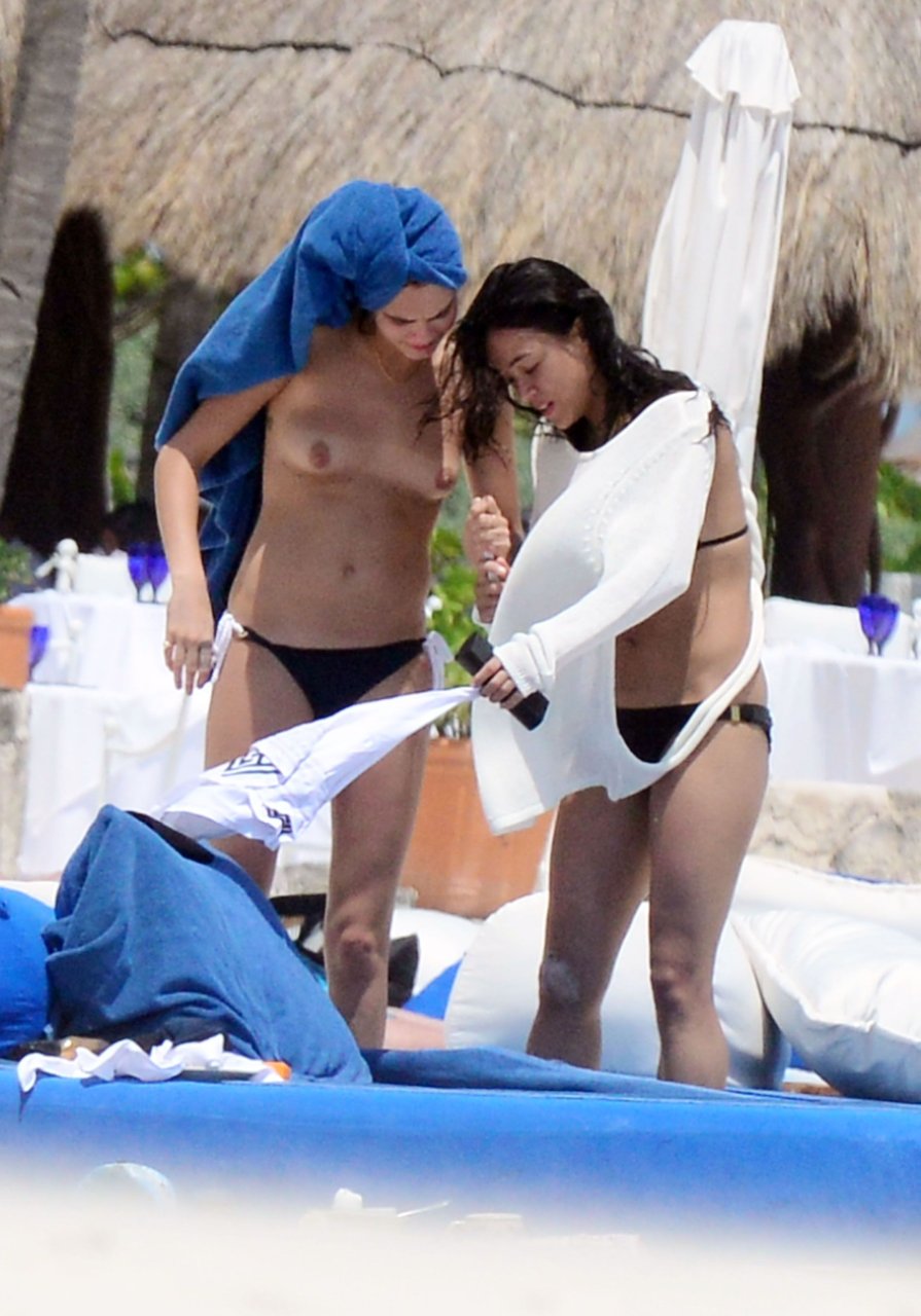 Michelle Rodriguez et Cara Delevingne se câlinent sur la plage, 28/03/2014