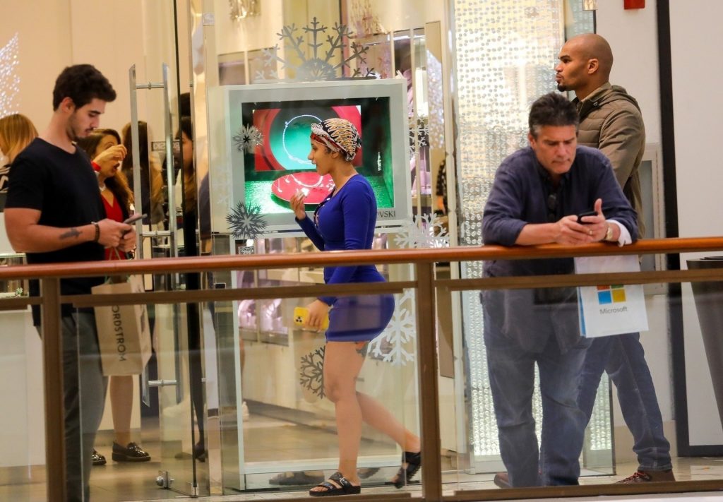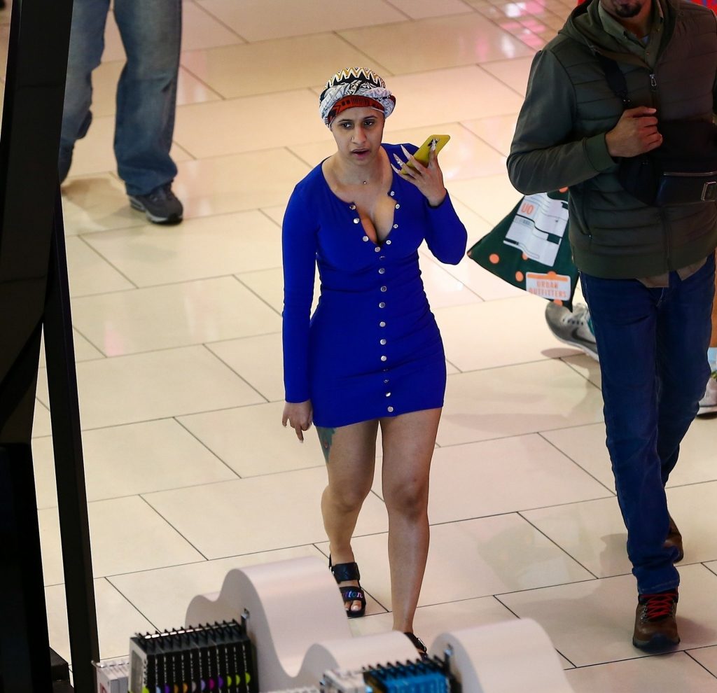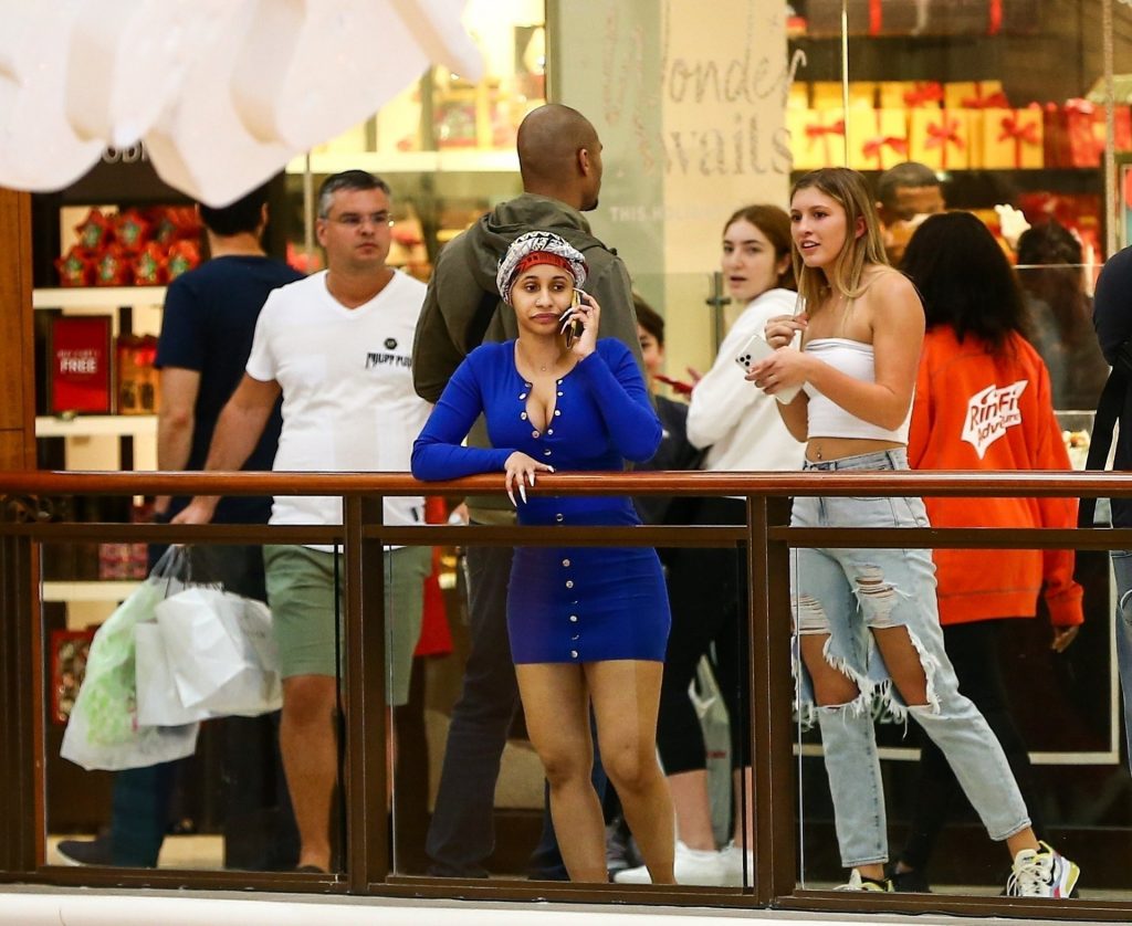 Cardi B attire une foule alors qu’elle se rend au centre commercial Aventura à Miami pour faire du shopping lors du dernier week-end avant Noël, le 22/12/2019. La rappeuse et chanteuse a opté pour un look discret sans maquillage et les cheveux enroulés dans un simple foulard, bien qu’elle ait mis en valeur ses courbes dans une mini robe bleue courte avec un décolleté plongeant.
