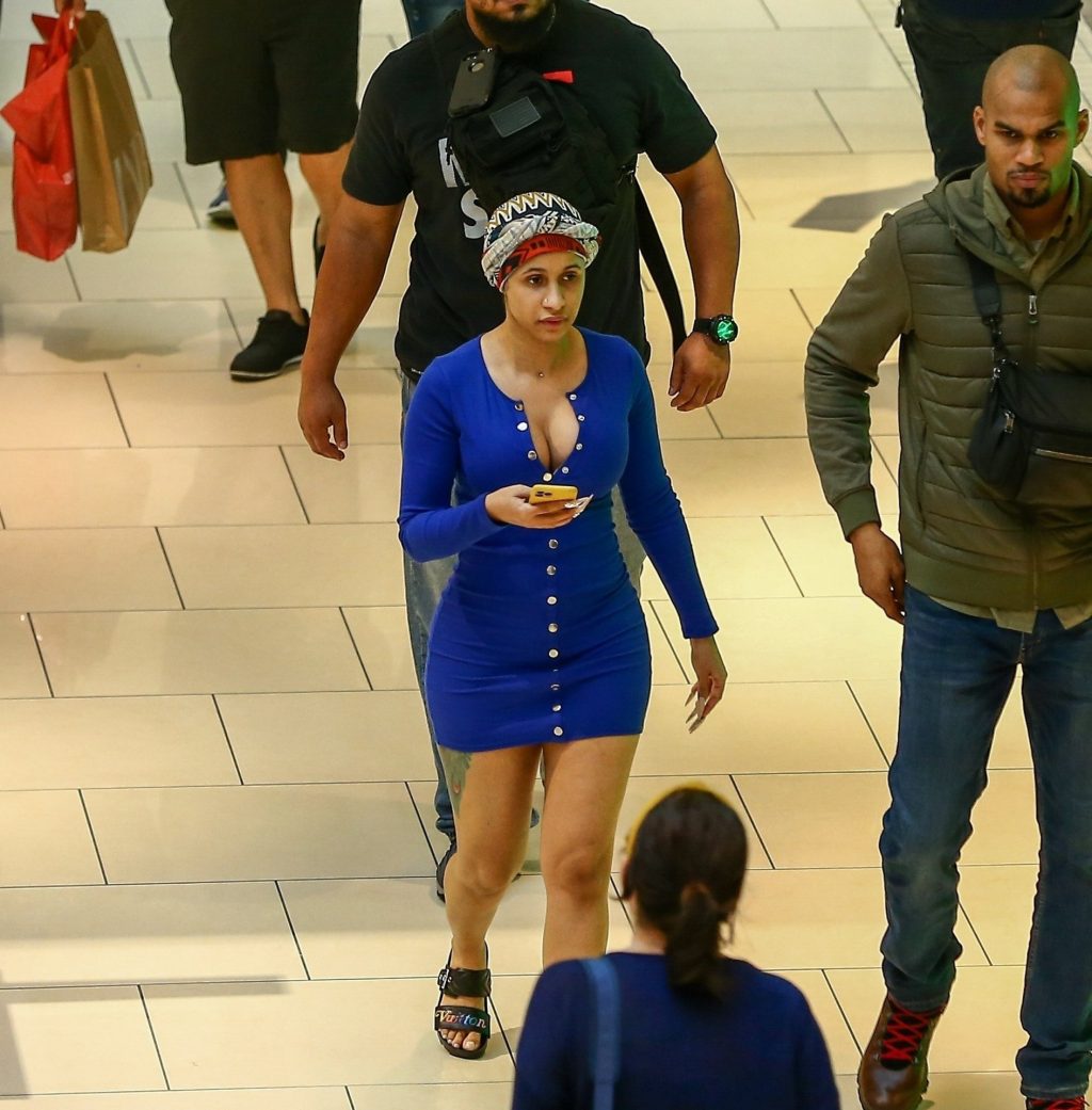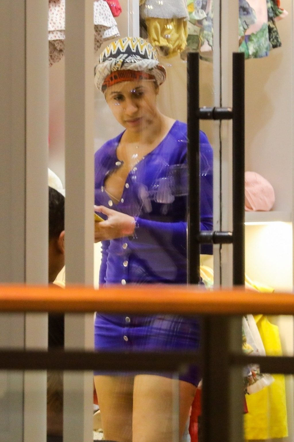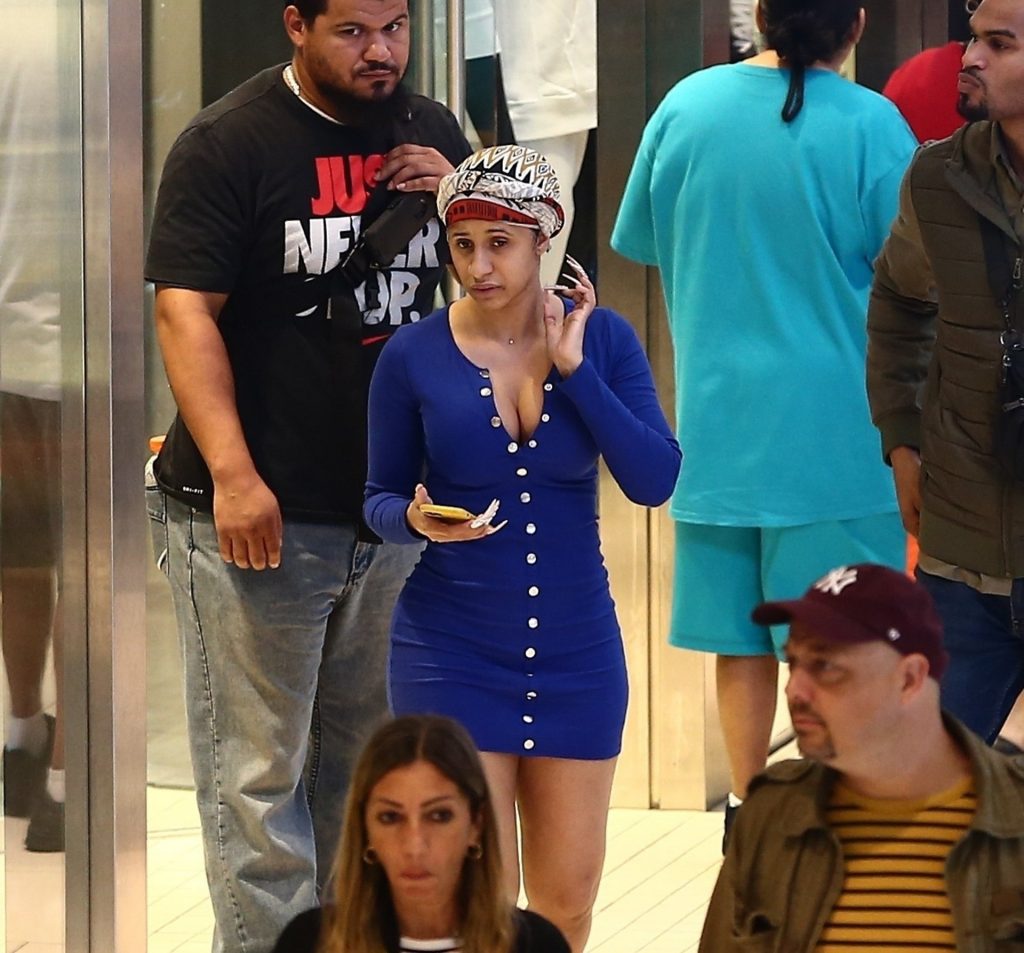 Cardi a fait plusieurs arrêts, notamment chez Louis Vuitton, Ferrari, Foot Locker, Gucci, un magasin de vêtements pour bébés et une boulangerie, attirant des foules de spectateurs espérant l’apercevoir. Pendant ses achats, la rappeuse a également été vue en train de parler au téléphone portable, escortée par sa sécurité.