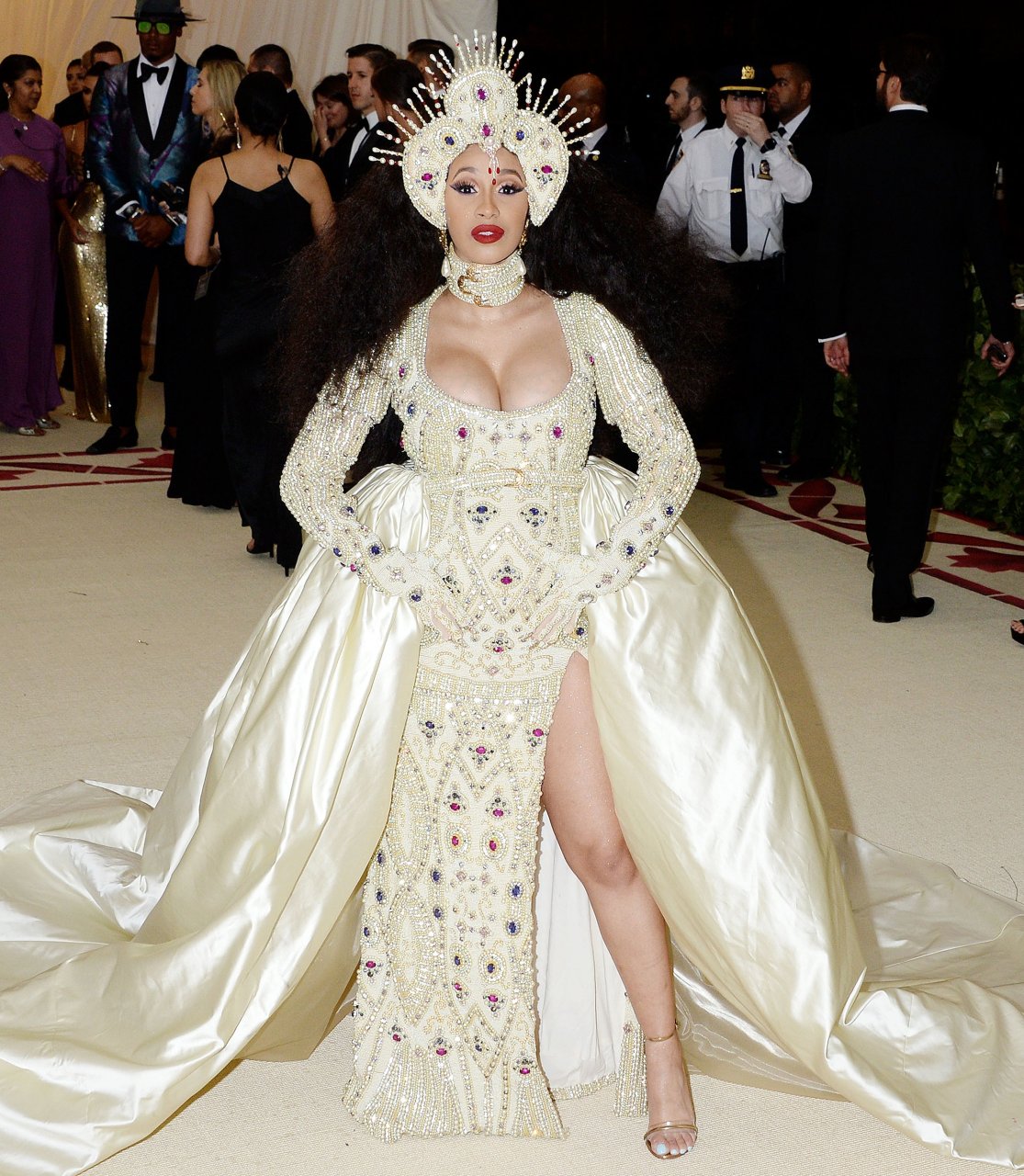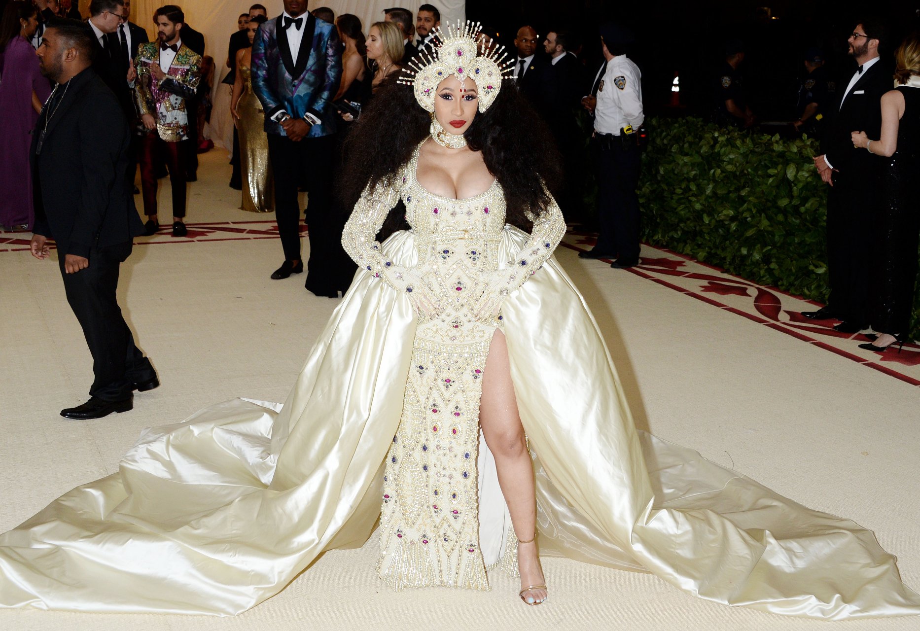 Cardi B exhibe ses gros seins au Gala du Costume Institute du MET à New York, 07/05/2018. Belcalis Almanzar est une rappeuse américaine et une star des réseaux sociaux. Âge : 25 ans.
