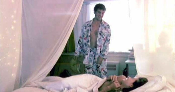 The next two scenes are from a movie called “Various Positions“. And in this scene, we see Carly Pope as she’s lying on a bed! She kisses a man and has sex with him when he is topless and then arches her back when he goes down on her, giving us a good peek at her breasts before being seen riding him on top while they have more fun.