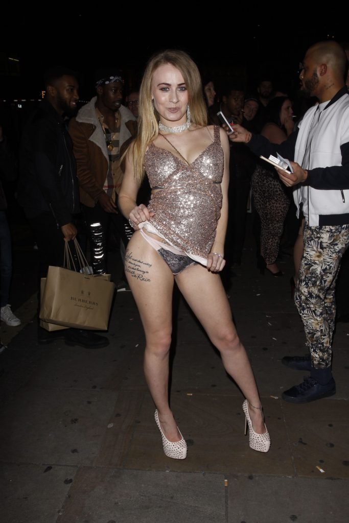 Carmel Anderson montre ses fesses et sa poitrine alors qu’elle assiste aux Paul Raymond Awards 2017 au Cafe de Paris à Londres, le 11/09/2017. Carmel Anderson est une actrice pornographique.