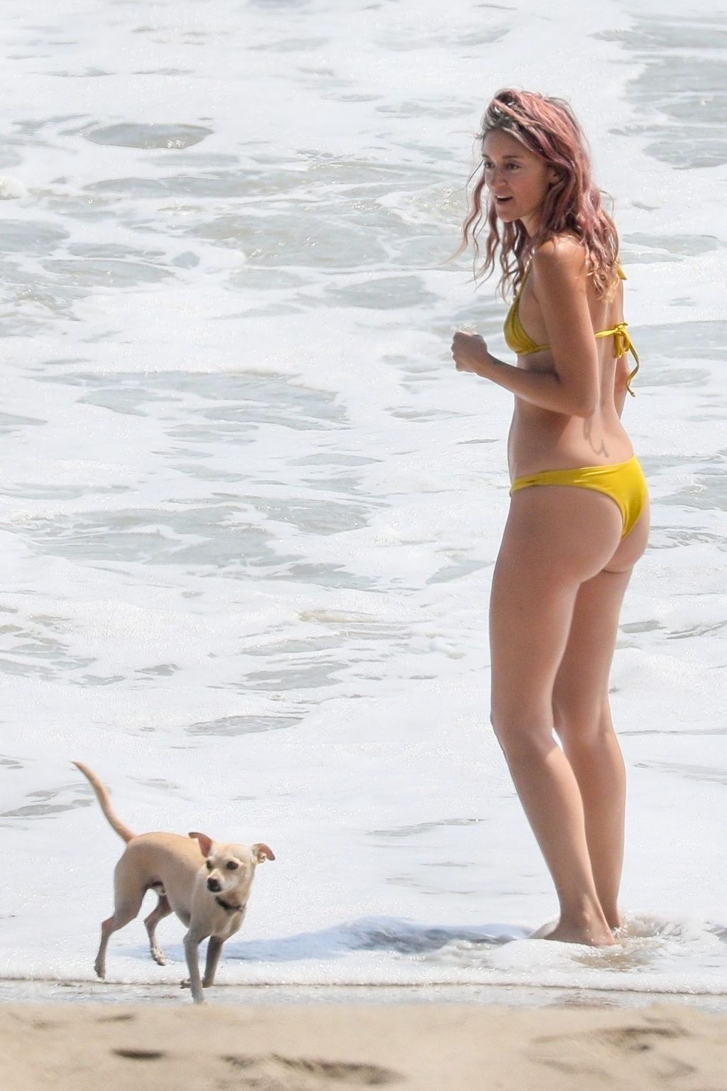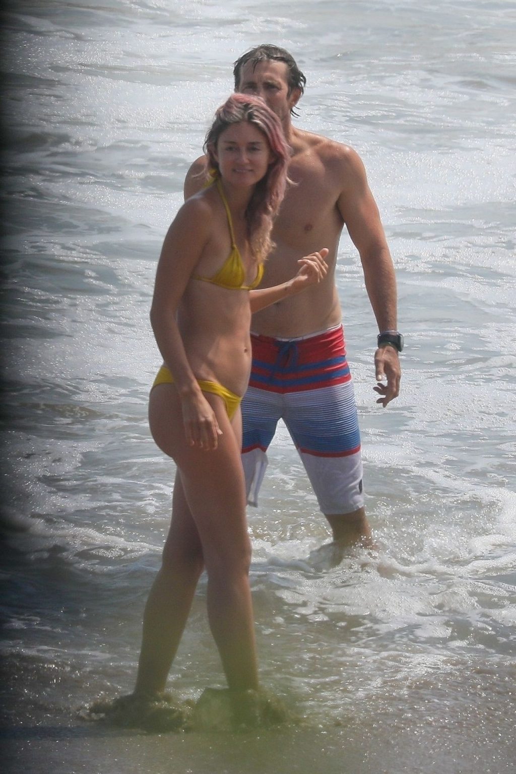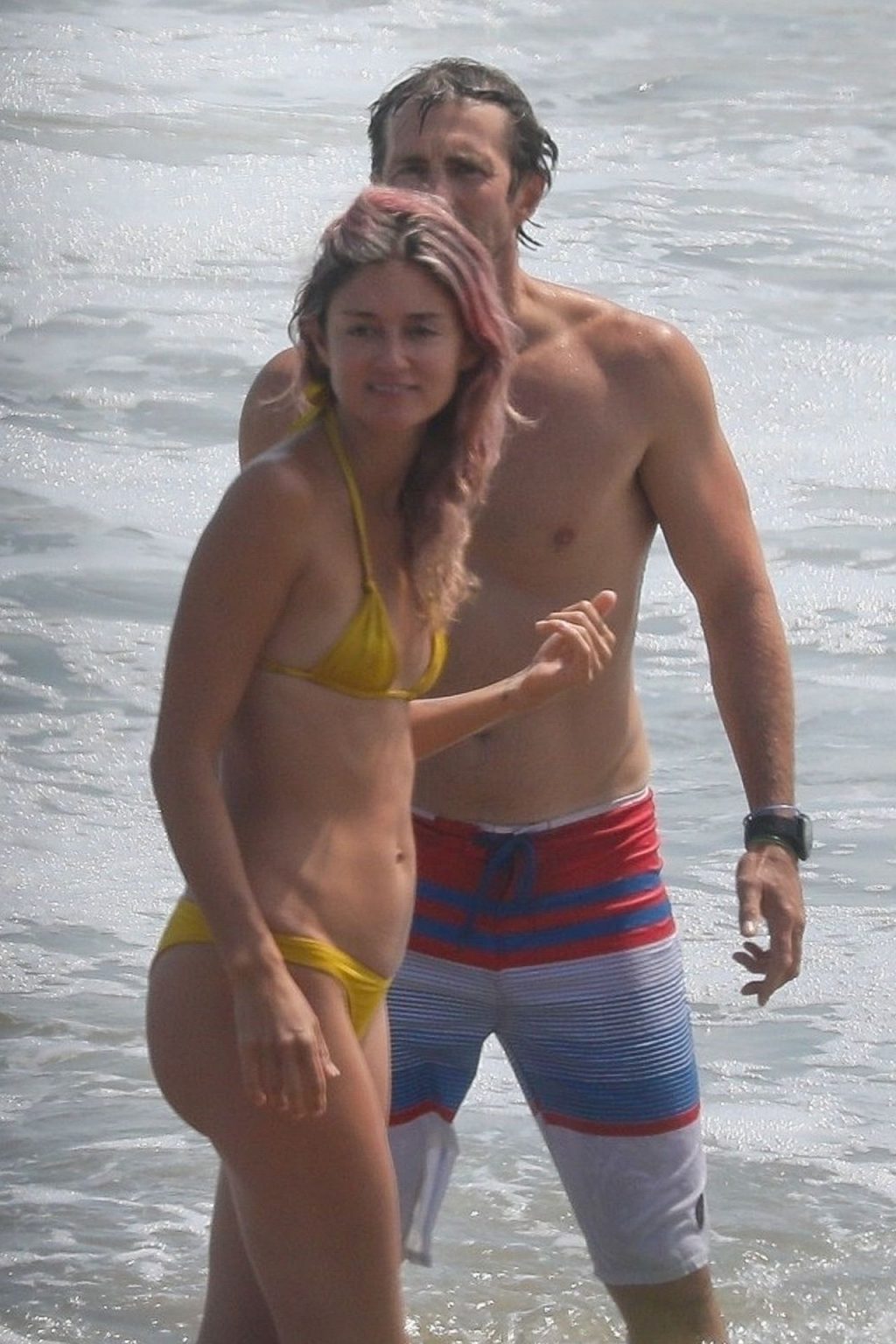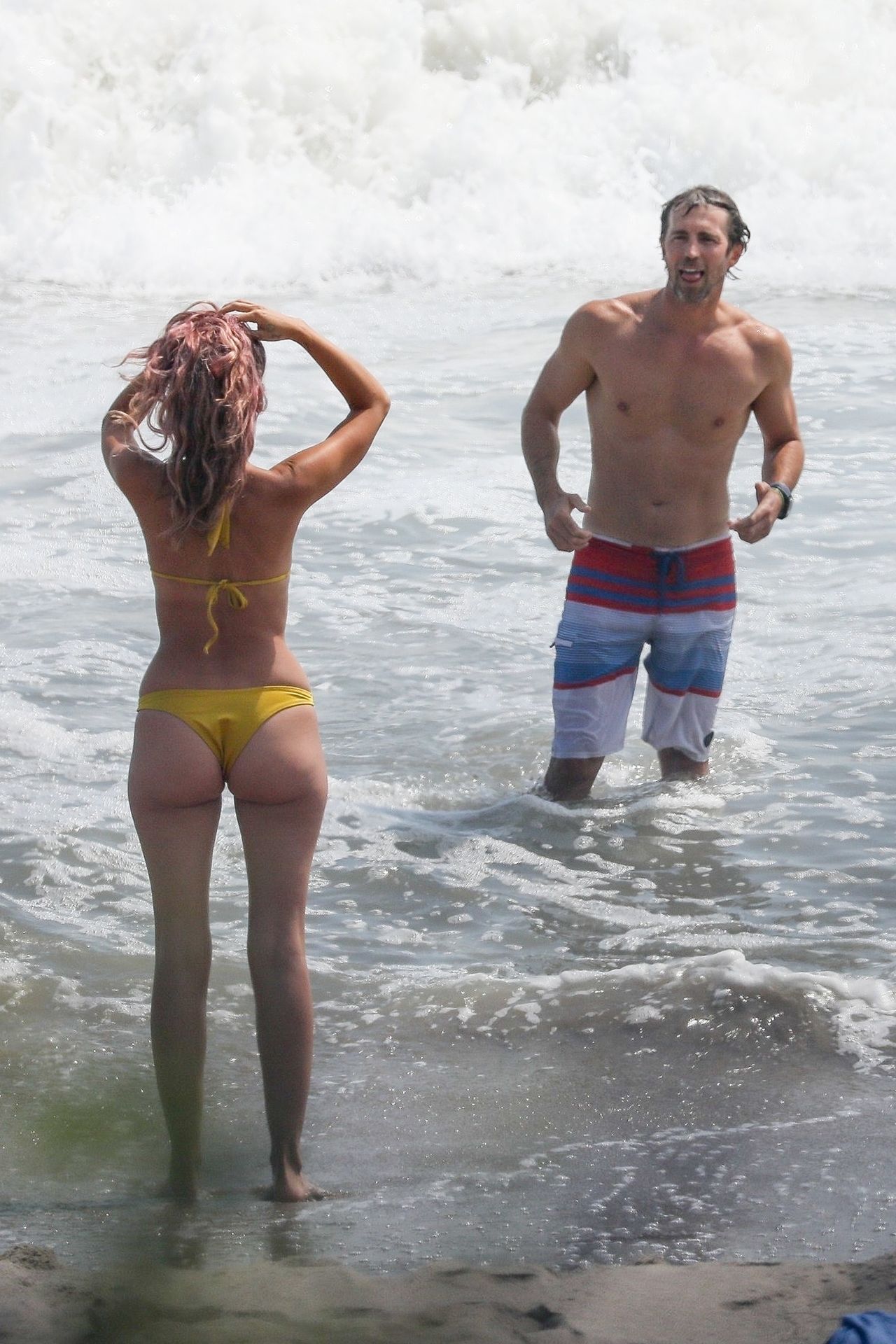 L’entrepreneuse américaine, actrice, mannequin et DJ Caroline D’Amore et son mari Bobby Alt partagent un peu de tendresse devant notre caméra tout en profitant d’une journée à la plage à Malibu cet après-midi (août 2020).
