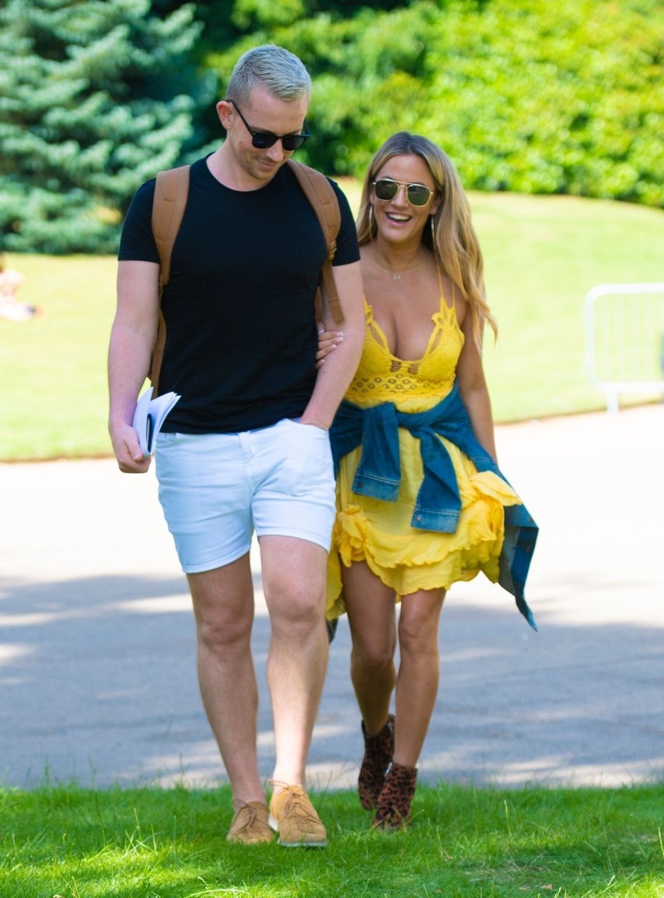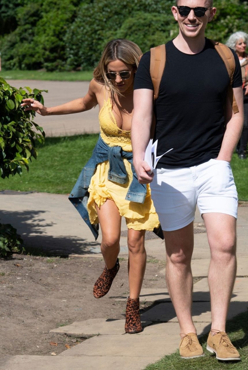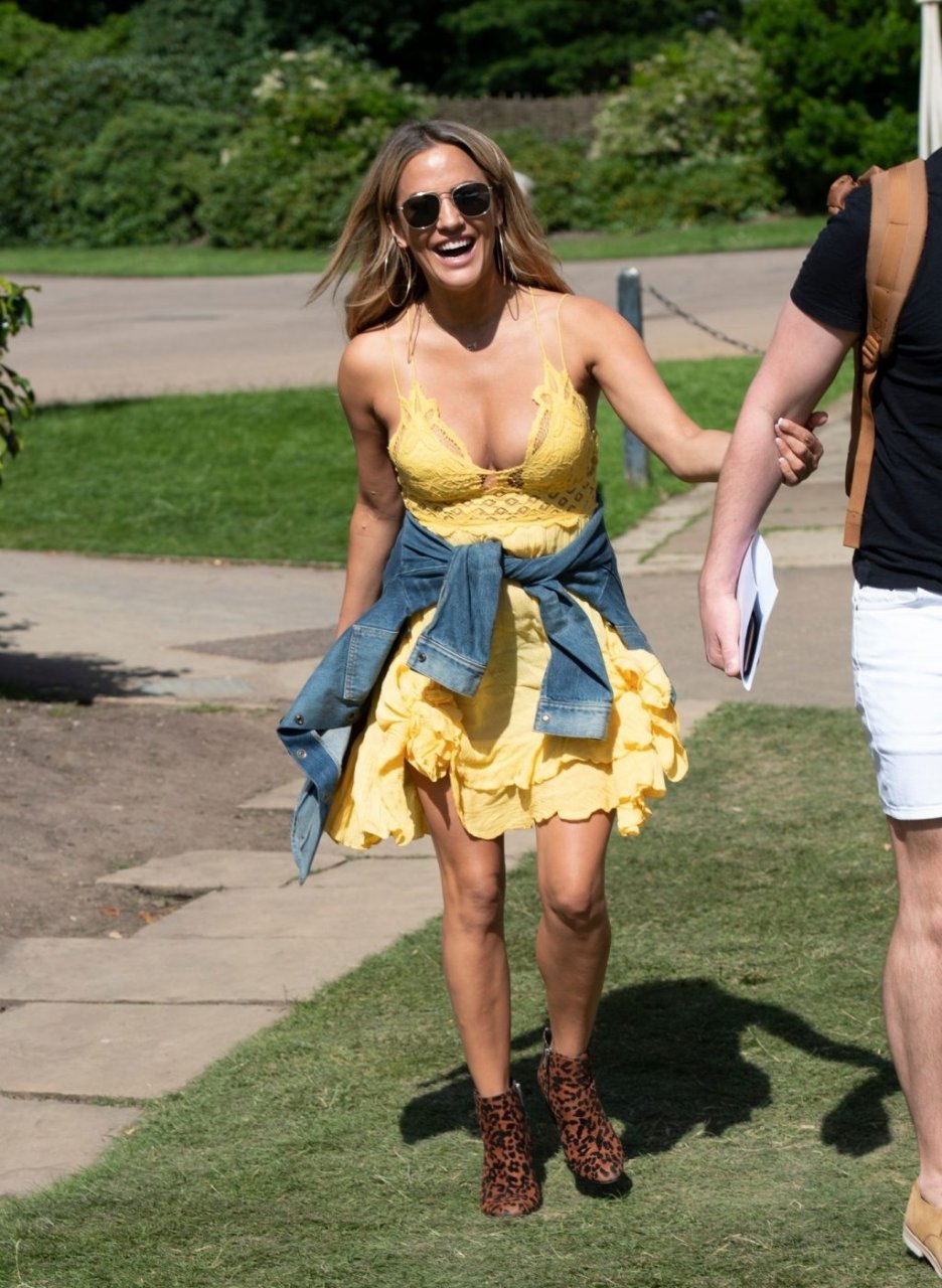 La présentatrice de télévision Caroline Flack a été photographiée lors d’un festival house vêtue d’une tenue jaune très légère à Londres, le 07/04/2019.