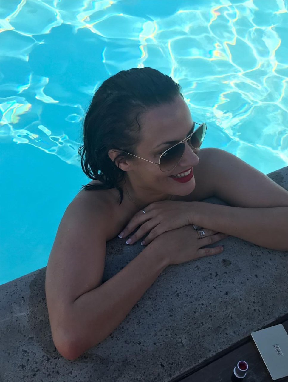 Voici deux photos topless (couverte) de Caroline Flack provenant d’Instagram, 14/11/2017. Caroline Flack est une animatrice de télévision et de radio anglaise, mannequin. Âge : 38 ans.