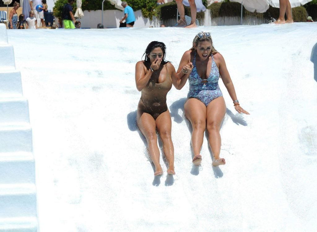 Les stars de la télévision Casey Batchelor et Frankie Essex profitent de leurs vacances à la piscine en Espagne, 18/09/2017.