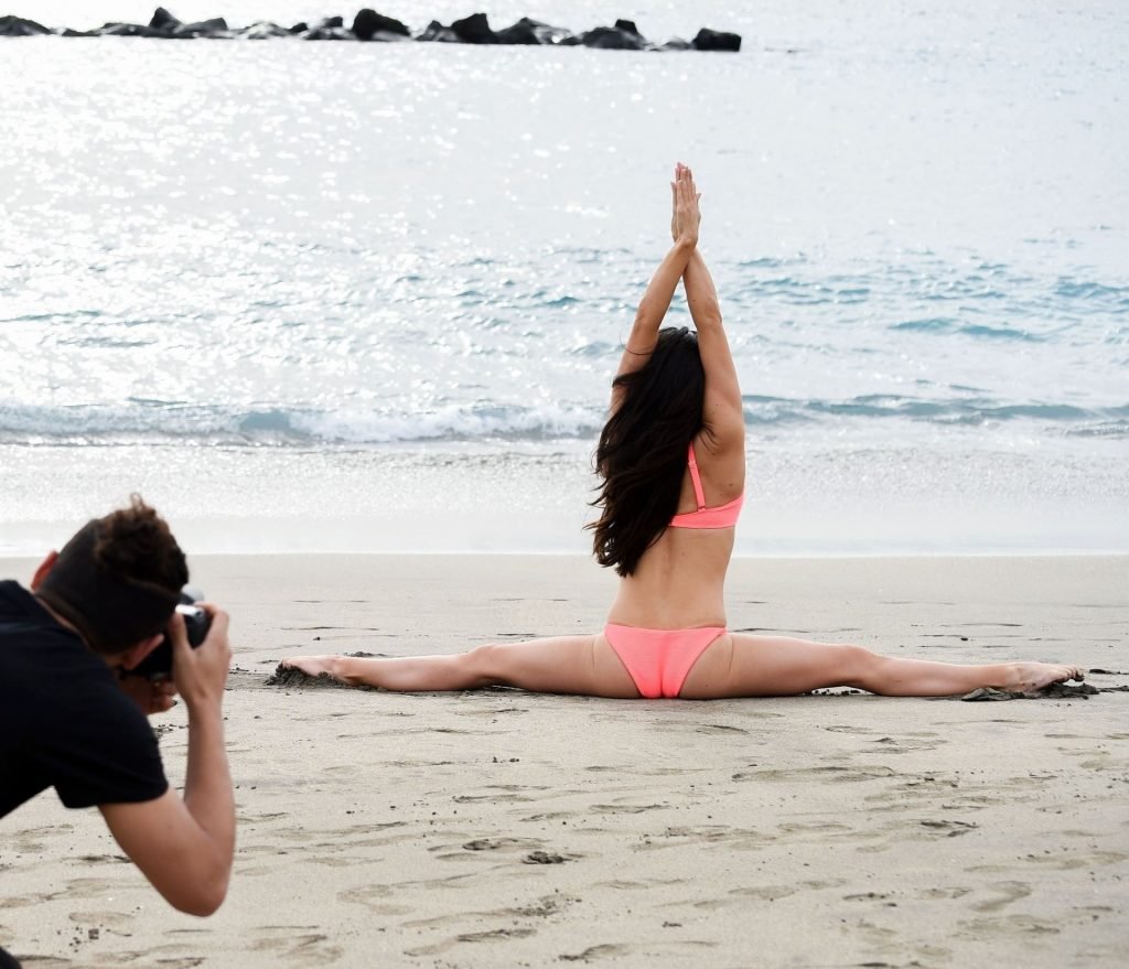 “Celebrity Big Brother” star Casey Batchelor a été vue en train de filmer son application Yoga Blitz à Tenerife, le 01/01/2019.