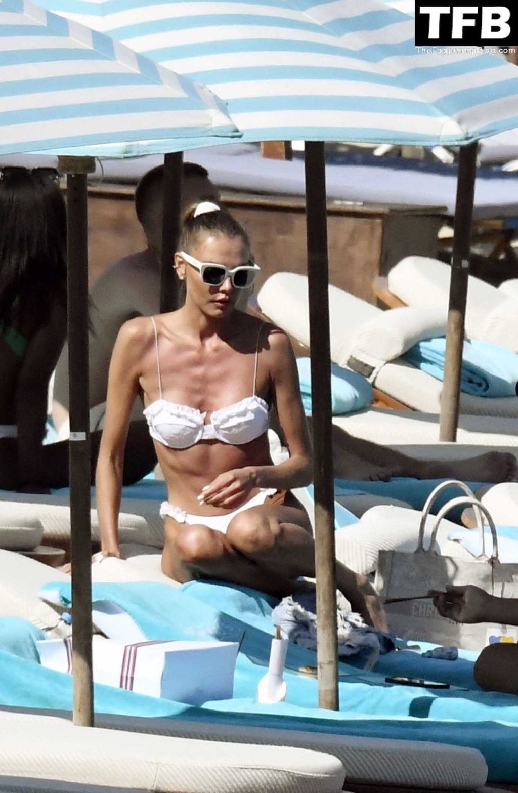 Malgré les difficultés dans son pays natal en Ukraine, le top modèle ukrainien Alina Baikova parvient à se détendre sous le soleil grec vêtue d’un tout petit bikini blanc et de lunettes de soleil blanches, mettant en valeur son corps de mannequin sur la plage, 16/06/2022.