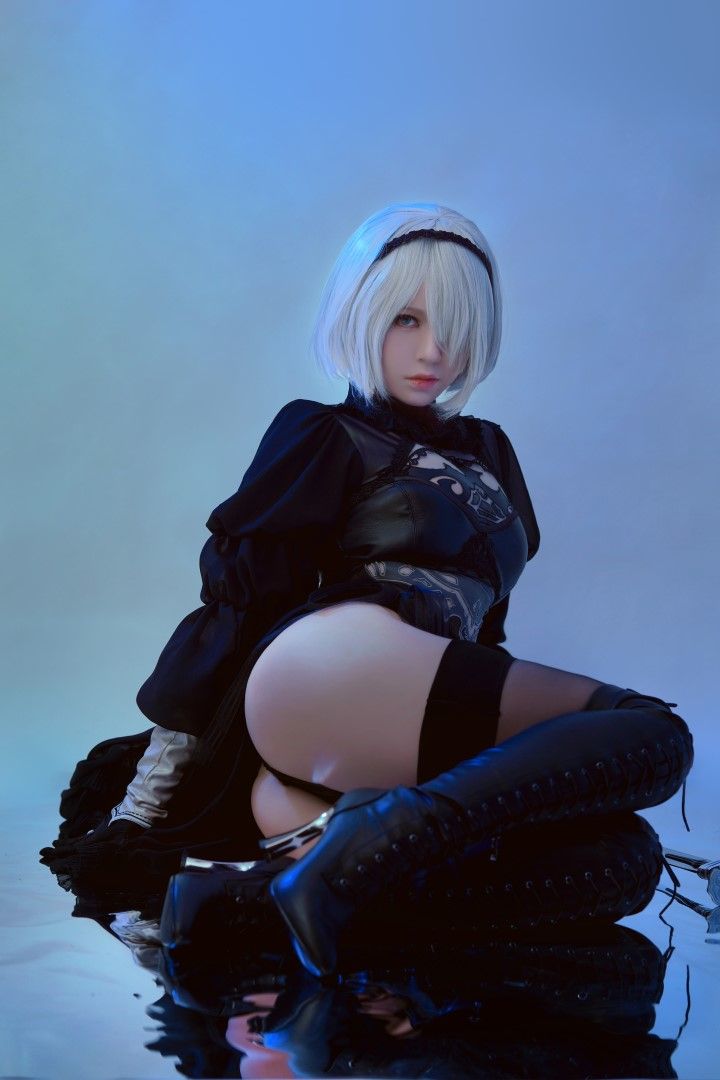 Modèle sexy Banbanko présente son nouveau cosplay Automata 2B (2020). La jeune beauté a montré son petit cul sexy dans un magnifique costume.