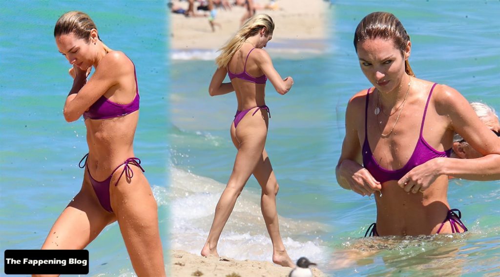 Candice Swanepoel exhibe sa silhouette tonique dans un bikini violet presque invisible lors d’une escapade à Miami avec ses parents vendredi.
