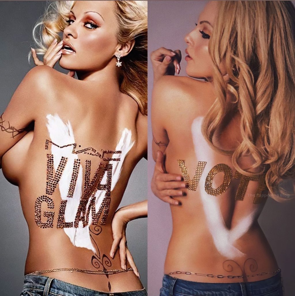 L’actrice Elizabeth Gillies pose seins nus comme Pamela Anderson dans une nouvelle séance photo sur les réseaux sociaux pour inciter les fans à voter, montrant son petit côté de sein et le texte “Vote” sur son dos, 31/10/2020.