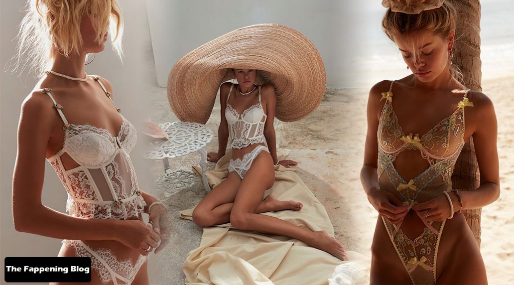 Le mannequin Frida Aasen pose en lingerie dans une nouvelle séance photo sexy pour la campagne For Love & Lemons Victoria’s Secret Printemps 2022.