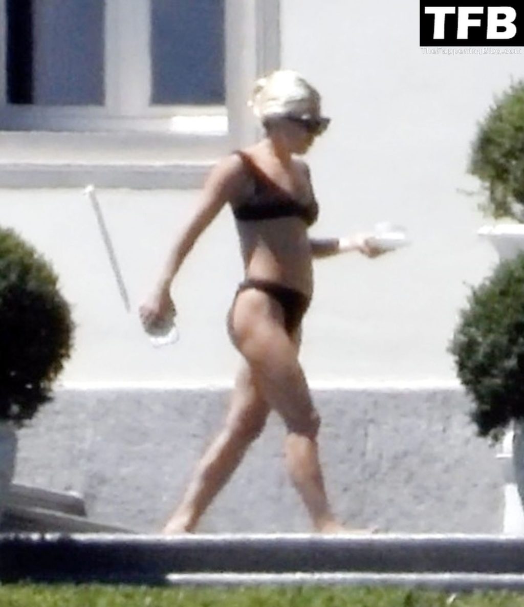 La chanteuse, auteure-compositrice et actrice américaine Lady Gaga, qui a été engagée pour se produire en cadeau surprise (un cadeau d’une valeur de 500 000 €) par l’un des invités au mariage du milliardaire magnat des fonds spéculatifs et donateur Tory Alan Howard, est photographiée en train de prendre son petit-déjeuner à la Villa Bonomi avec son petit ami, entrepreneur et investisseur Michael Polansky, le 25/06/2022.