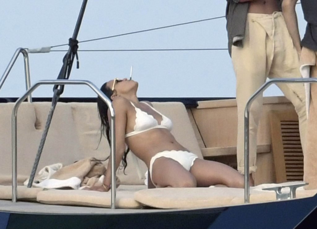 L’actrice bisexuelle Michelle Rodriguez (40 ans) a été aperçue portant un bikini blanc sur un yacht à Porto Cervo, en Italie, le 08/10/2018.