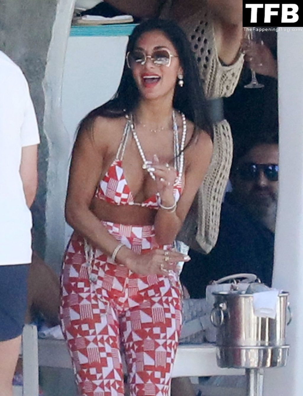 La star du Fappening Nicole Scherzinger est vue à Mykonos en train de s’amuser lors de ses célébrations de son 44e anniversaire dans une fête au bar de plage, entourée d’amis et d’admirateurs, dont son petit ami Thom Evans et Caroline Stanbury.