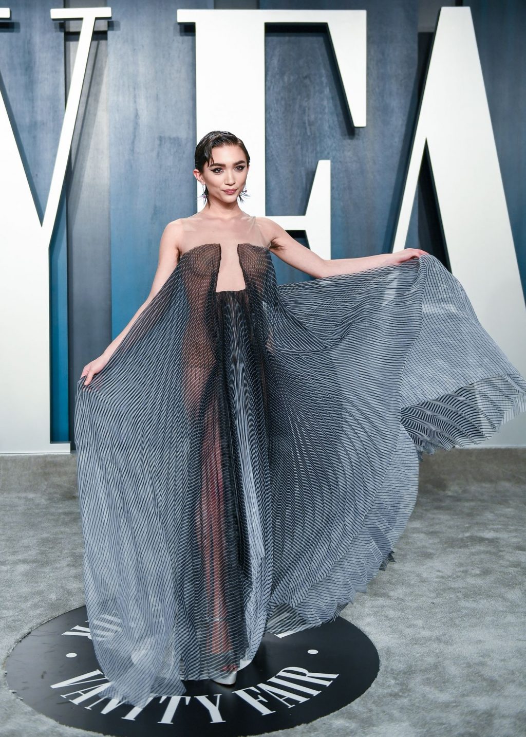 L’actrice américaine Rowan Blanchard (18 ans) a été photographiée sur le tapis rouge dans une robe transparente lors de la soirée Vanity Fair des Oscars à Los Angeles, le 09/02/2020.