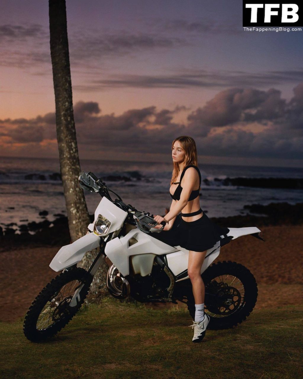 La star de “Euphoria” pose pour des photos sur des plages à couper le souffle en portant une mini-jupe noire et un top bralette assorti. Sur une image, Sydney porte une paire de Nike.